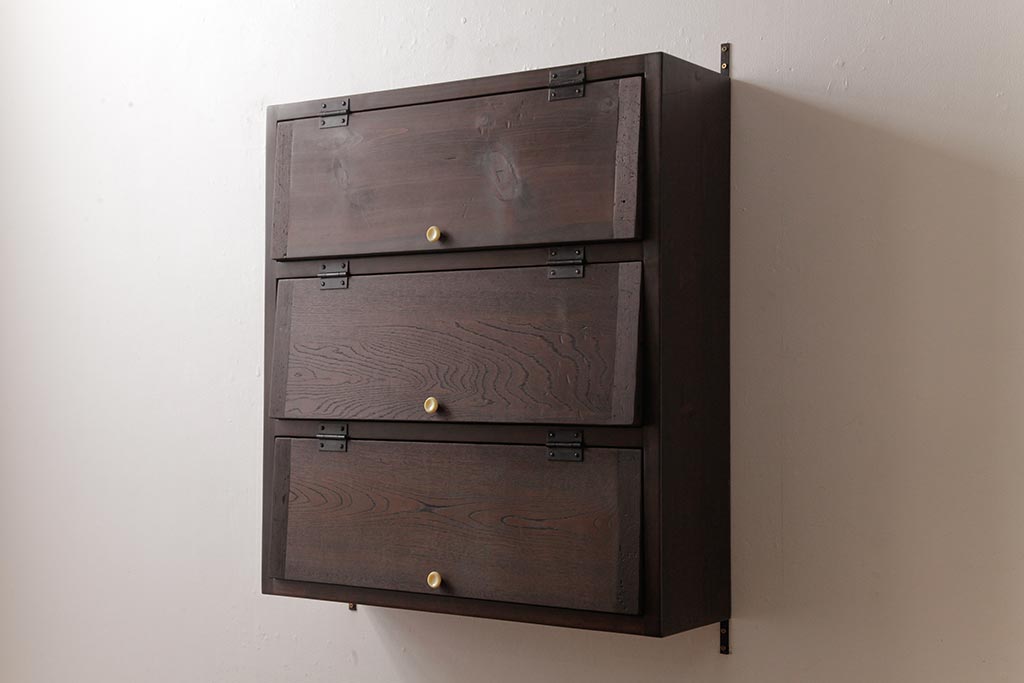 当店オリジナルのパタパタ扉の壁掛け収納棚です。