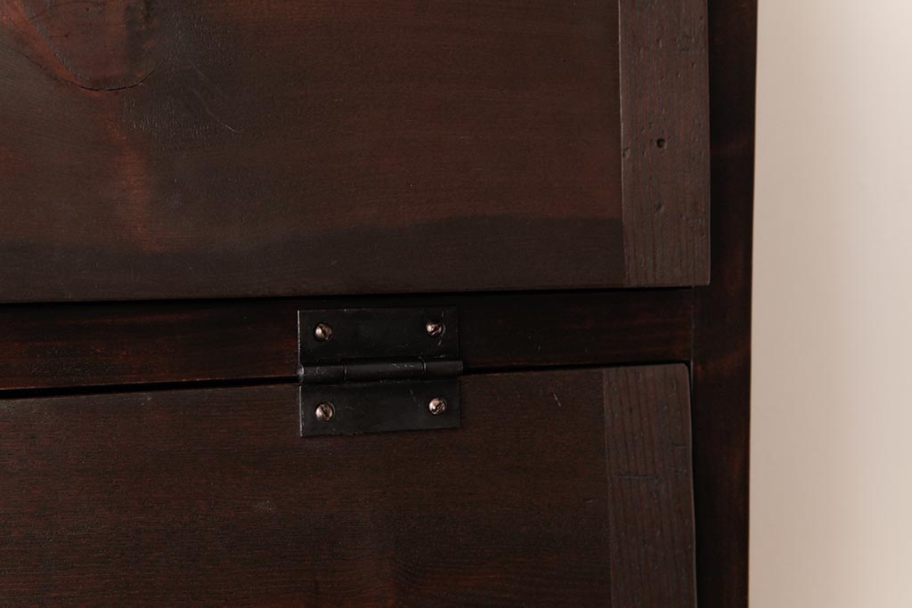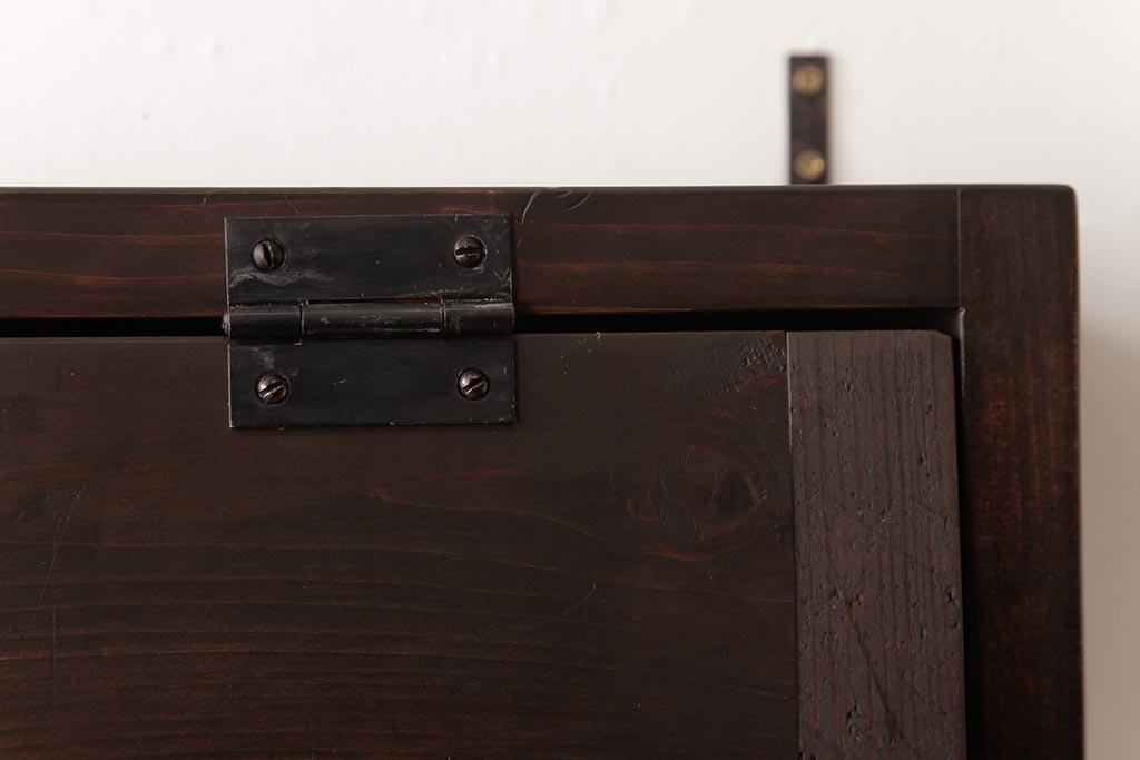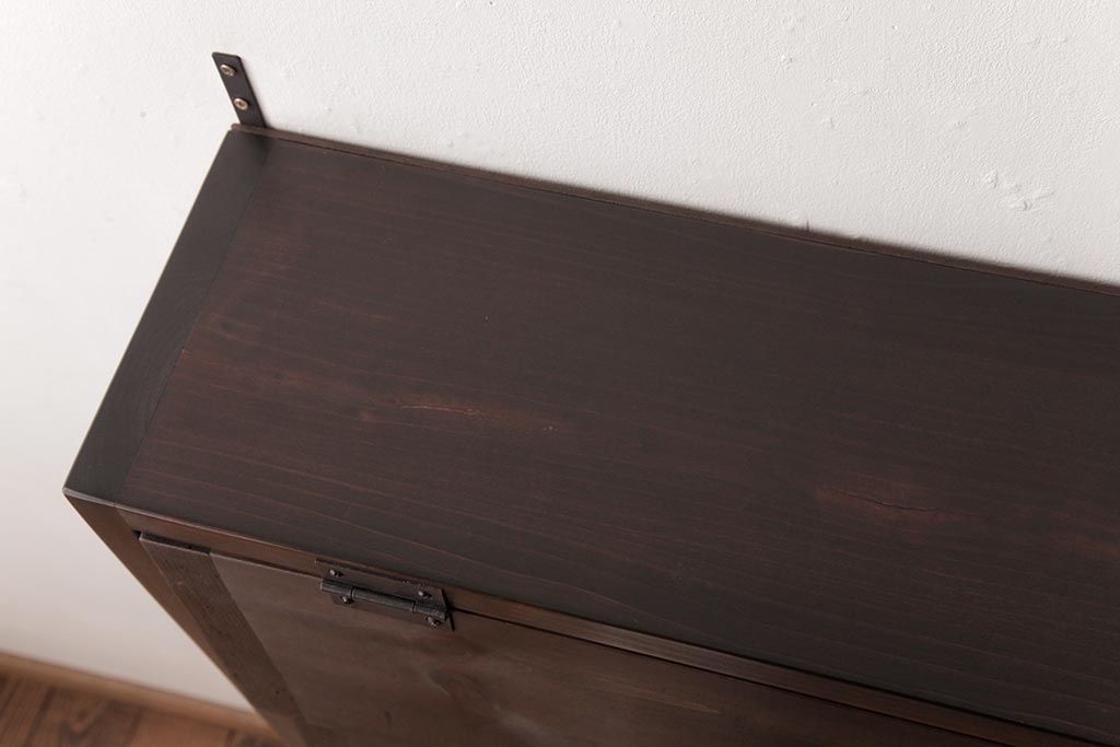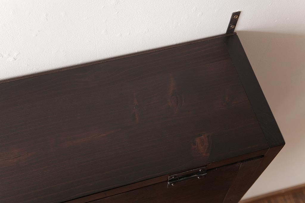 ラフジュ工房オリジナル 古い木の味わいが楽しめるパタパタ扉の壁掛け収納棚(ウォールシェルフ、戸棚)(R-034336)(3)です。