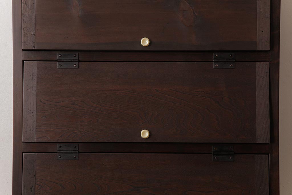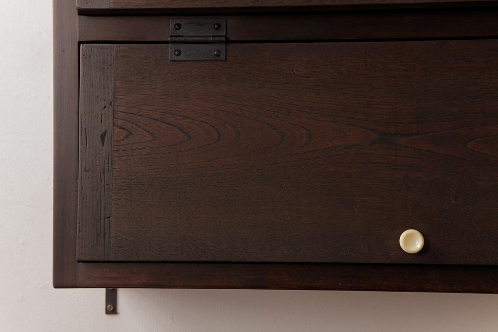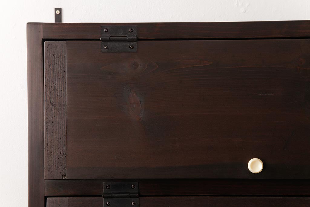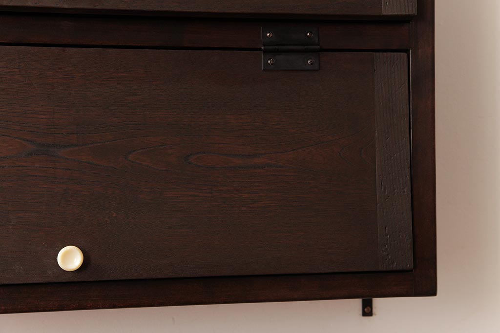 ラフジュ工房オリジナル 古い木の味わいが楽しめるパタパタ扉の壁掛け収納棚(ウォールシェルフ、戸棚)(R-034336)(3)