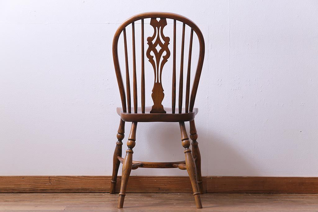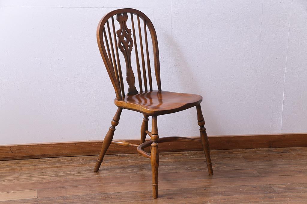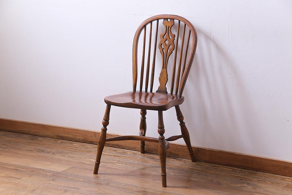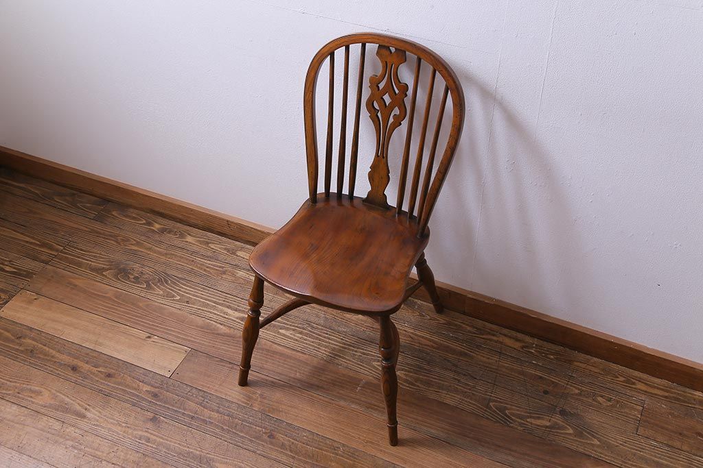アンティーク家具 イギリスアンティーク ニレ材 ボウバック ぬくもりと安らぎを感じるようなウィンザーチェア(ダイニングチェア、椅子、ウインザーチェア)(1)