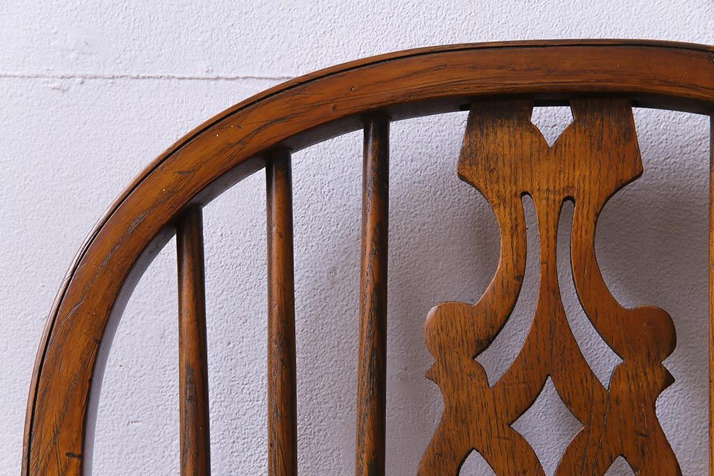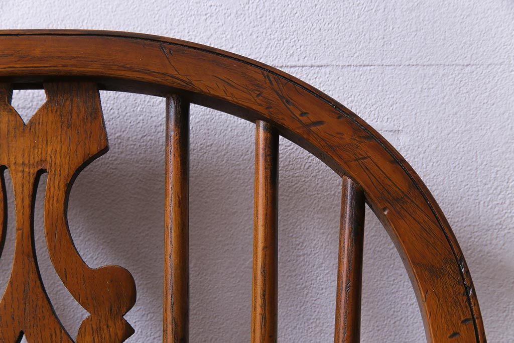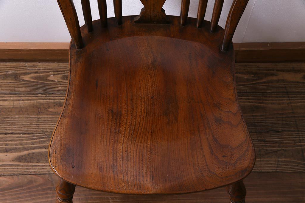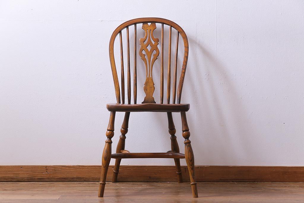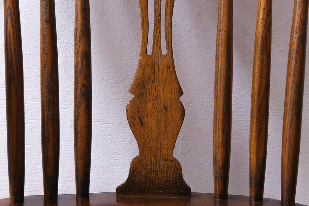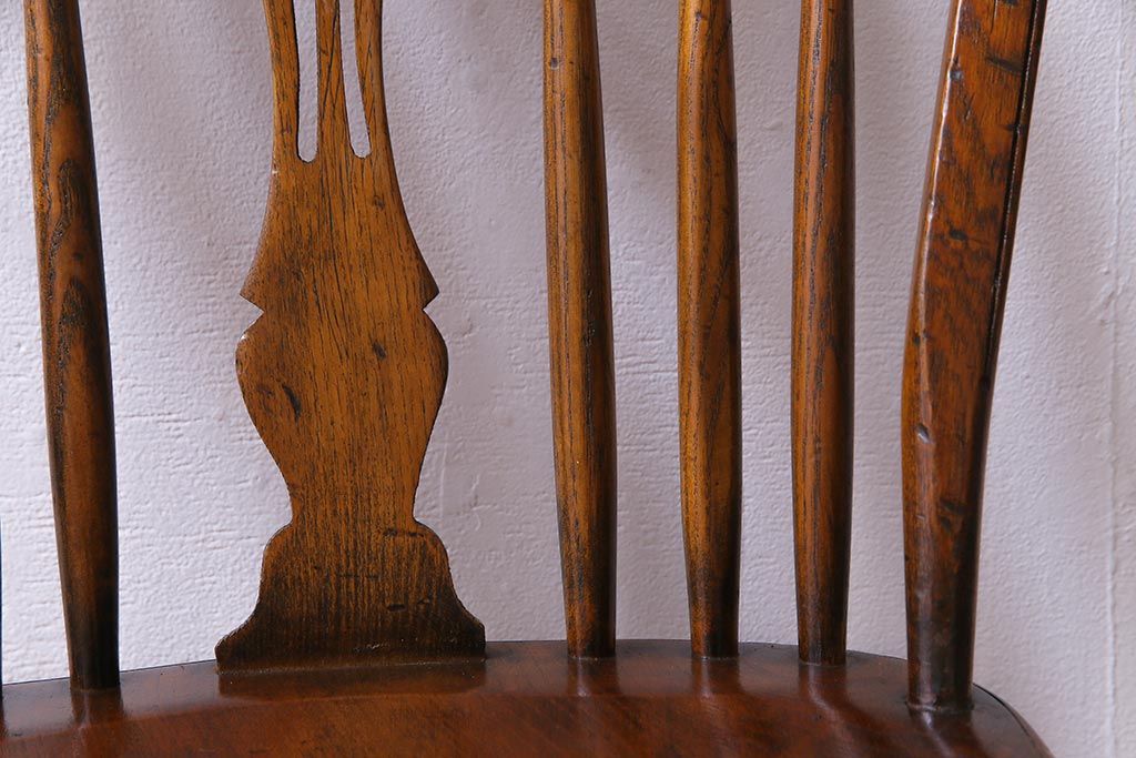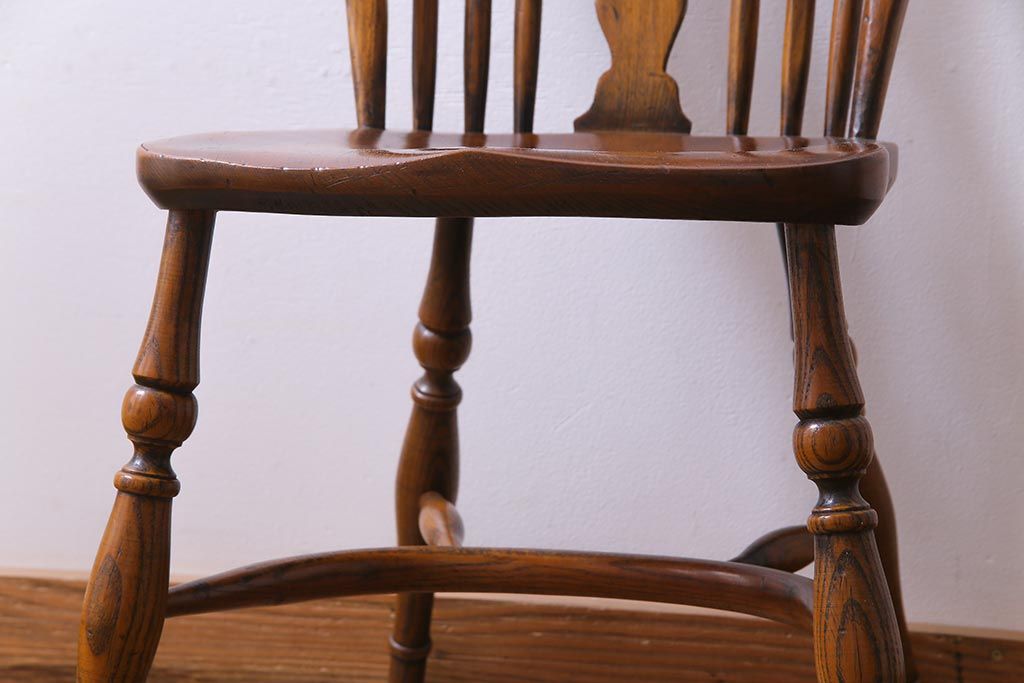 椅子・ベンチ> ダイニングチェア > アンティーク家具 イギリスアンティーク ニレ材 ボウバック ぬくもりと安らぎを感じるようなウィンザーチェア(ダイニングチェア、椅子、ウインザーチェア)(1)