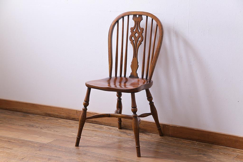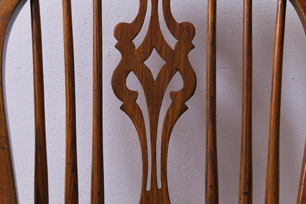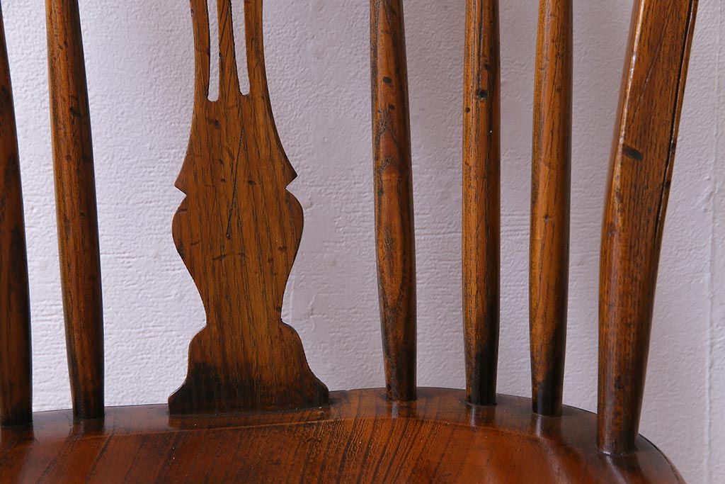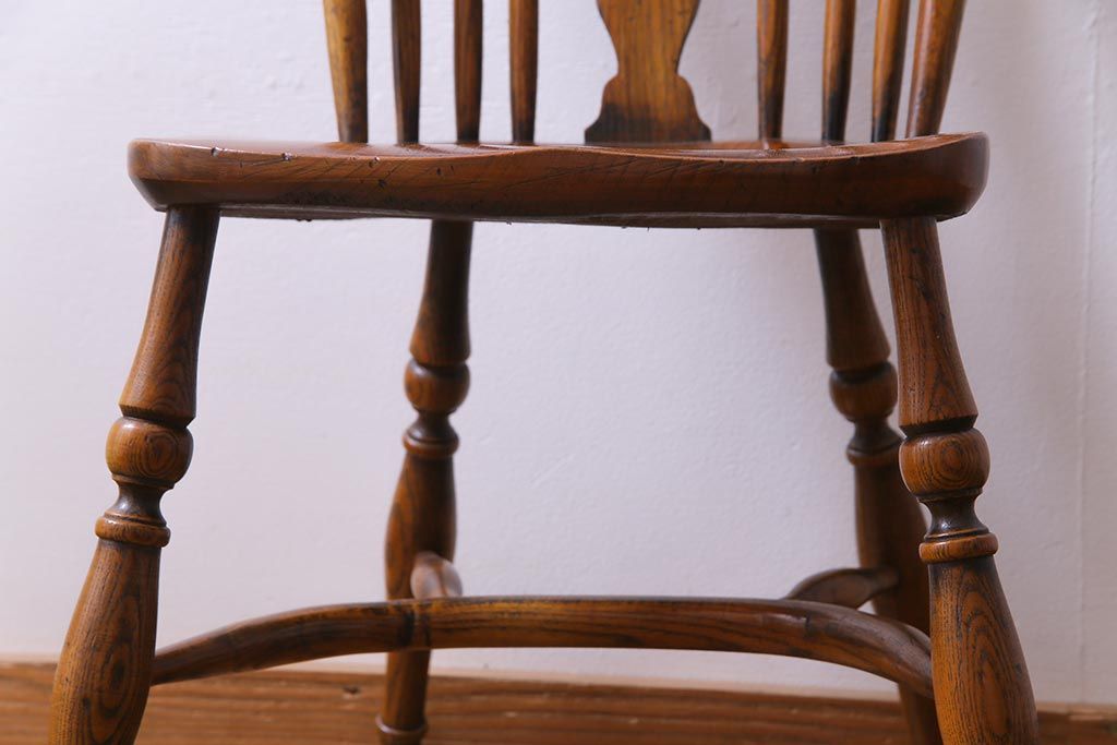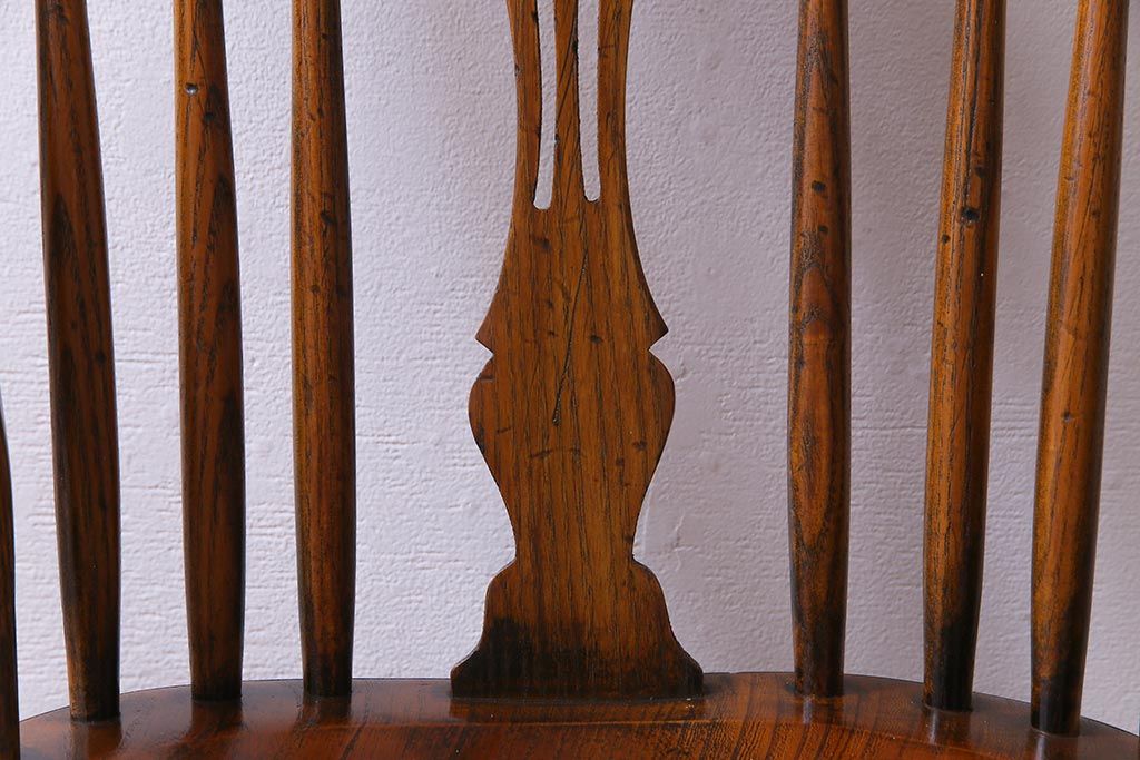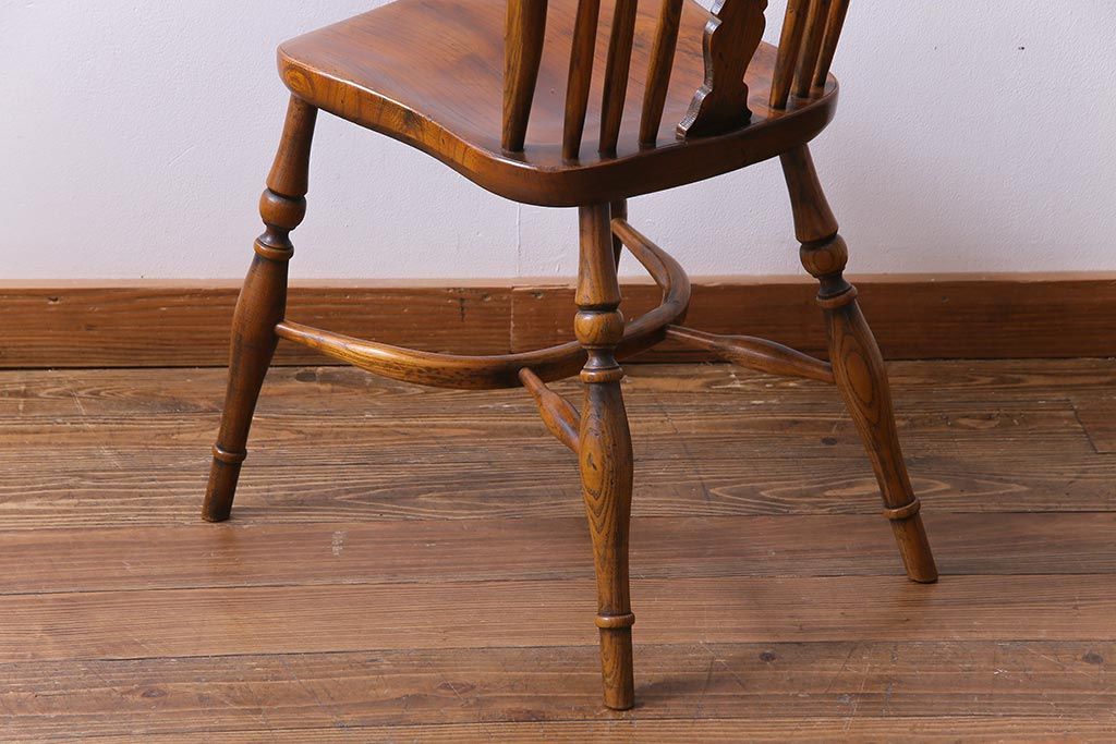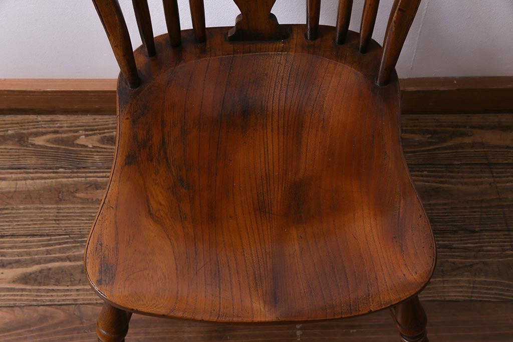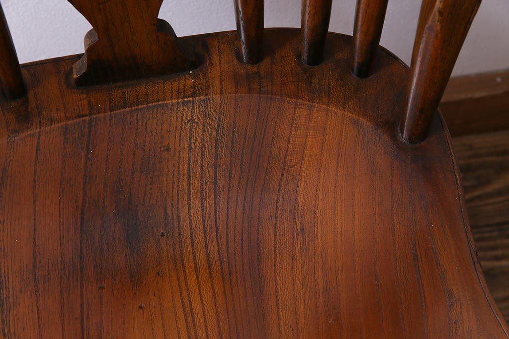 ラフジュ工房> 椅子・ベンチ> ダイニングチェア > アンティーク家具 イギリスアンティーク ニレ材 ボウバック ぬくもりと安らぎを感じるようなウィンザーチェア(ダイニングチェア、椅子、ウインザーチェア)(3)