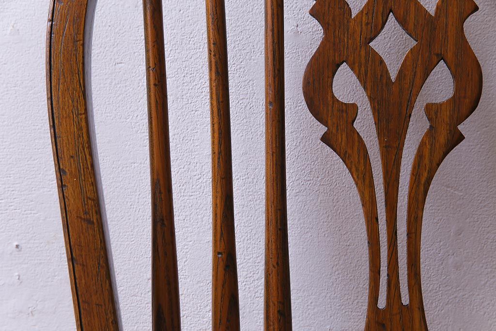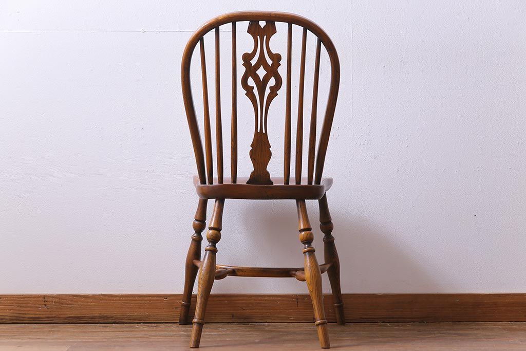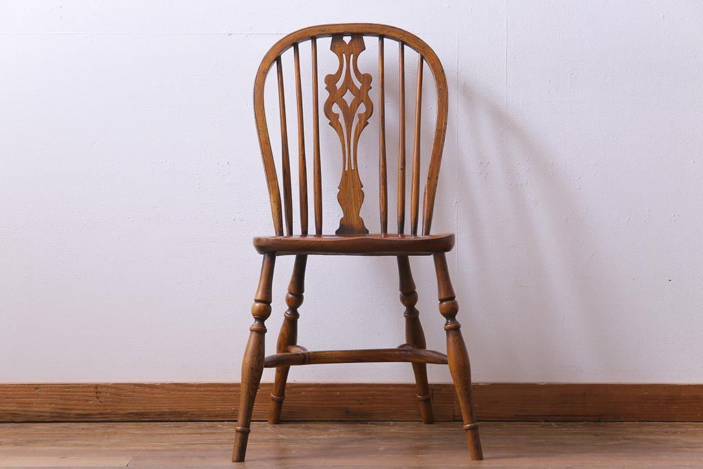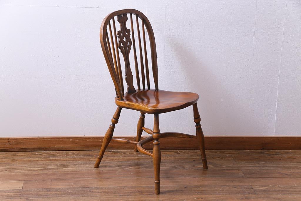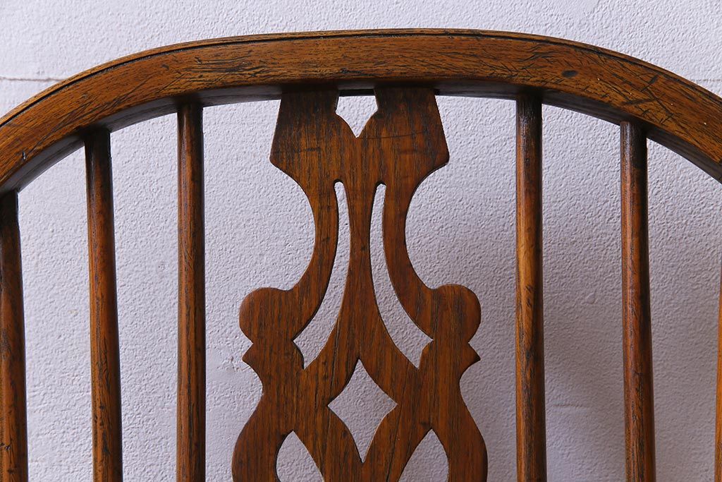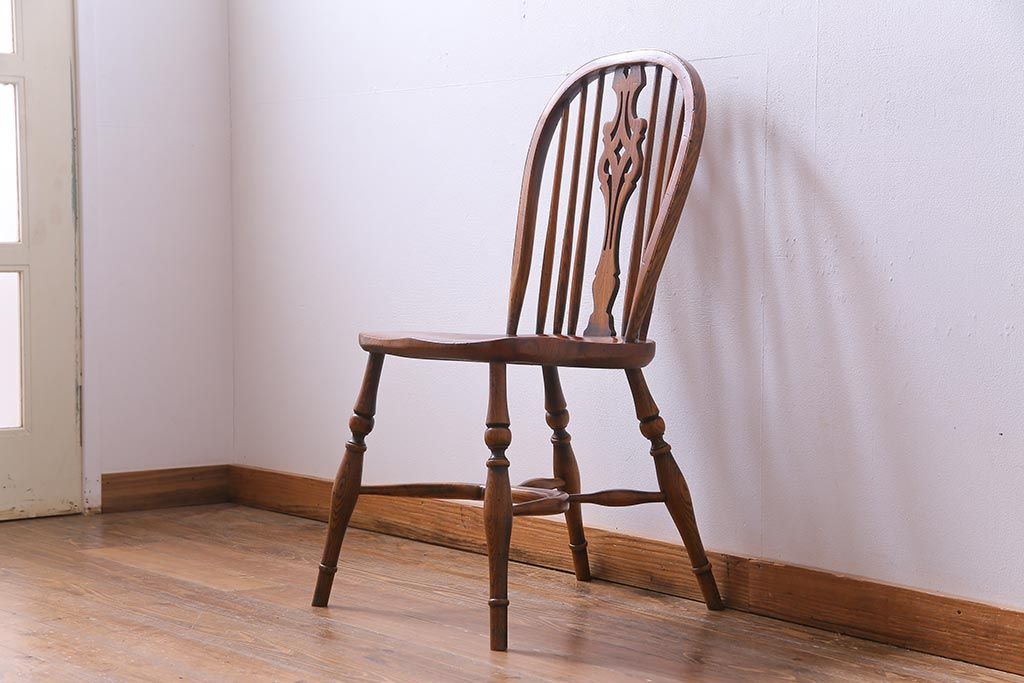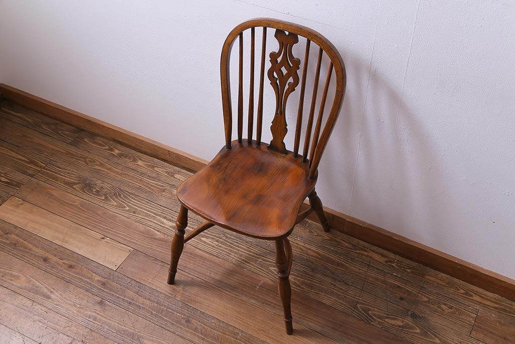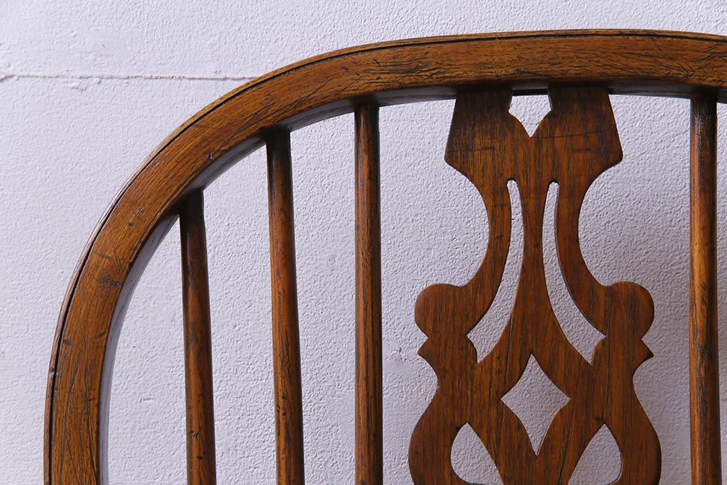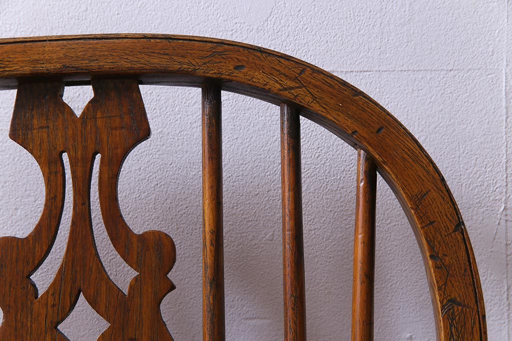 ラフジュ工房> 椅子・ベンチ> ダイニングチェア > アンティーク家具 イギリスアンティーク ニレ材 ボウバック ぬくもりと安らぎを感じるようなウィンザーチェア(ダイニングチェア、椅子、ウインザーチェア)(3)