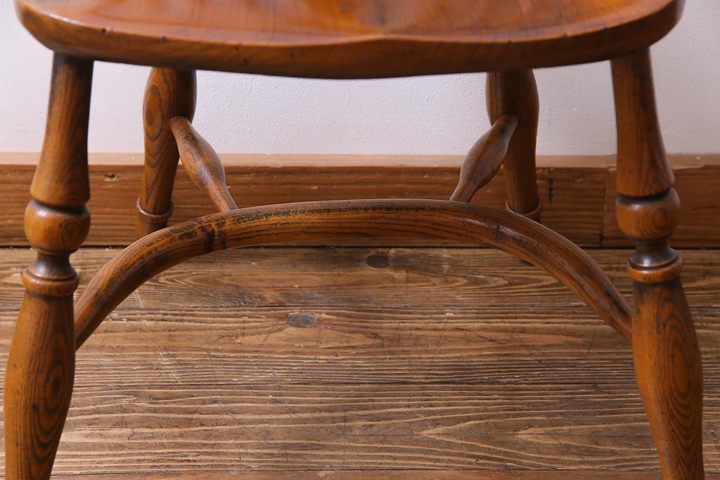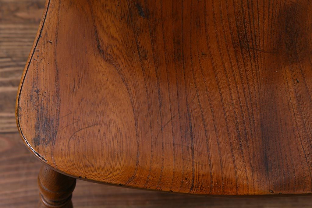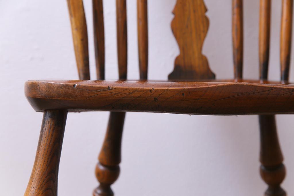 ラフジュ工房> 椅子・ベンチ> ウィンザーチェア > アンティーク家具 イギリスアンティーク ニレ材 ボウバック ぬくもりと安らぎを感じるようなウィンザーチェア(ダイニングチェア、椅子、ウインザーチェア)(3)