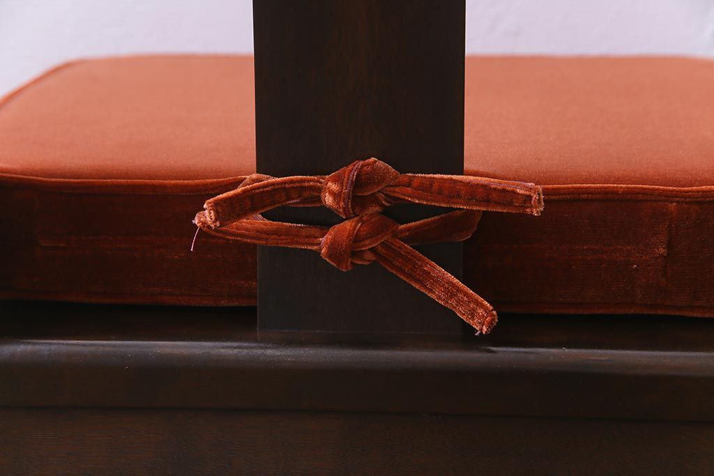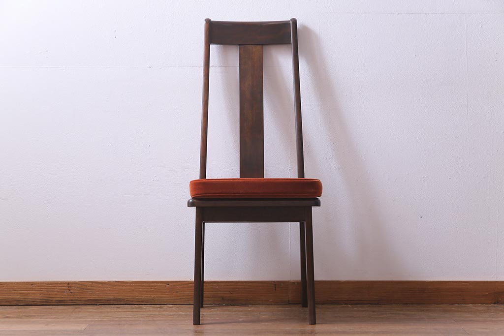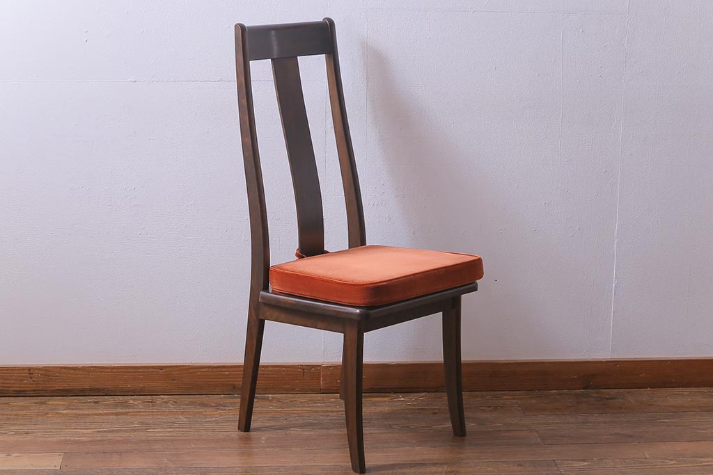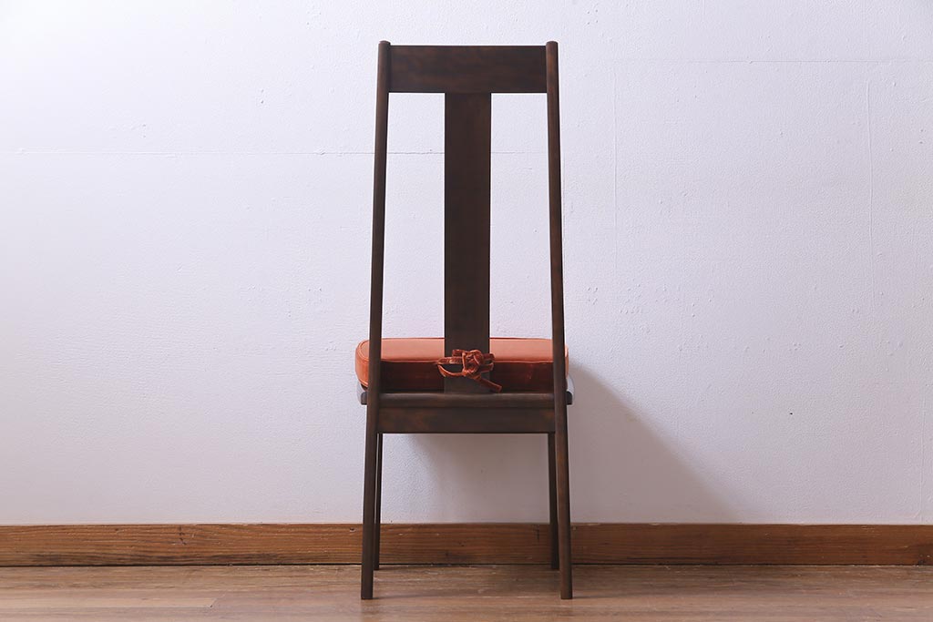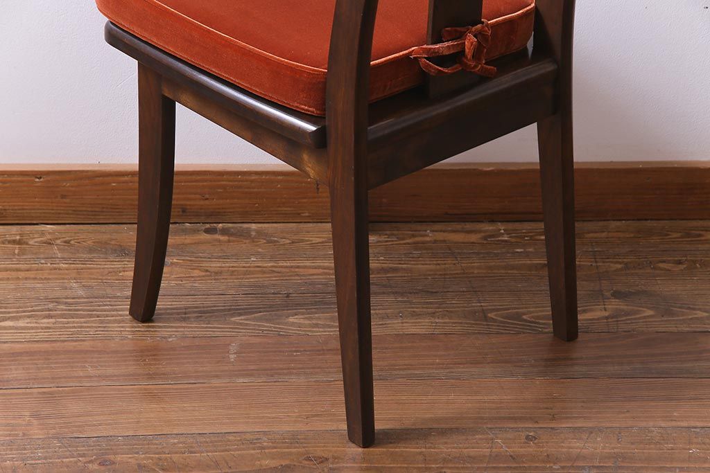 中古 民芸家具 ベルベットのクッションが上品な印象与えるチェア(椅子、ダイニングチェア)