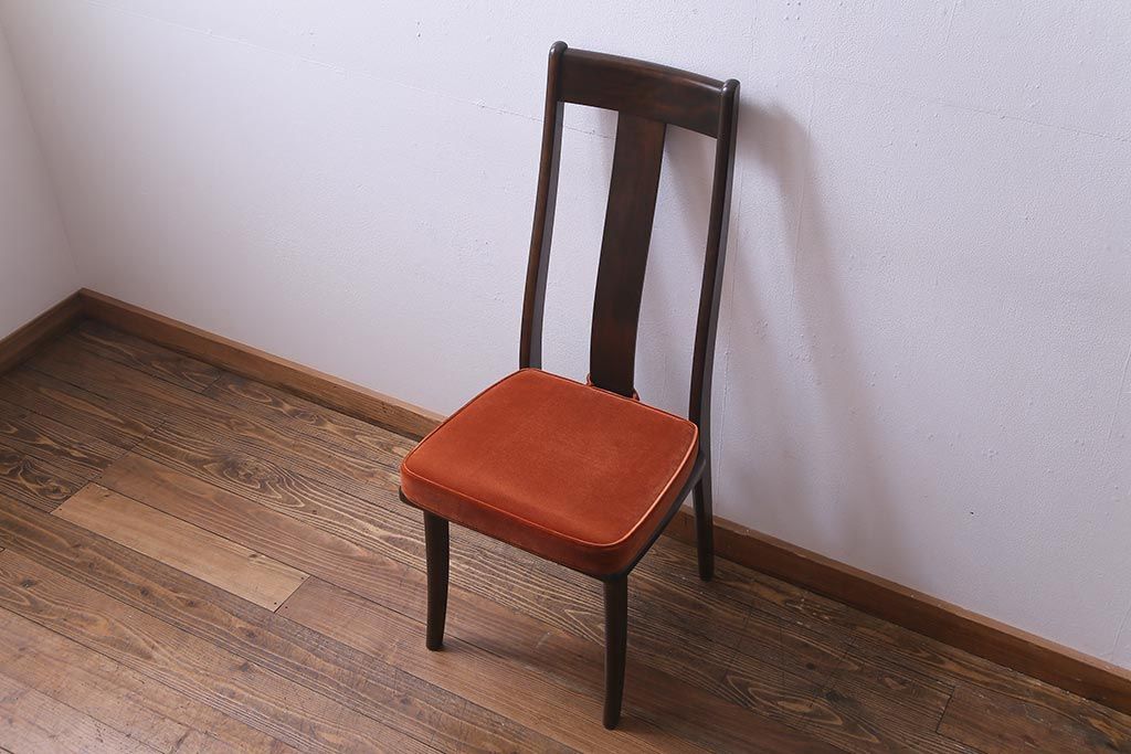中古 民芸家具 ベルベットのクッションが上品な印象与えるチェア(椅子、ダイニングチェア)です。