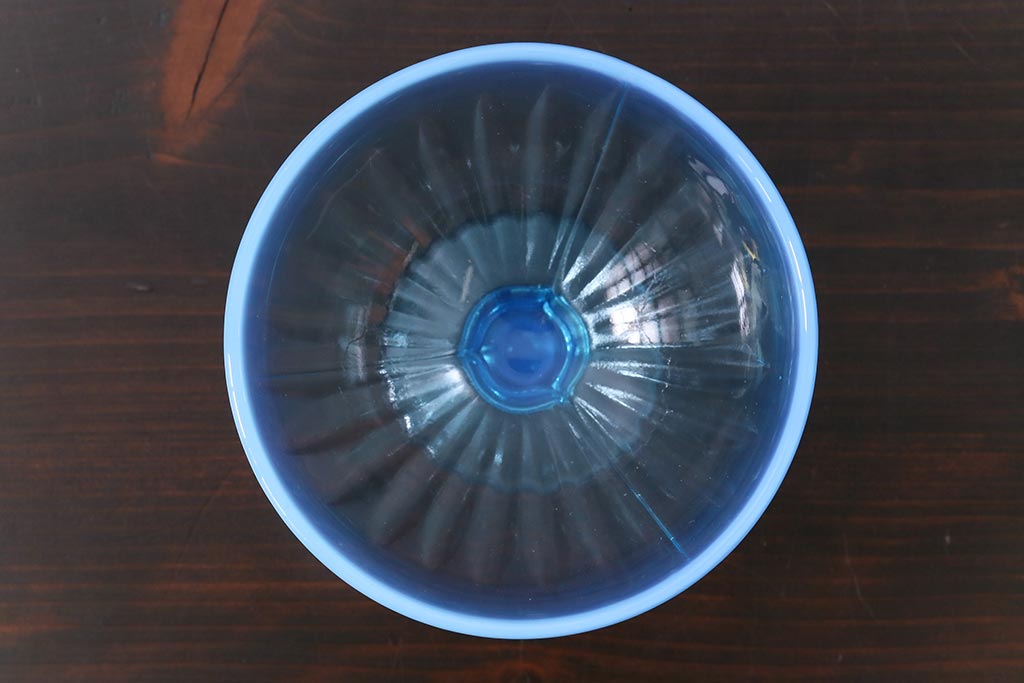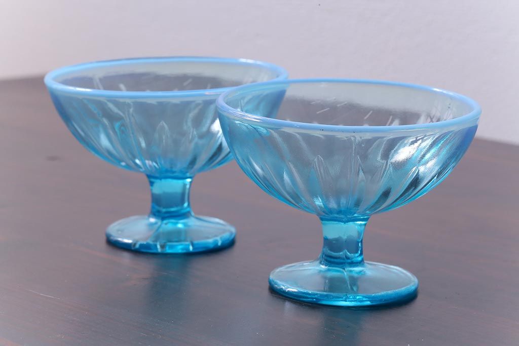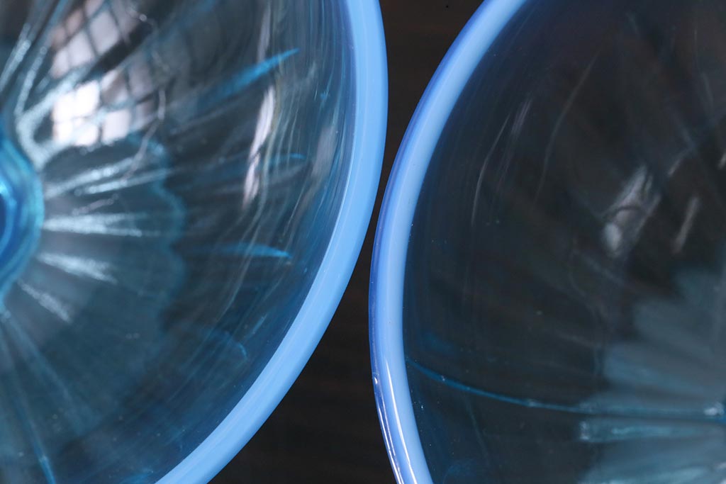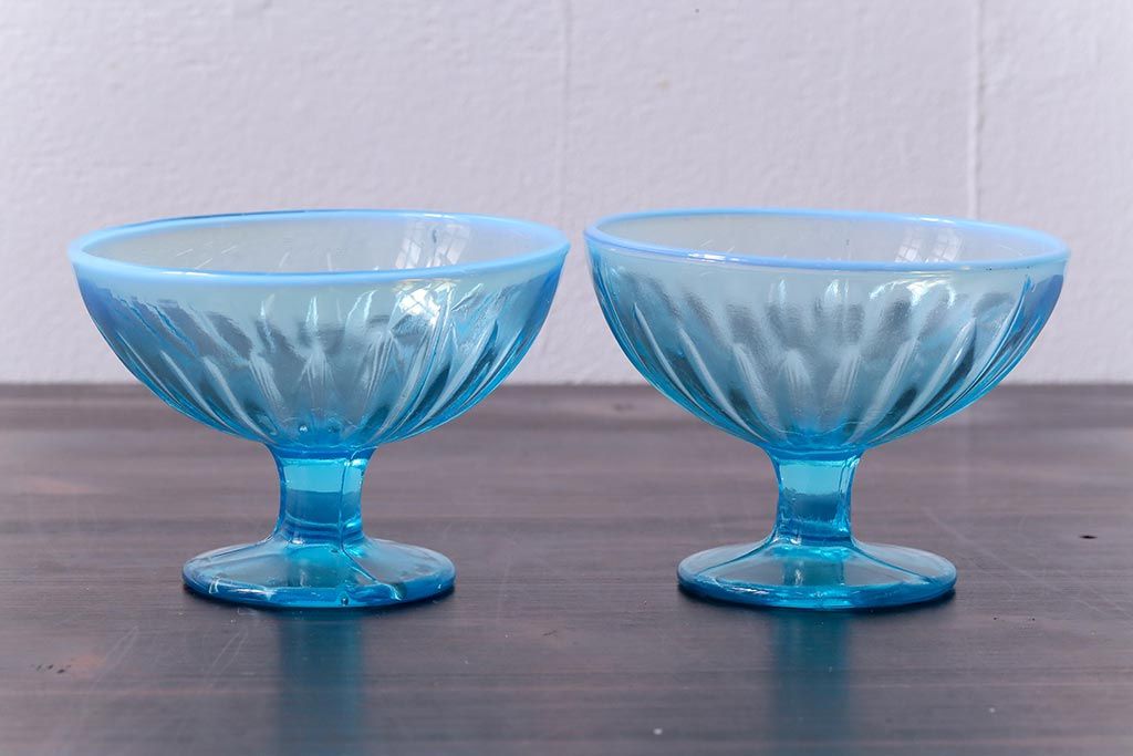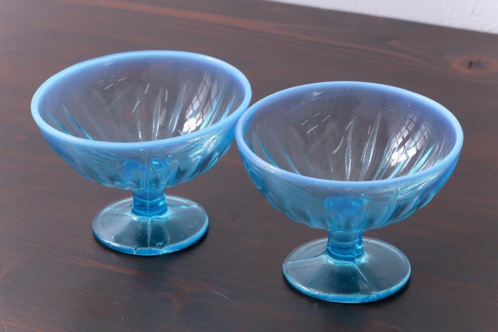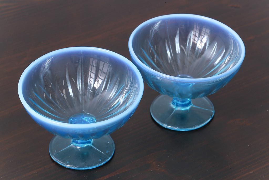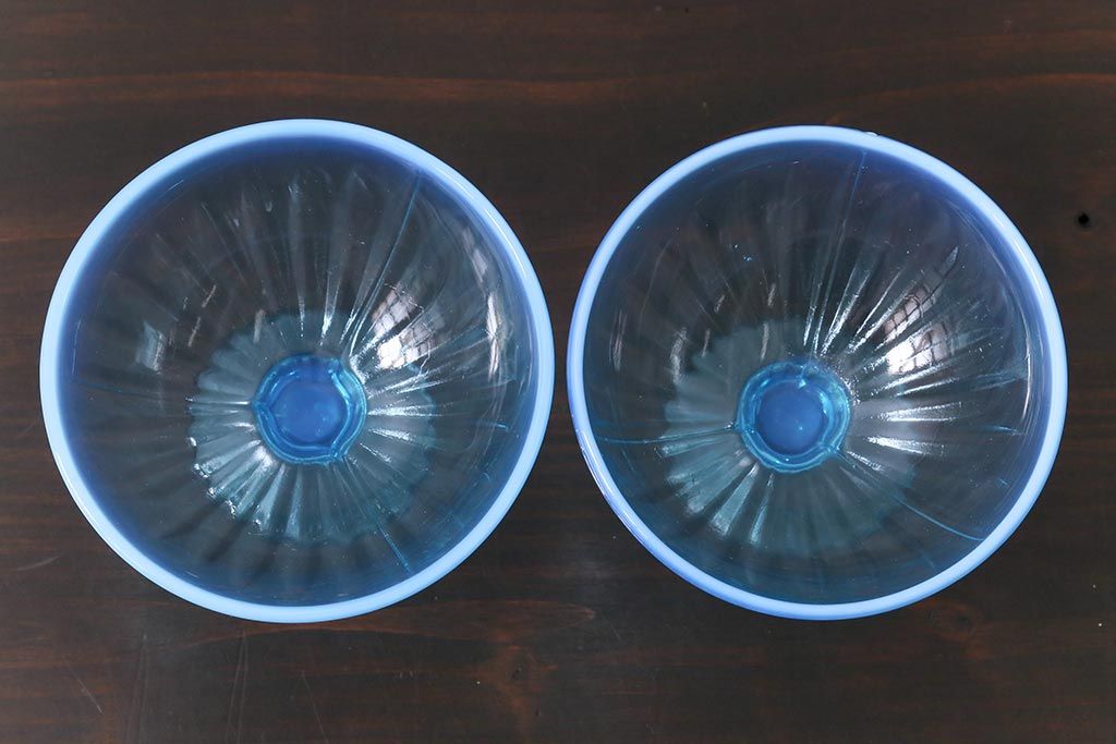 ラフジュ工房> 和食器・茶道具> 氷コップ > アンティーク雑貨 昭和レトロ 爽やかな色味の乳白暈し氷コップ2個セット(プレスガラス)(2)