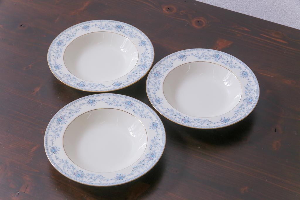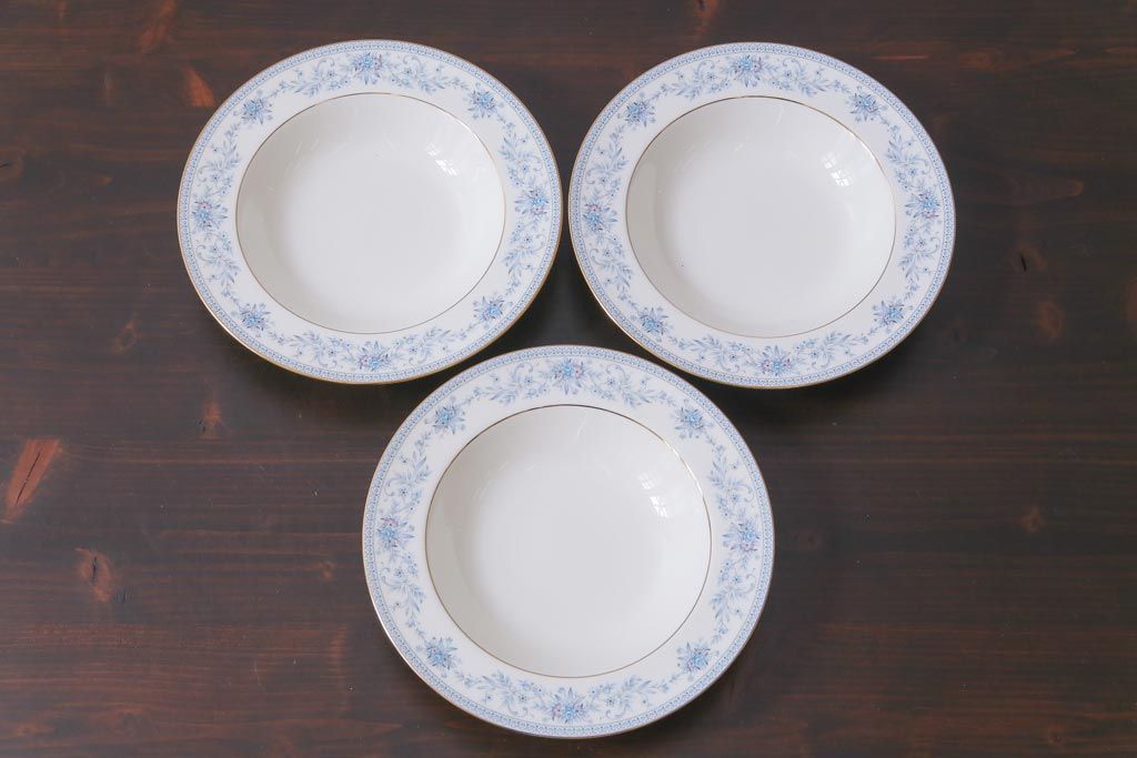 中古 ノリタケ(Noritake) ブルーヒル(廃盤) 淡いブルーの花柄が可憐なスープ皿3枚セット(洋食器)(1)