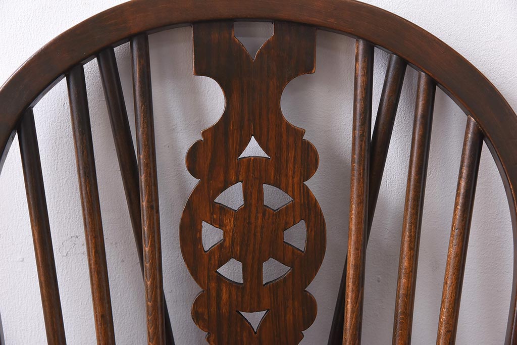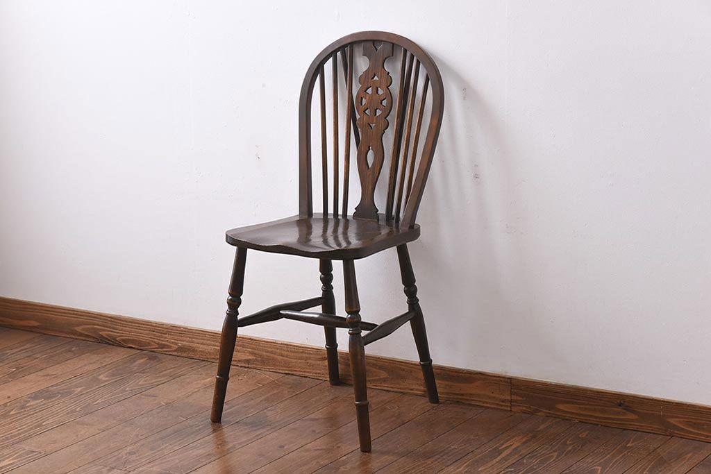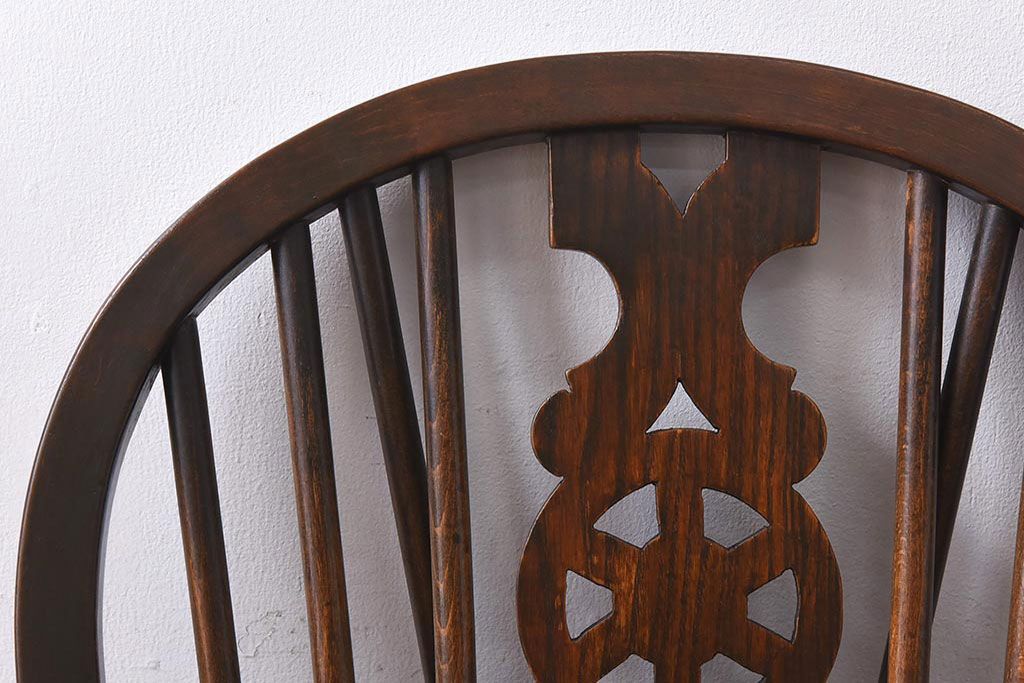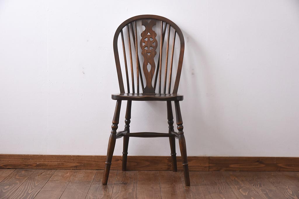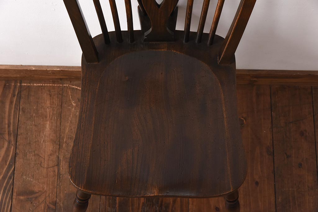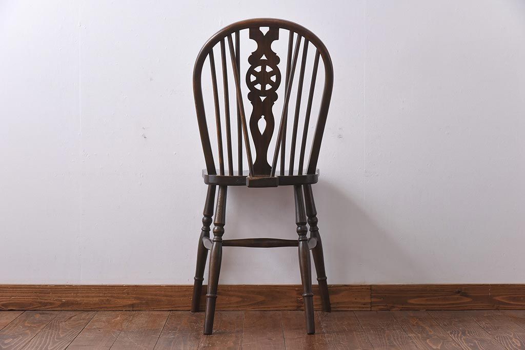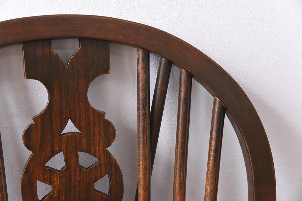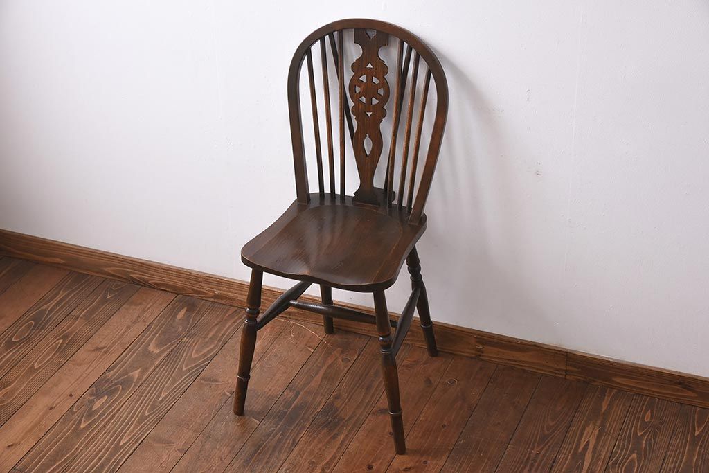 ヴィンテージ家具 イギリスビンテージ ニレ材・ビーチ材 ホイールバックがおしゃれなダイニングチェア(板座チェア)(1)
