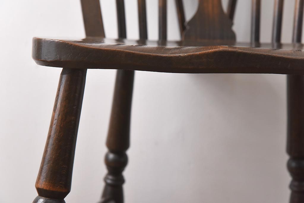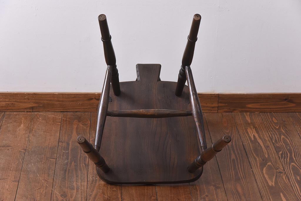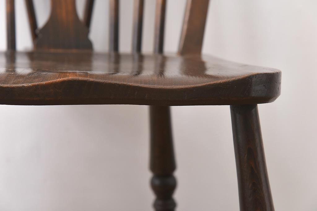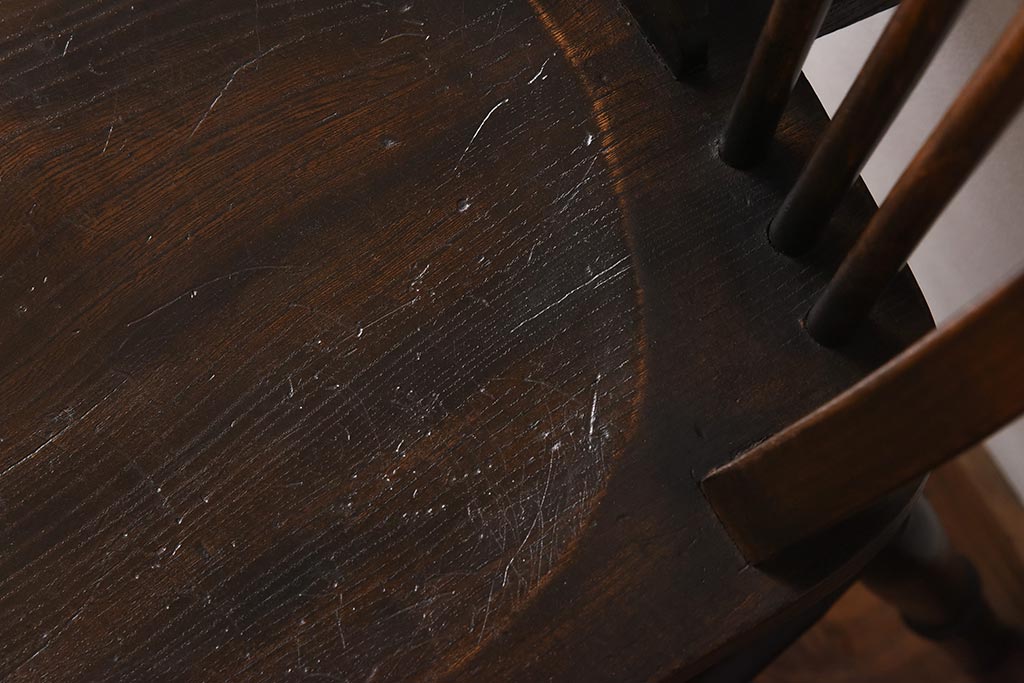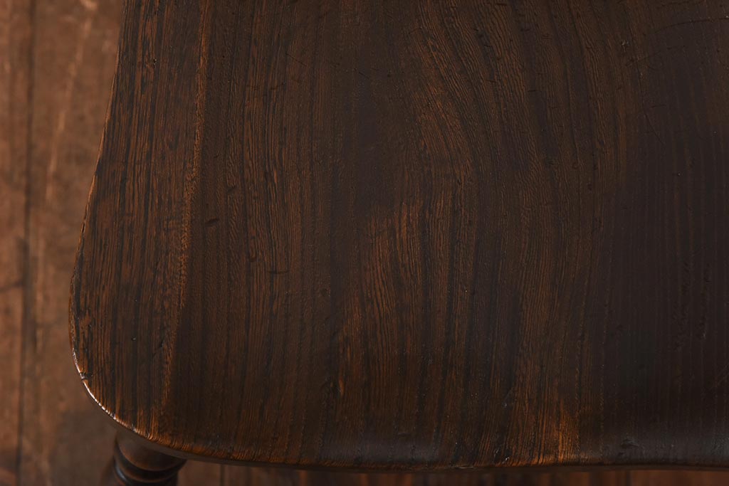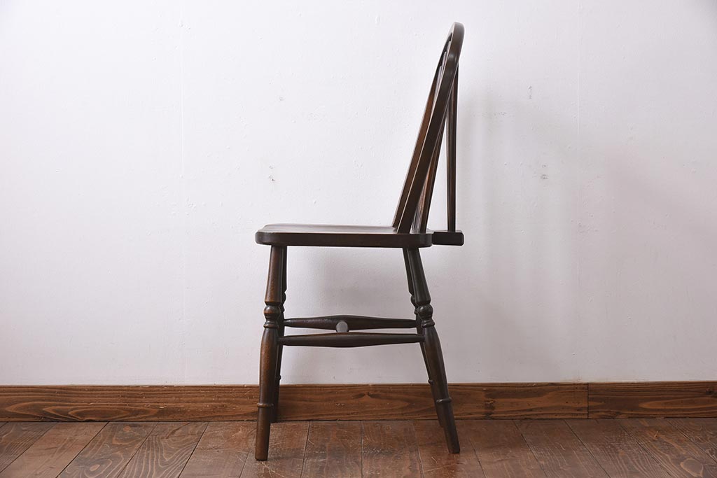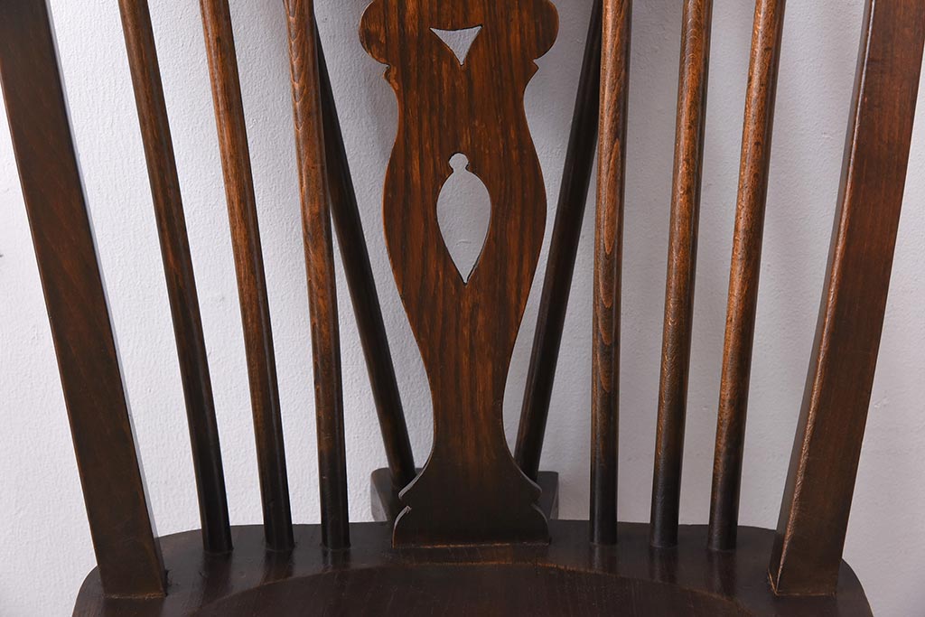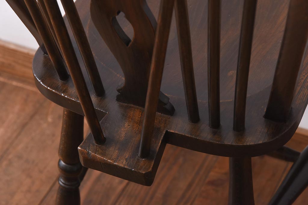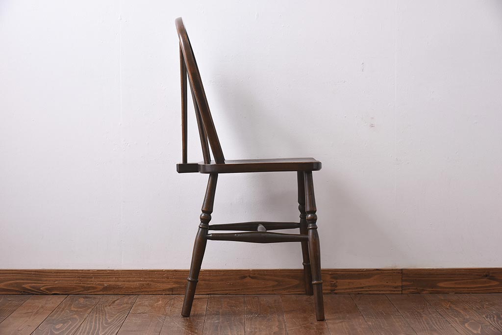 ヴィンテージ家具 イギリスビンテージ ニレ材・ビーチ材 ホイールバックがおしゃれなダイニングチェア(板座チェア)(1)