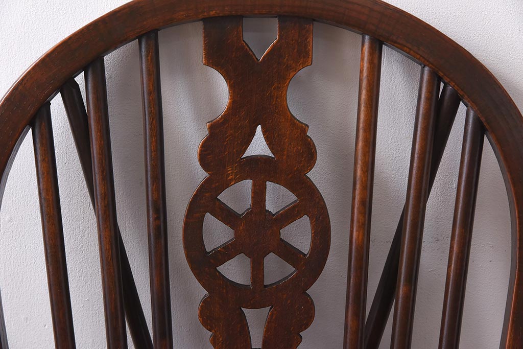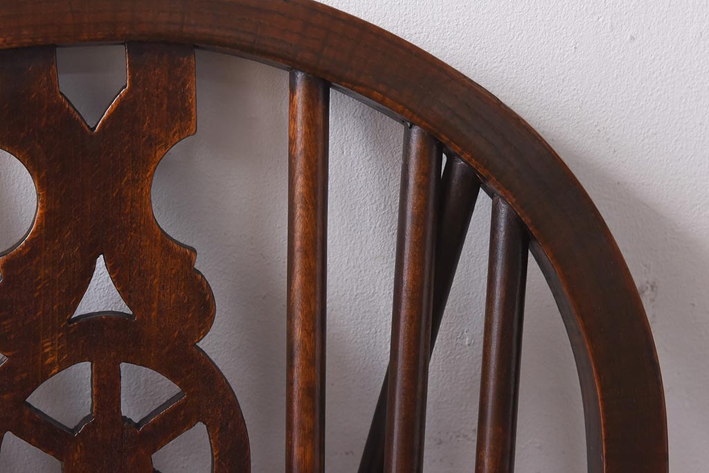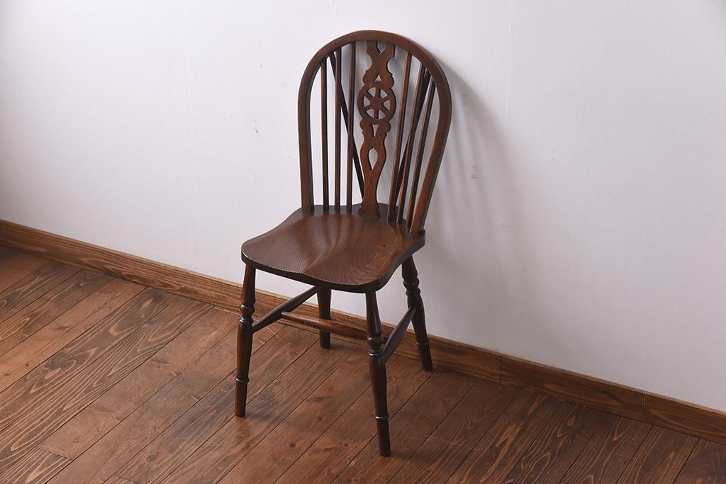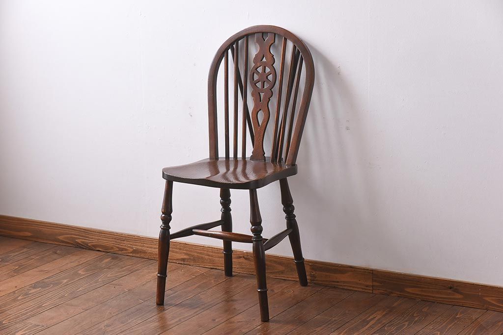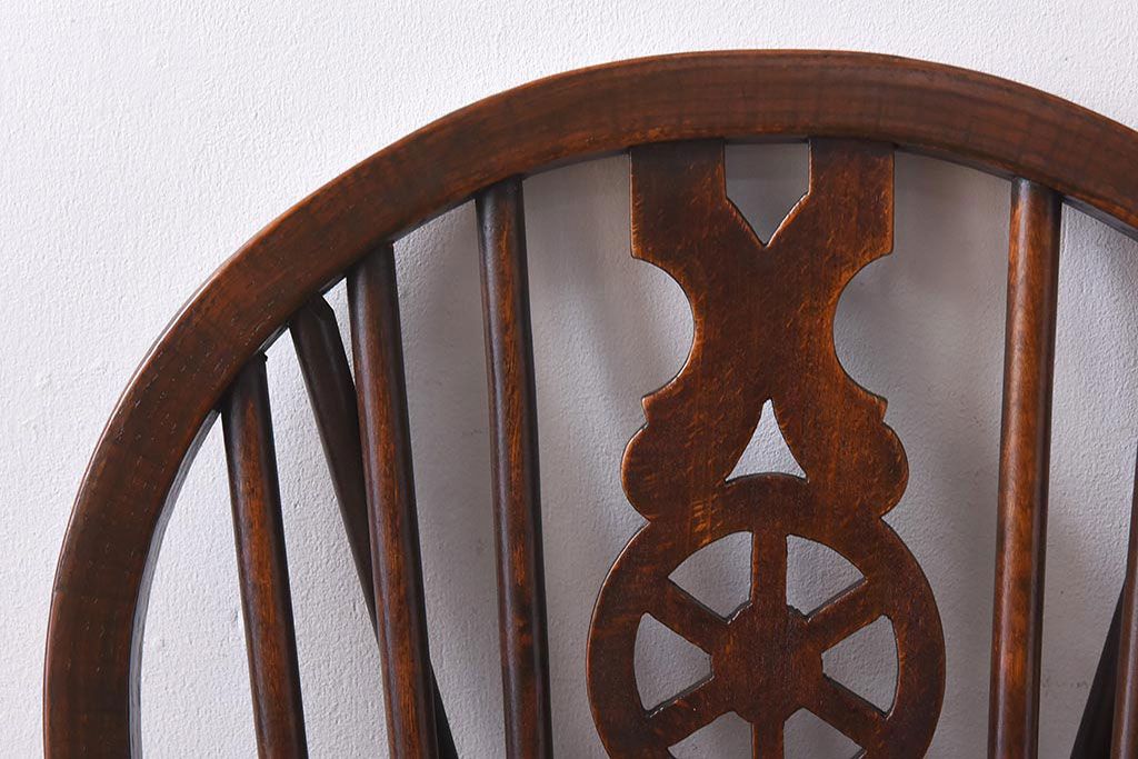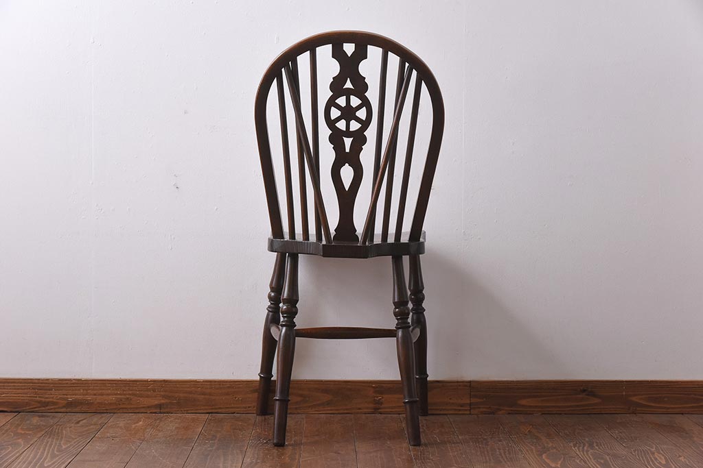 ヴィンテージ家具 イギリスビンテージ ニレ材・ビーチ材 ホイールバックがおしゃれなダイニングチェア(板座チェア)(2)