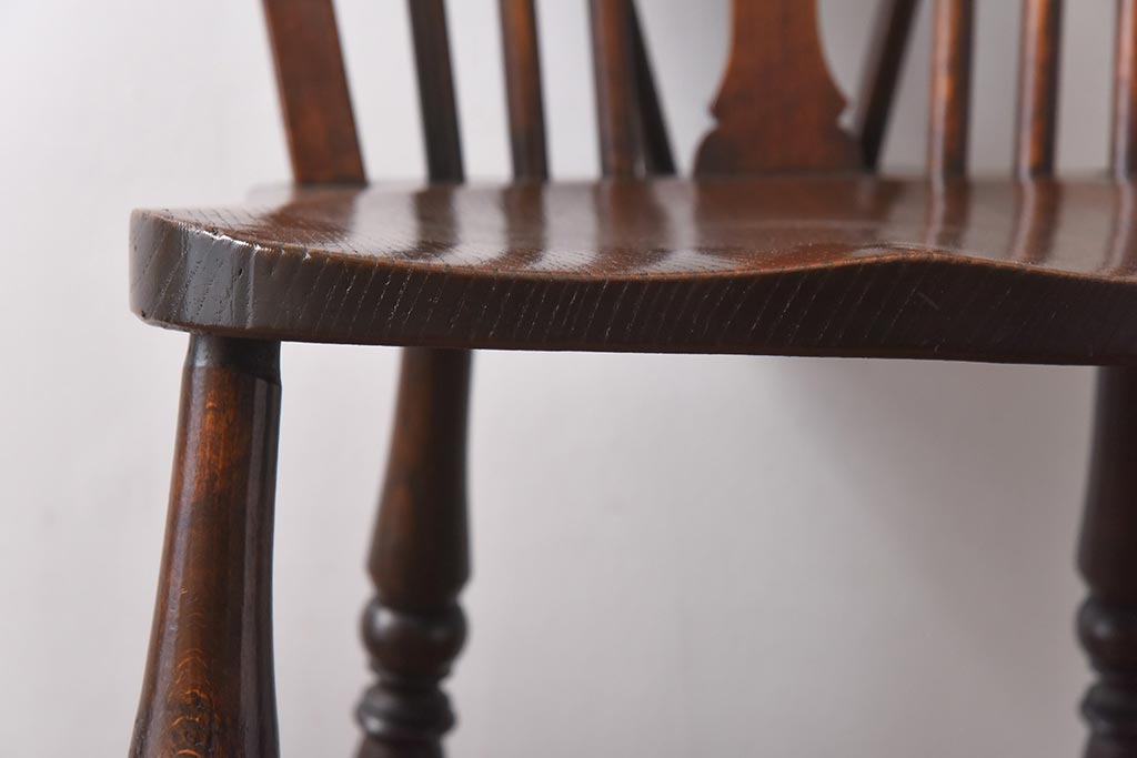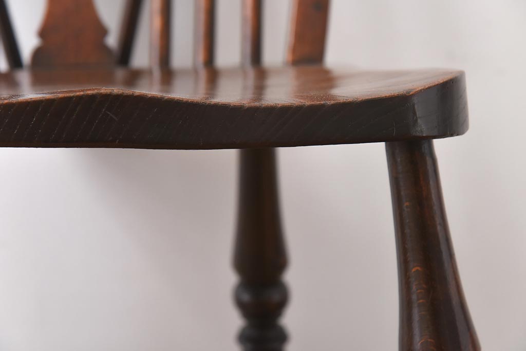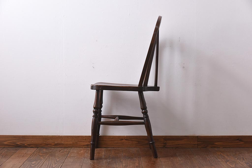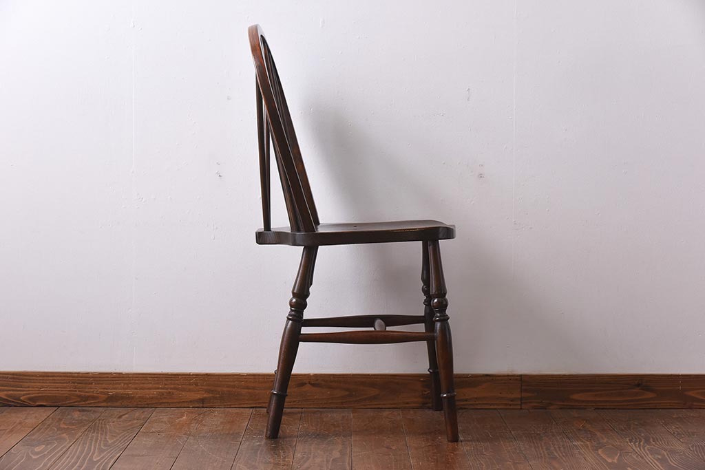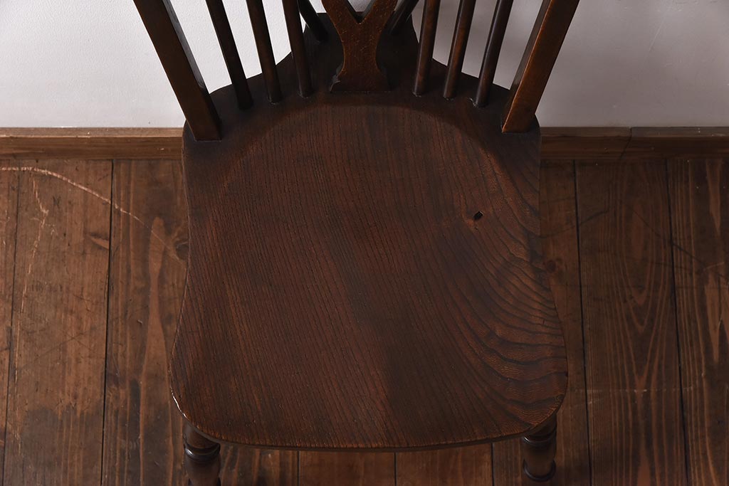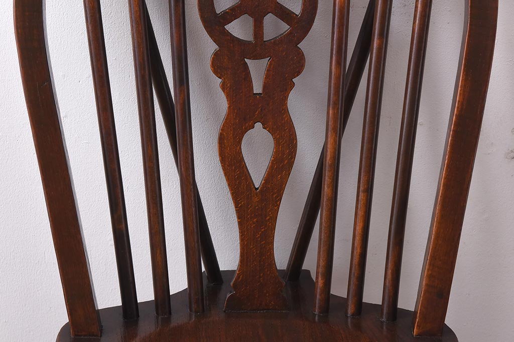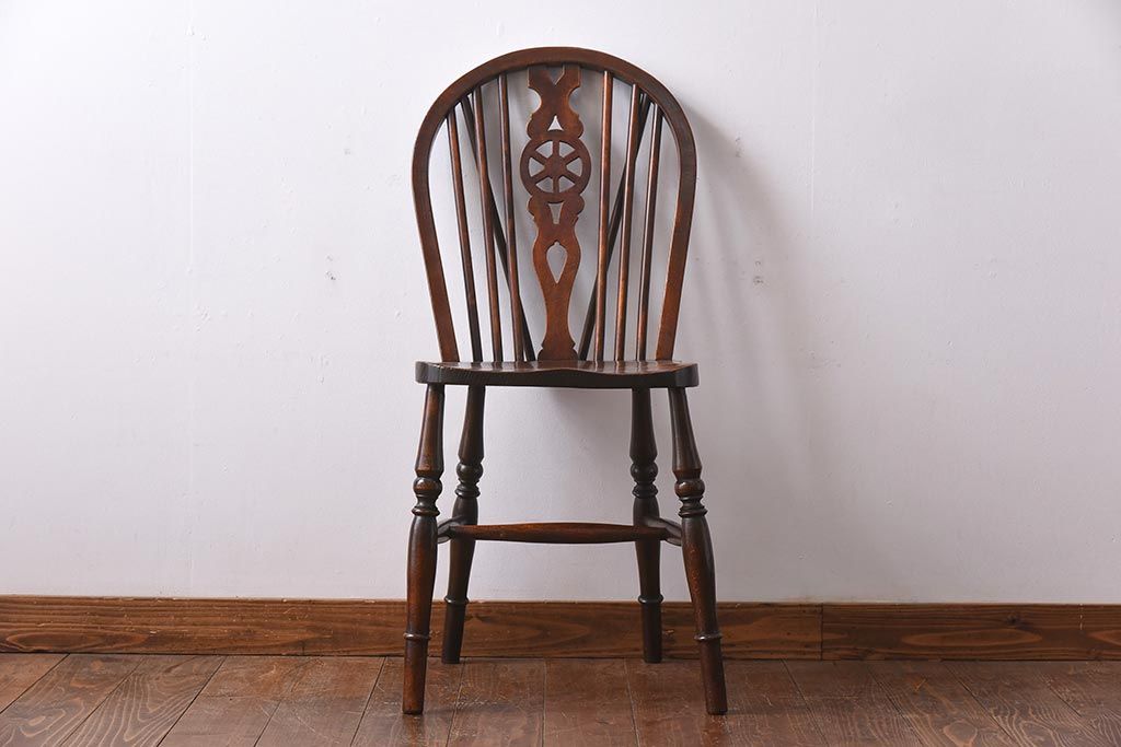 ヴィンテージ家具 イギリスビンテージ ニレ材・ビーチ材 ホイールバックがおしゃれなダイニングチェア(板座チェア)(2)