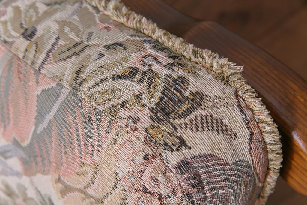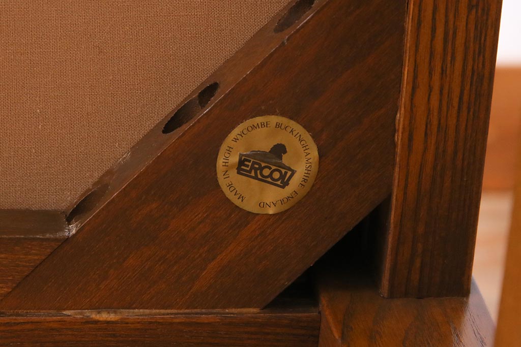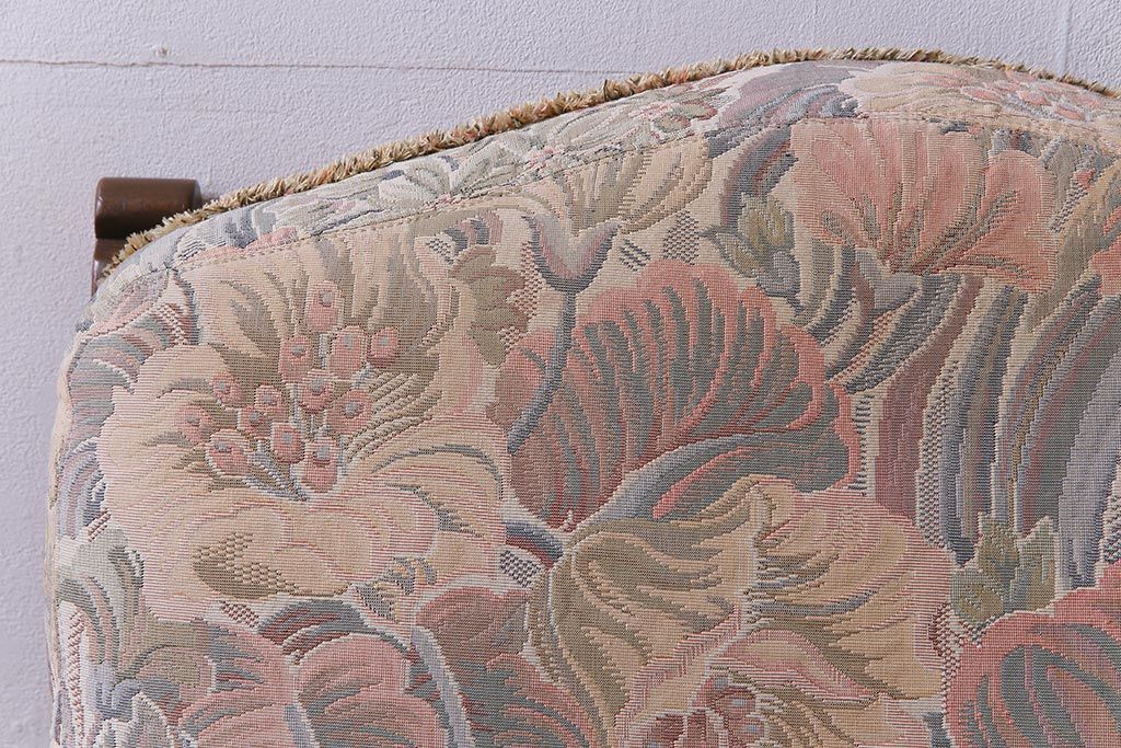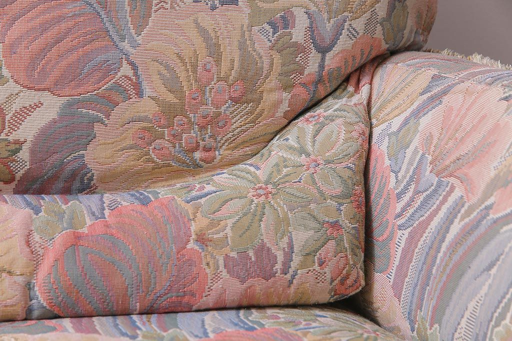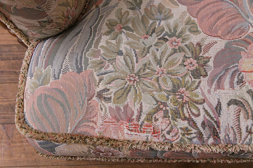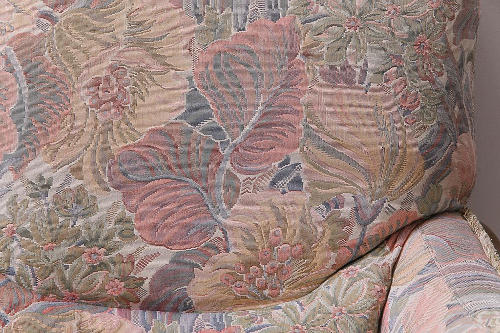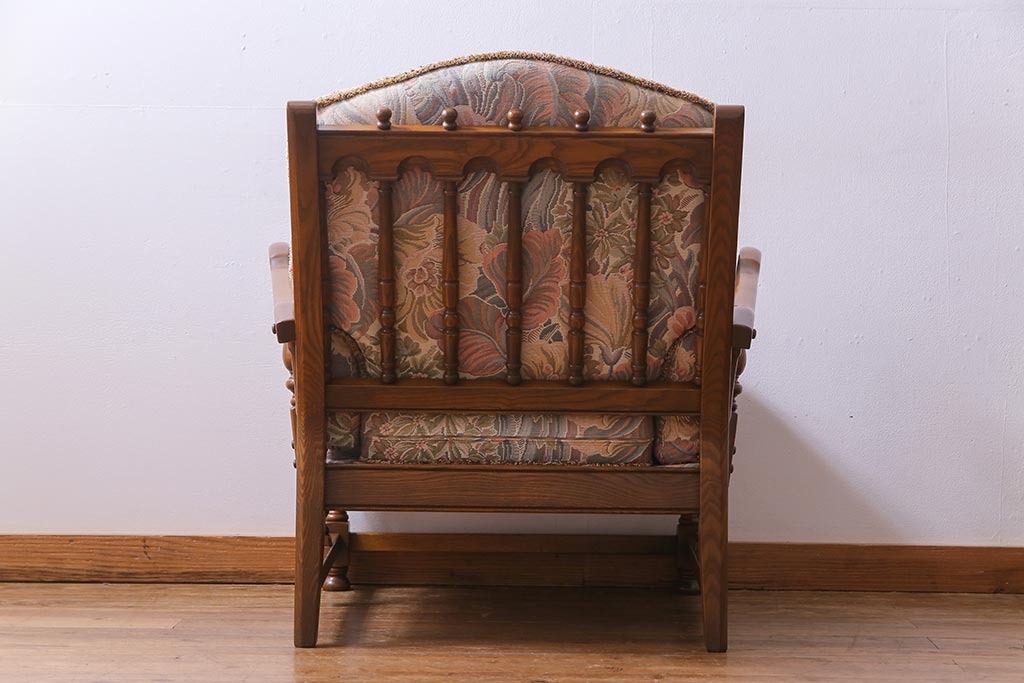 アンティーク家具 ERCOL(アーコール) York Minster 花柄のファブリックと凝った彫刻を楽しめる一人掛けソファ(1)