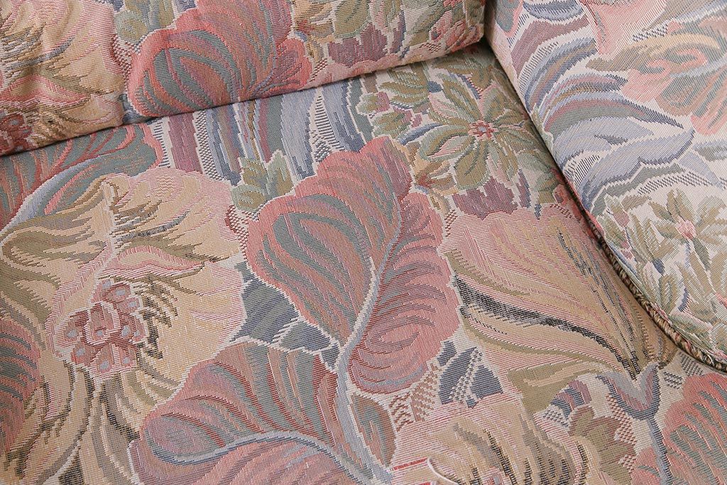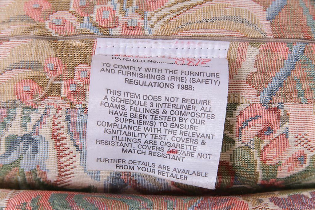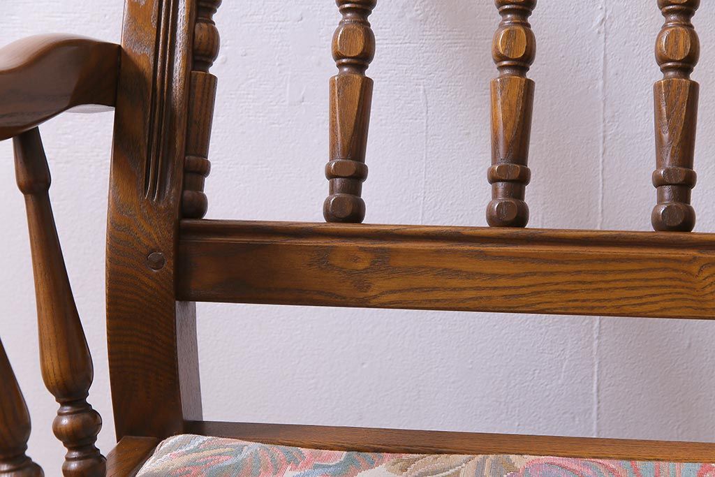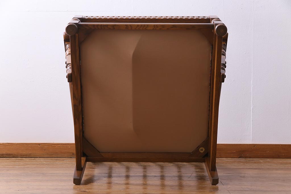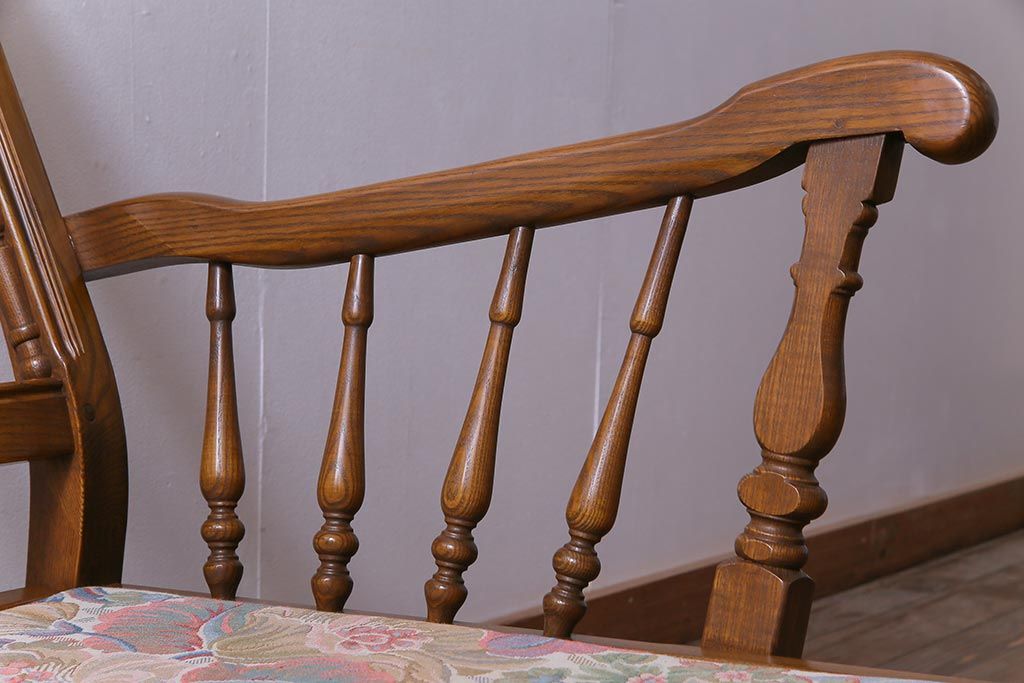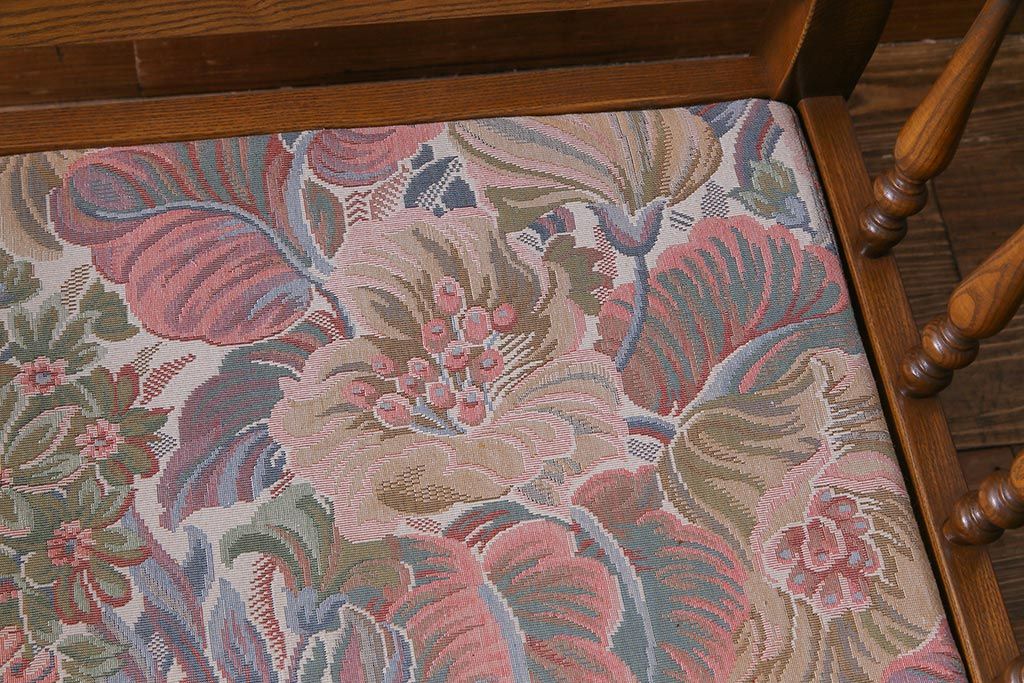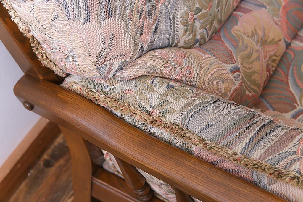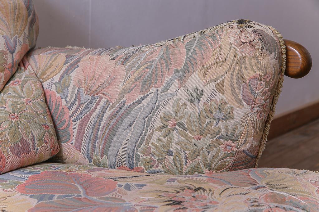 アンティーク家具 ERCOL(アーコール) York Minster 花柄のファブリックと凝った彫刻を楽しめる一人掛けソファ(1)