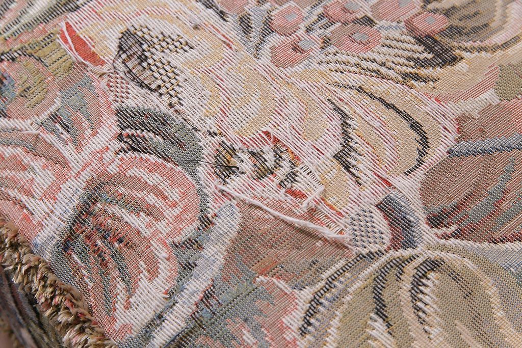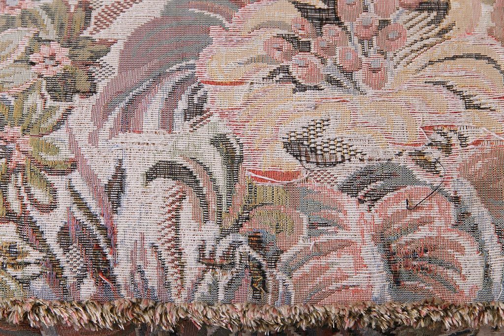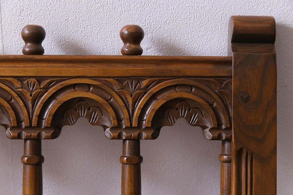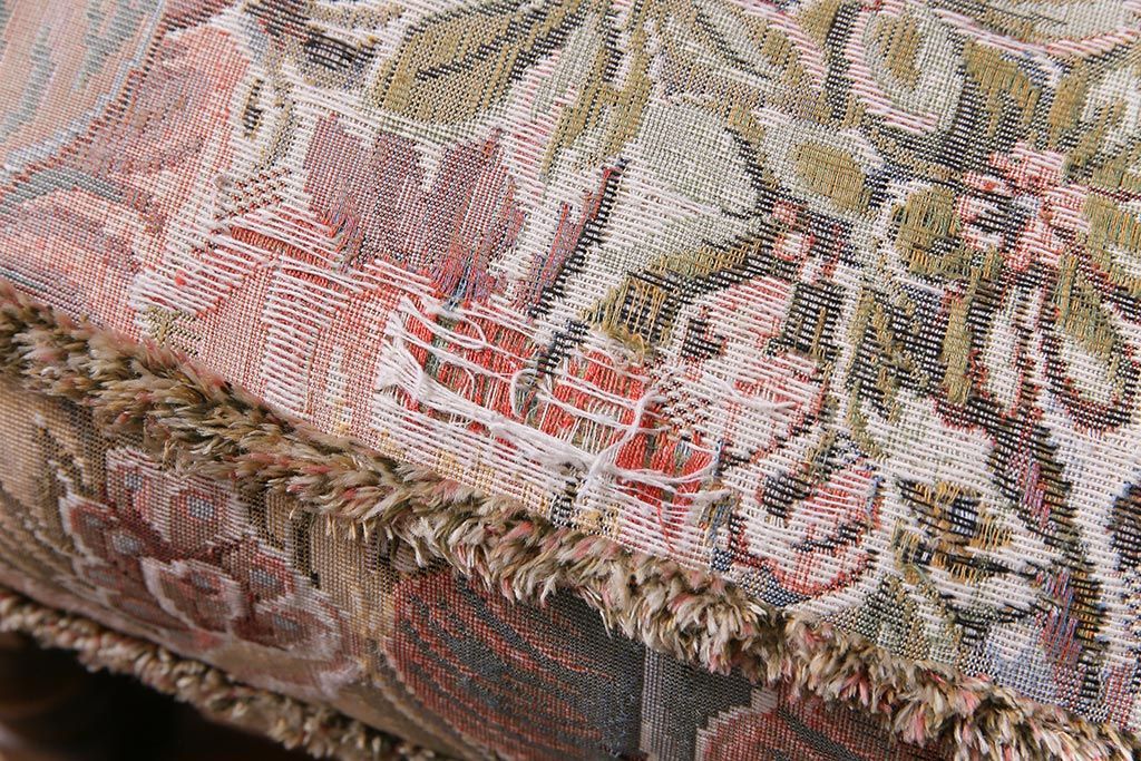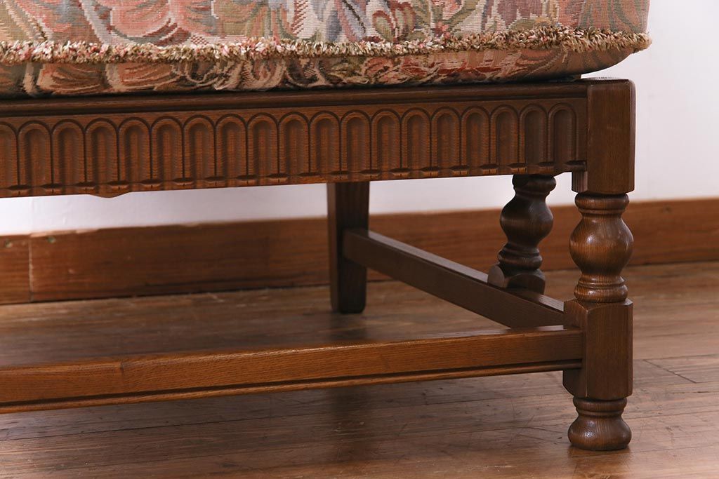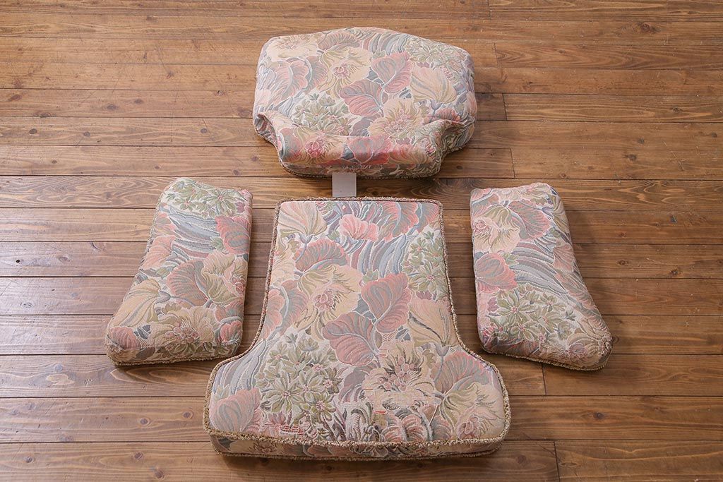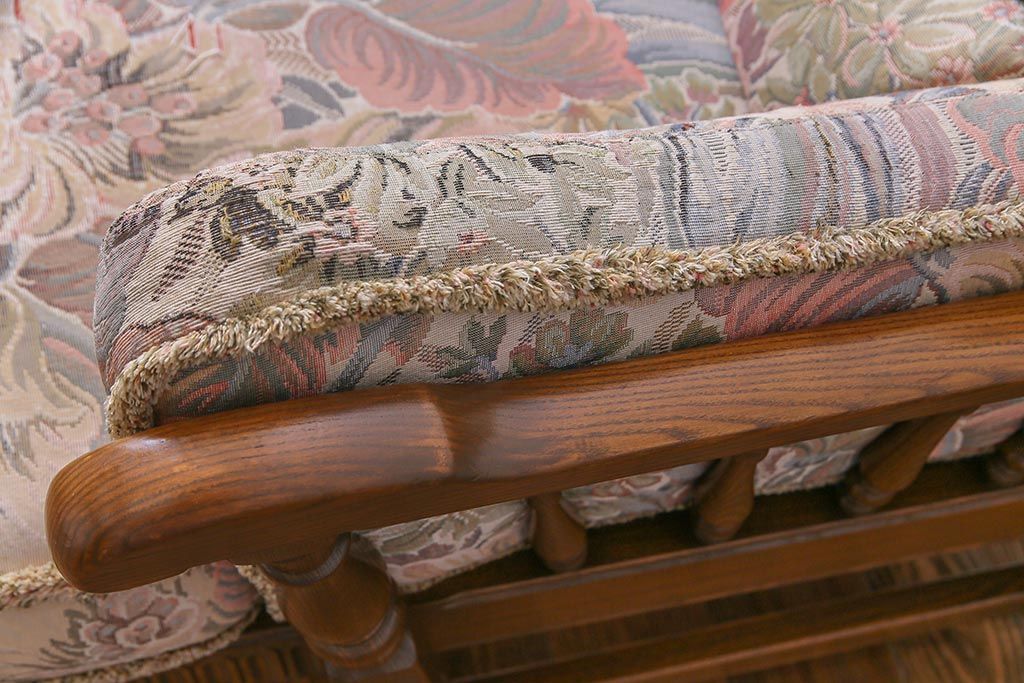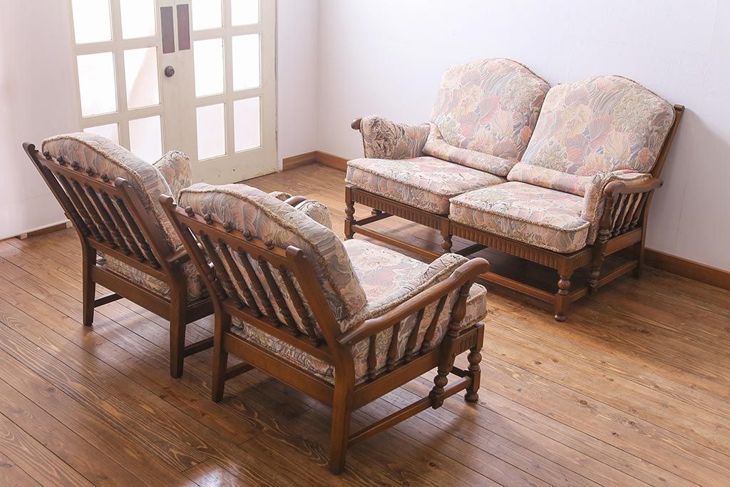 アンティーク家具 ERCOL(アーコール) York Minster 花柄のファブリックと凝った彫刻を楽しめる一人掛けソファ(1)