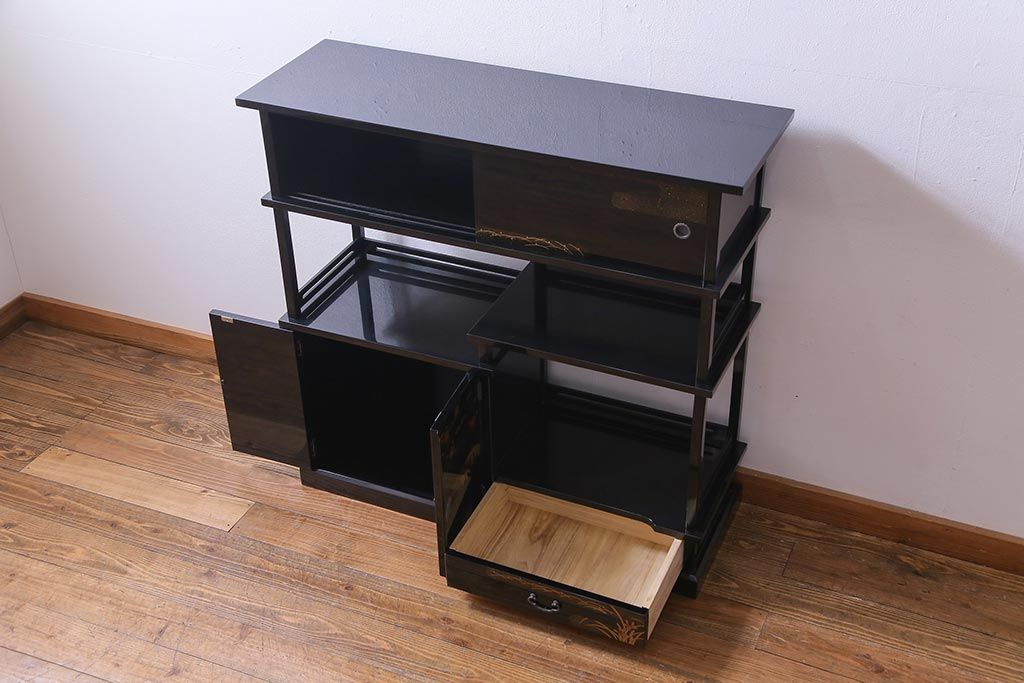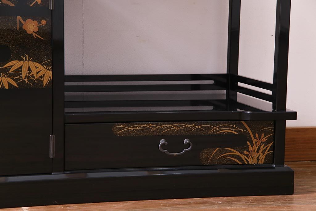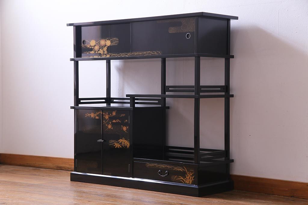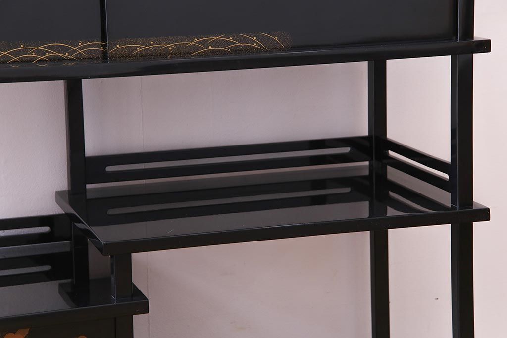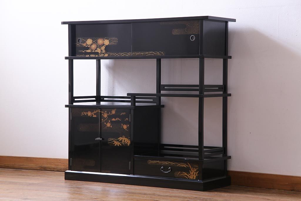 工芸品 本漆塗り 蒔絵 細部まで趣向が凝らされた輪島塗の茶棚(飾り棚、茶箪笥)(定価約300万円)