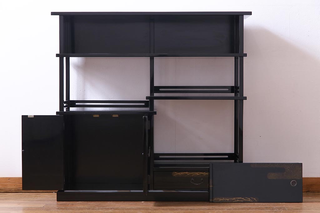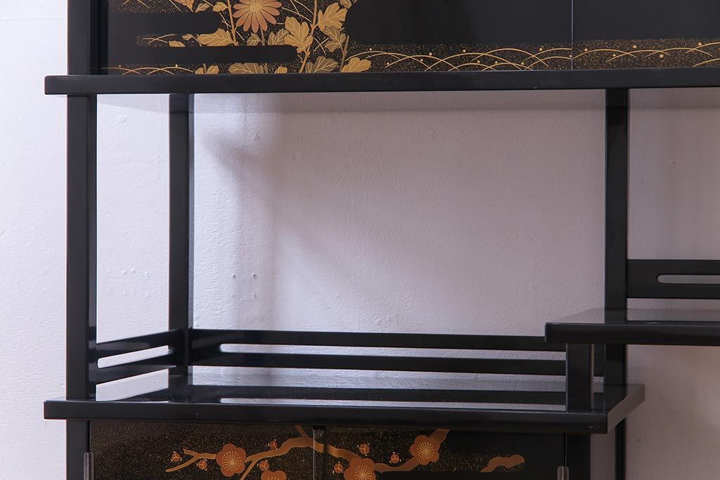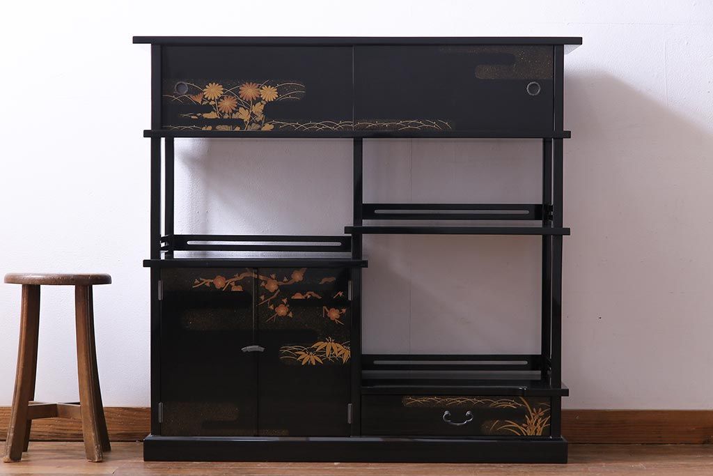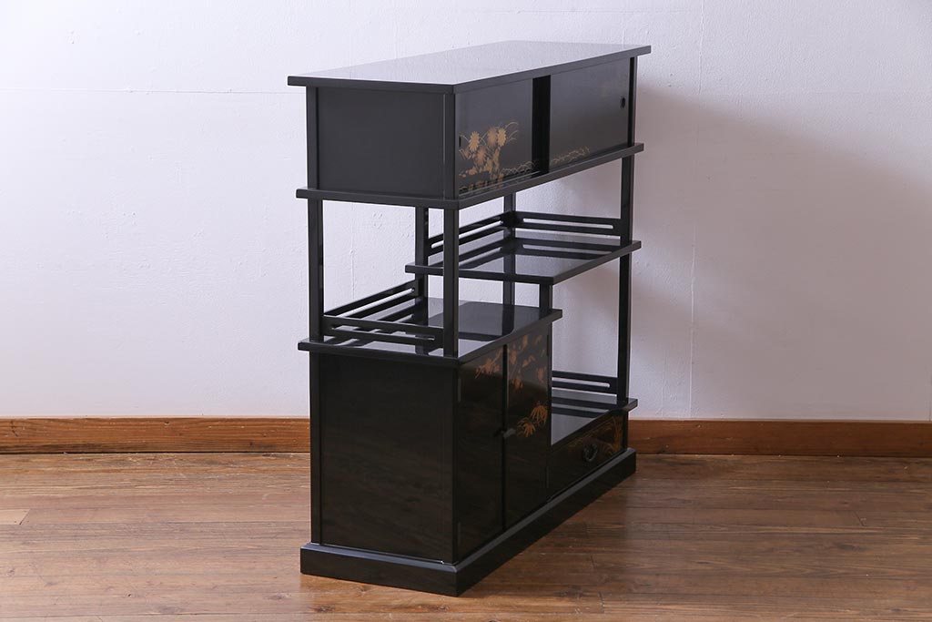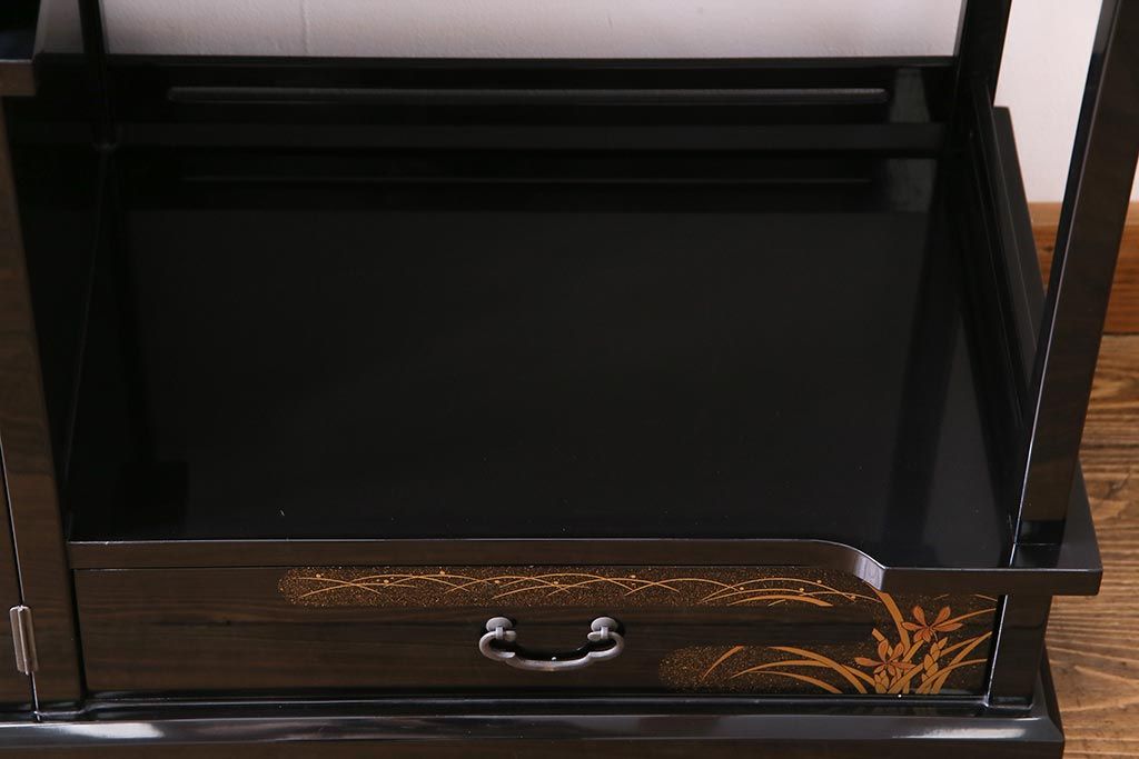 工芸品 本漆塗り 蒔絵 細部まで趣向が凝らされた輪島塗の茶棚(飾り棚、茶箪笥)(定価約300万円)