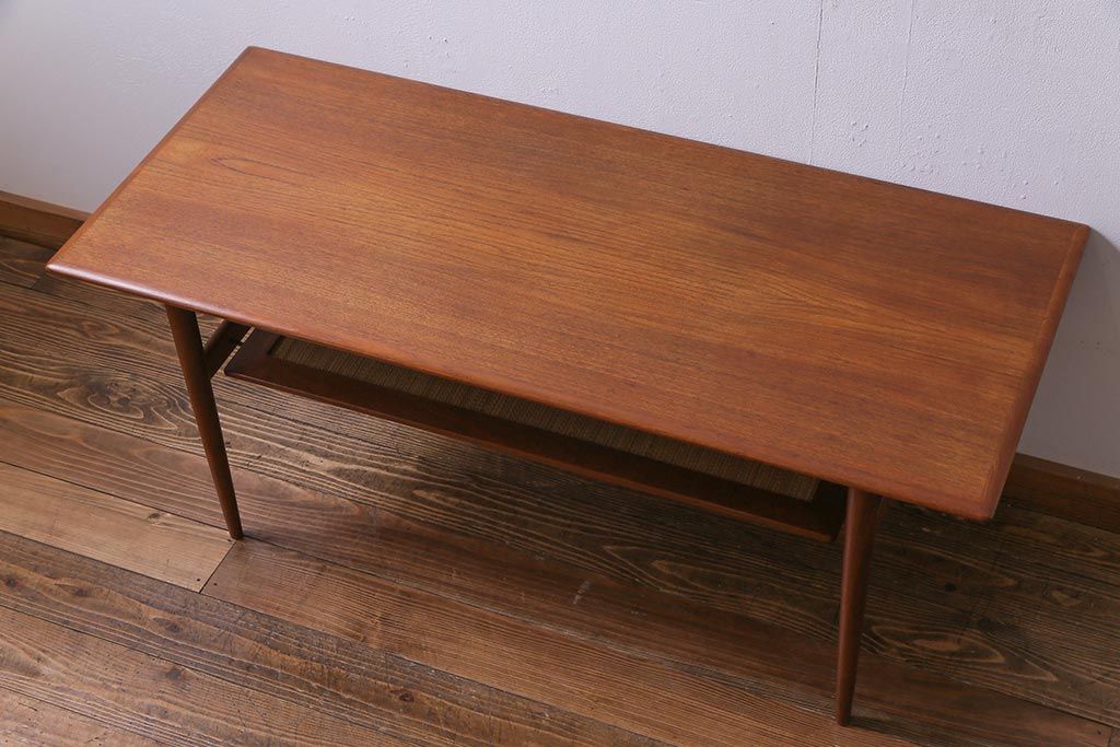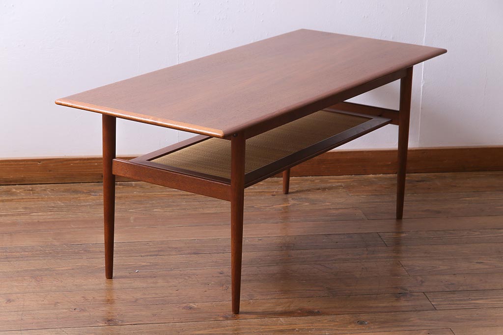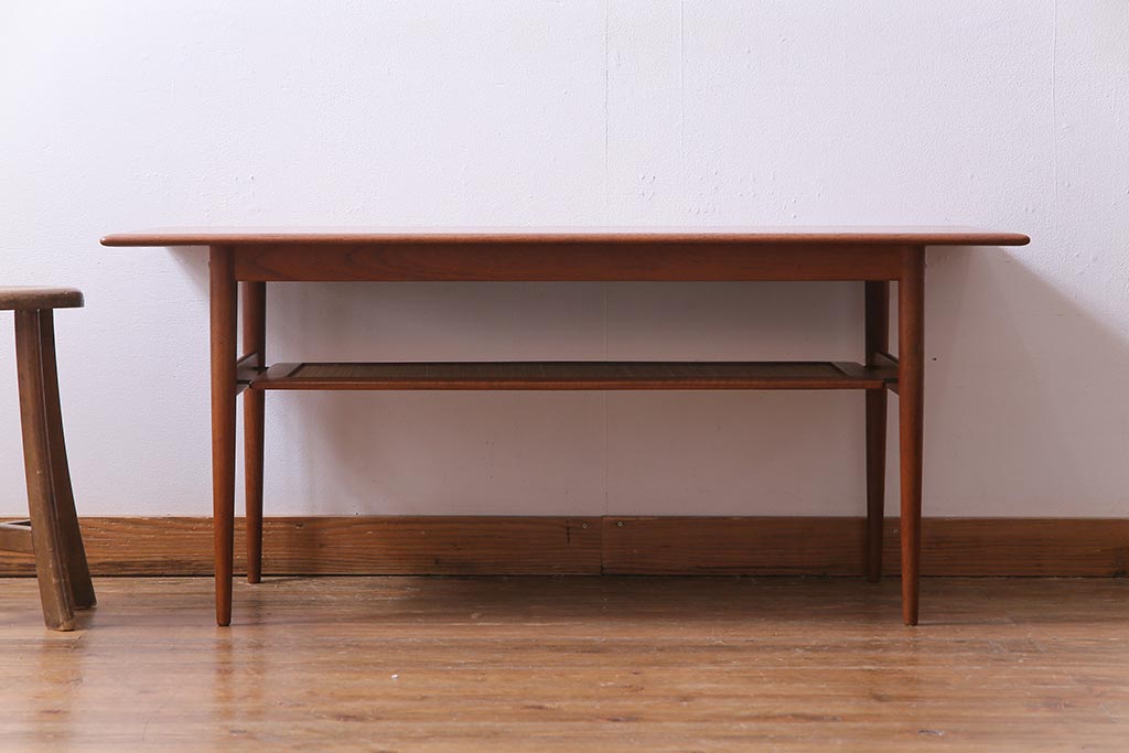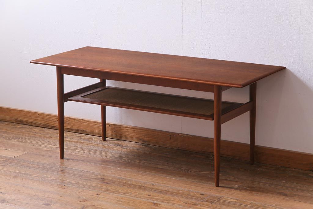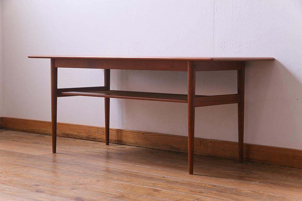 ヴィンテージ家具 北欧ビンテージ デンマーク チーク材 スリムな脚がおしゃれな棚付きセンターテーブル