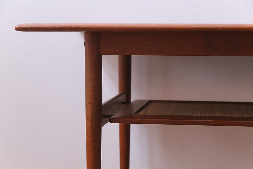 ラフジュ工房> テーブル> センターテーブル・ローテーブル > ヴィンテージ家具 北欧ビンテージ デンマーク チーク材 スリムな脚がおしゃれな棚付きセンターテーブル