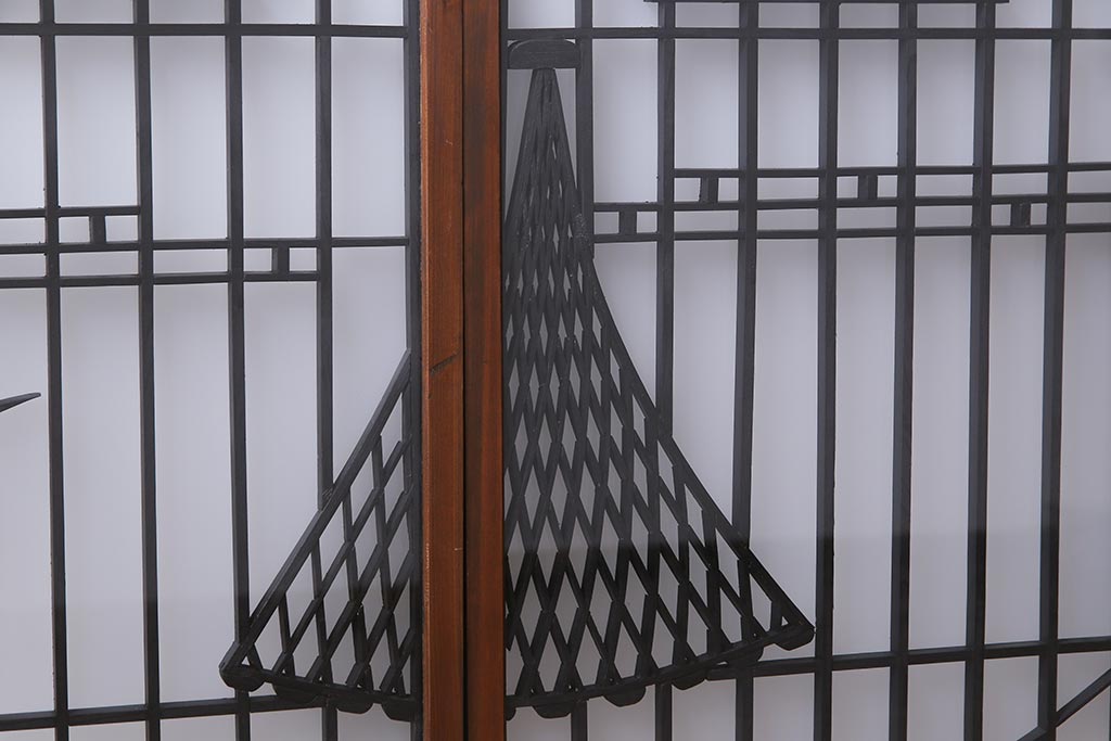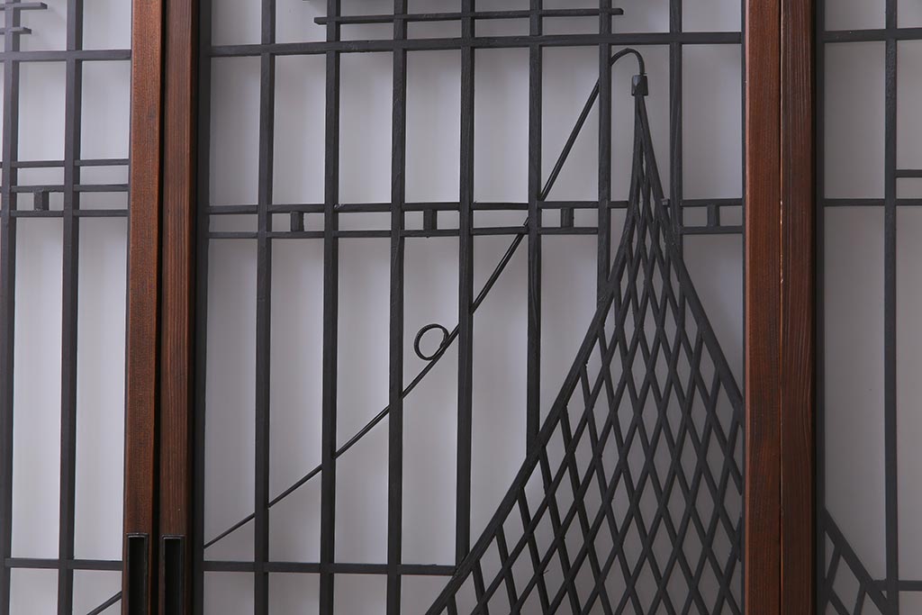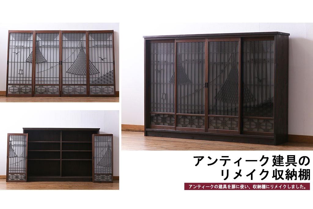 ラフジュ工房オリジナル 干し網・投げ網組子の書院戸をリメイクした収納棚(戸棚)