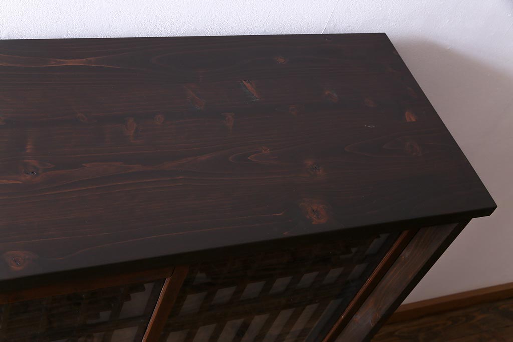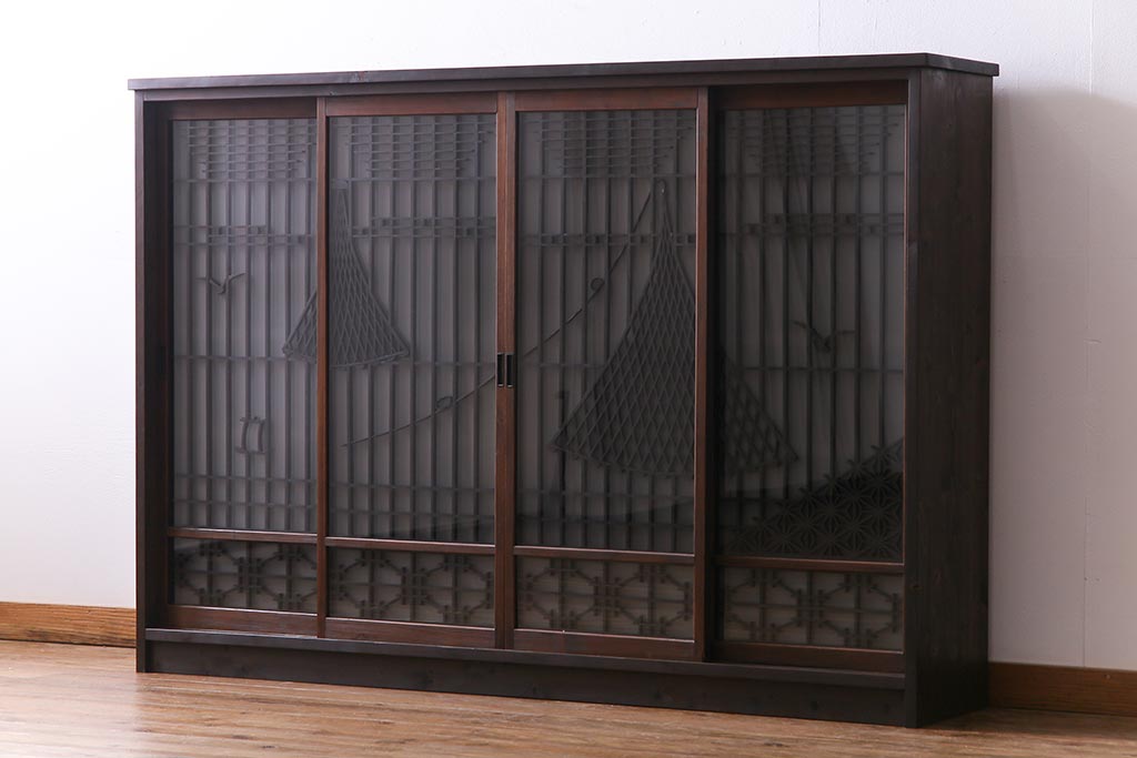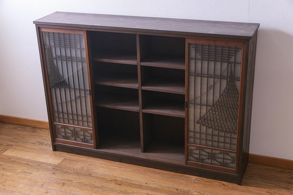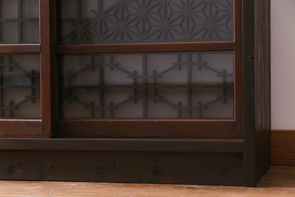 ラフジュ工房オリジナル 干し網・投げ網組子の書院戸をリメイクした収納棚(戸棚)です。