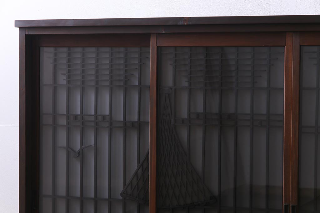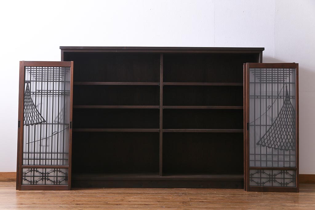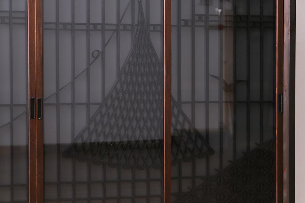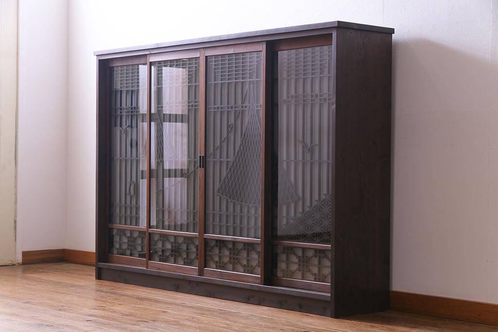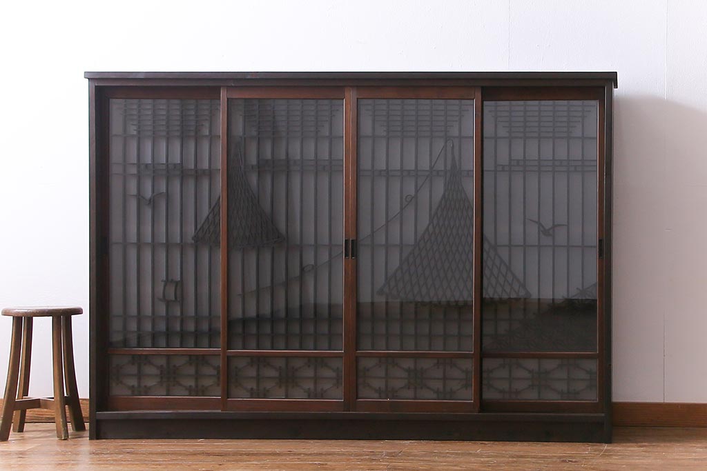 ラフジュ工房オリジナル 干し網・投げ網組子の書院戸をリメイクした収納棚(戸棚)です。
