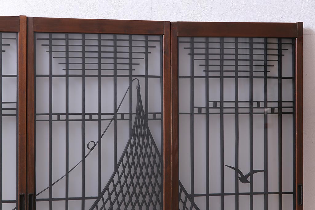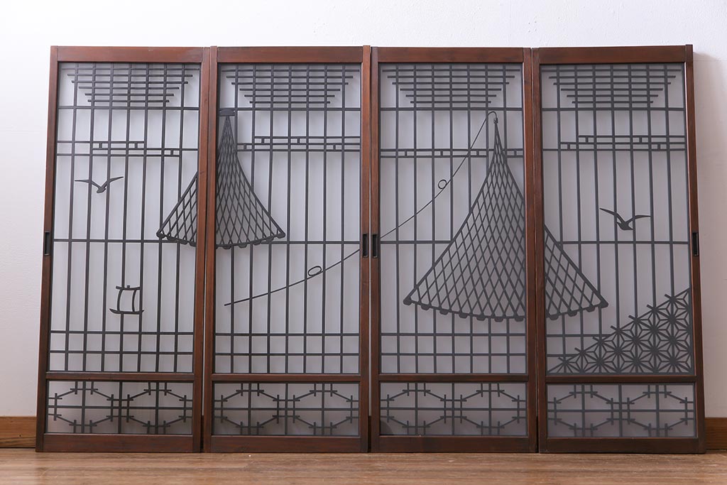干し網と投げ網のデザインの組子が、
