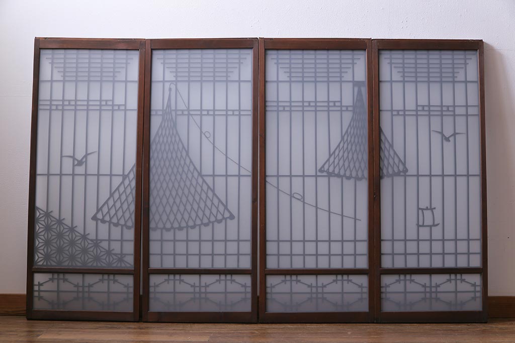 カモメや船も組子で描かれており、