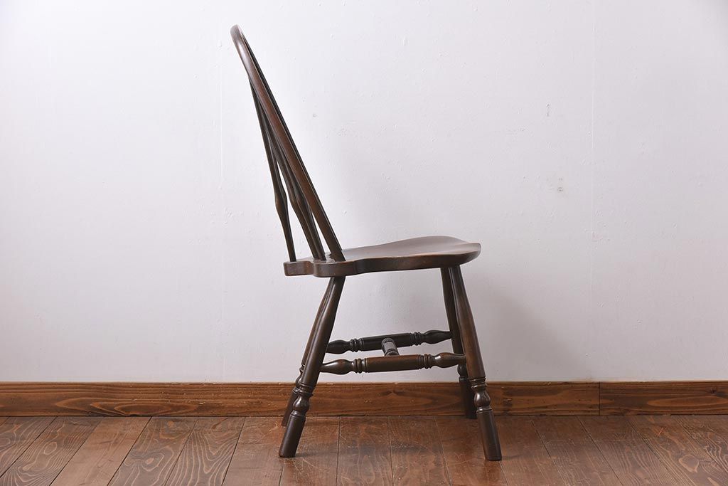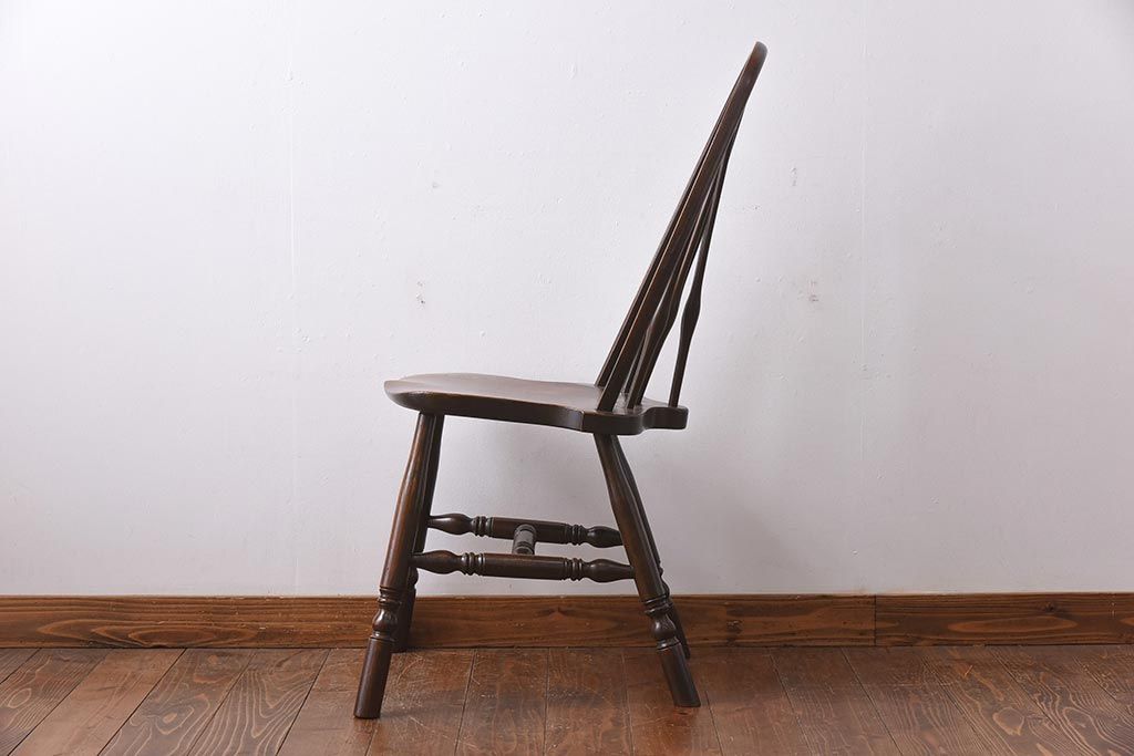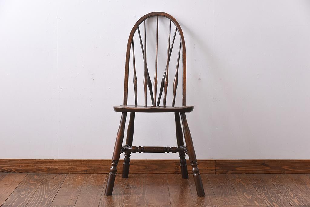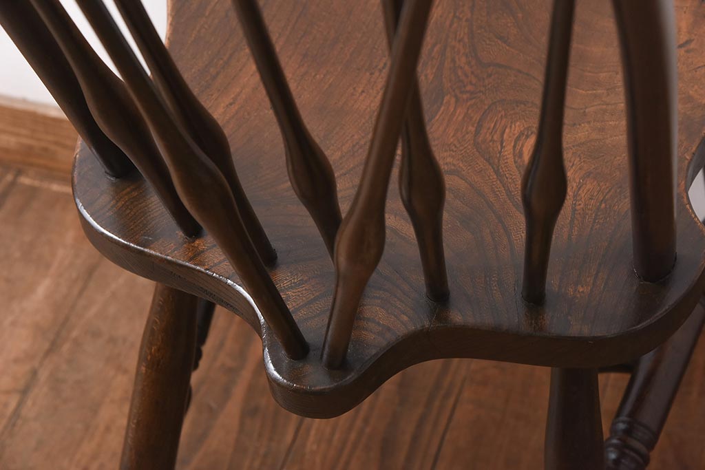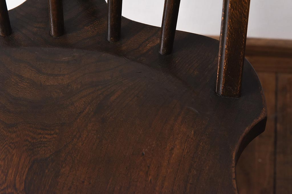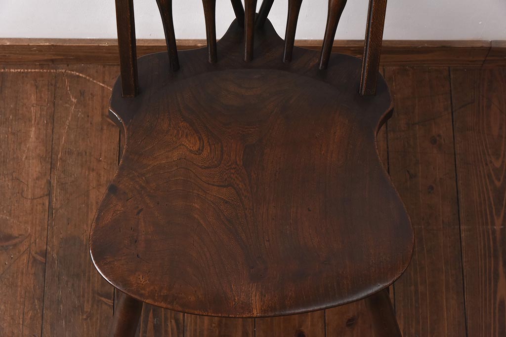 ヴィンテージ家具 イギリスビンテージ なめらかな木肌と濃い色味が魅力のダイニングチェア(ウィンザーチェア、板座チェア、ウインザーチェア)(1)