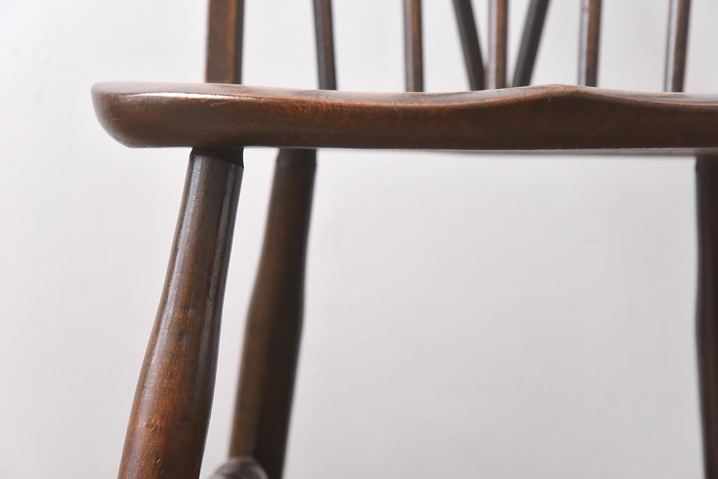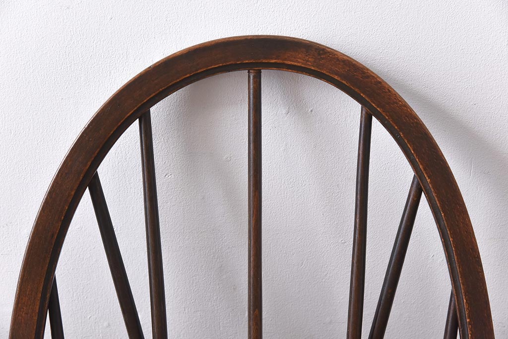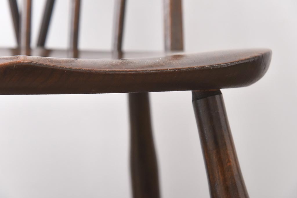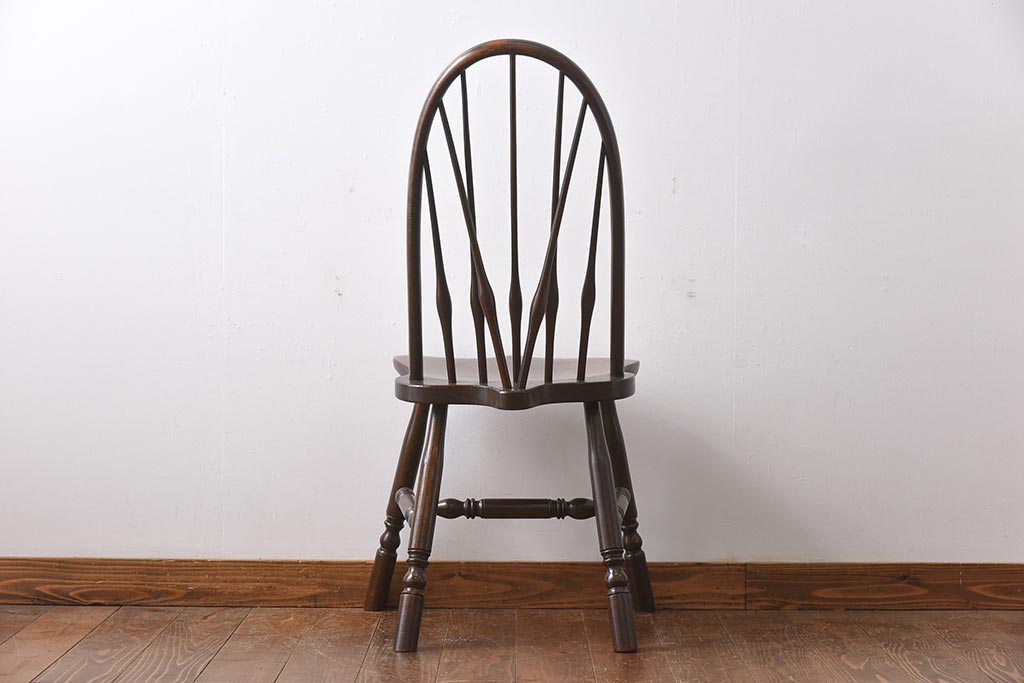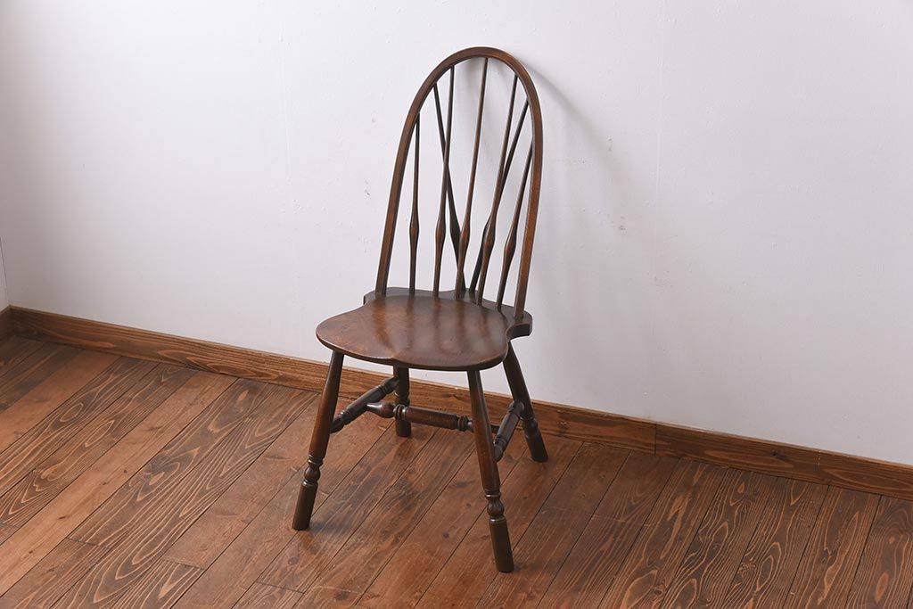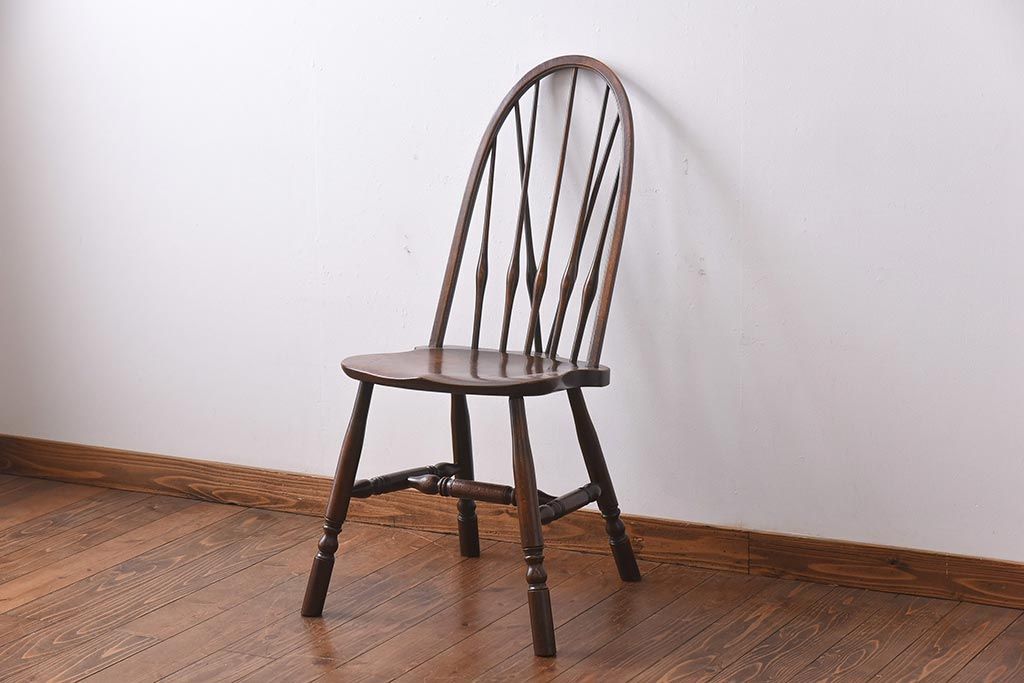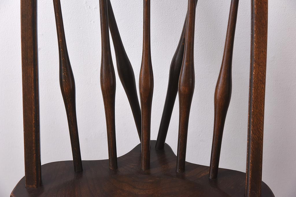 ヴィンテージ家具 イギリスビンテージ なめらかな木肌と濃い色味が魅力のダイニングチェア(ウィンザーチェア、板座チェア、ウインザーチェア)(1)