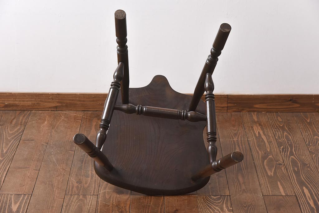ラフジュ工房> 椅子・ベンチ> ダイニングチェア > ヴィンテージ家具 イギリスビンテージ なめらかな木肌と濃い色味が魅力のダイニングチェア(ウィンザーチェア、板座チェア、ウインザーチェア)(1)