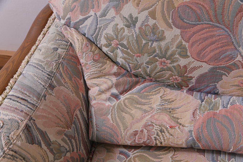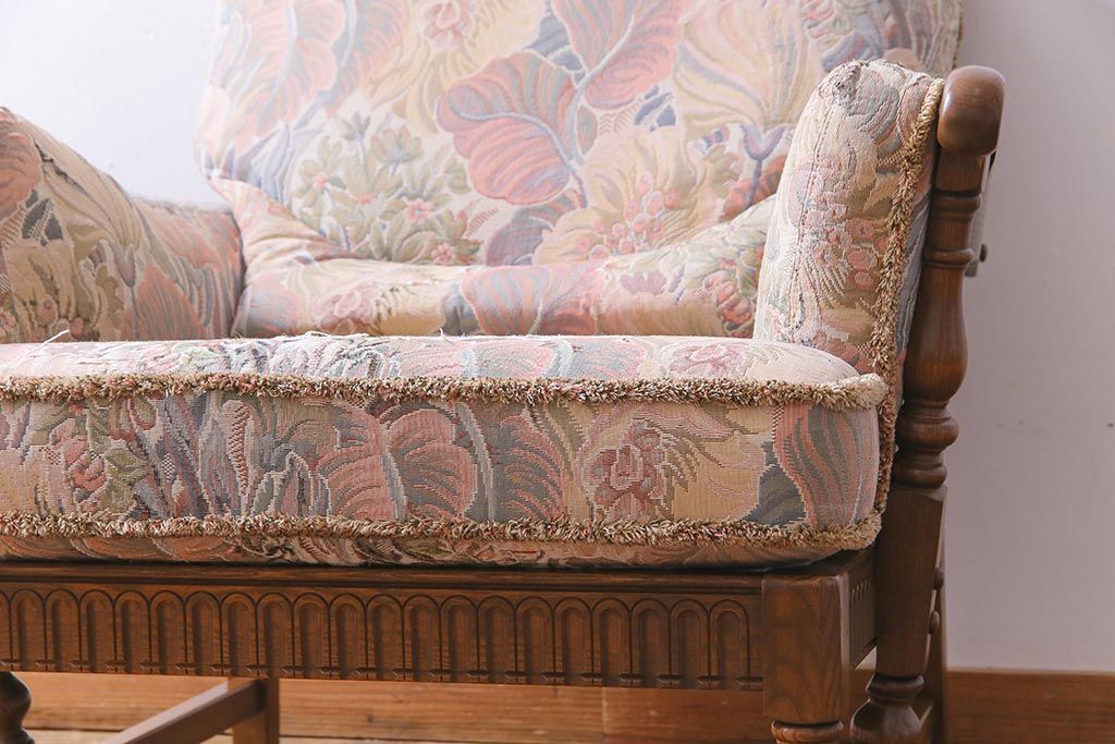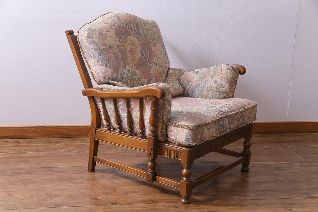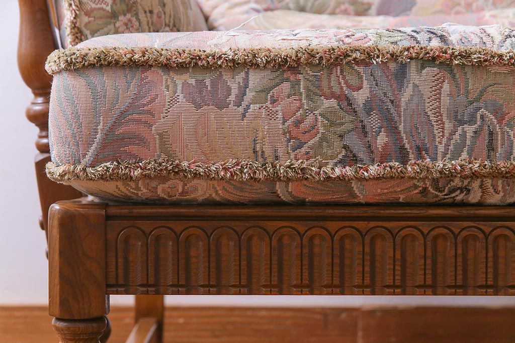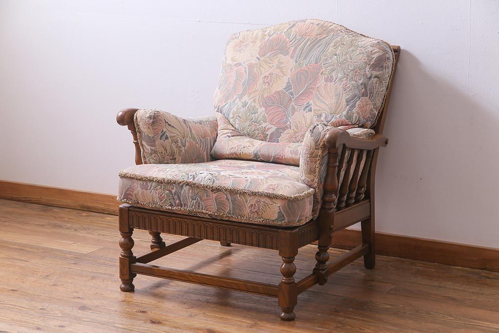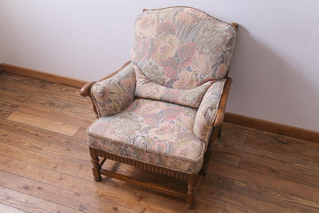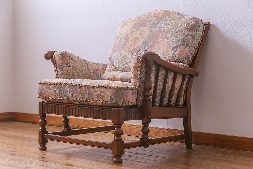 アンティーク家具 ERCOL(アーコール) York Minster 花柄のファブリックと凝った彫刻を楽しめる一人掛けソファ(2)
