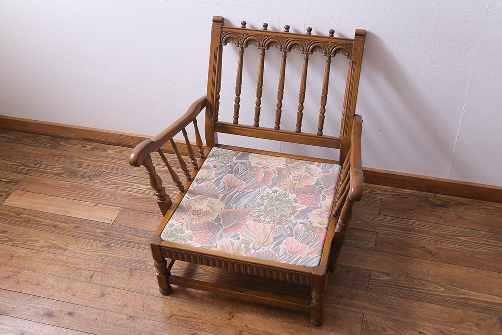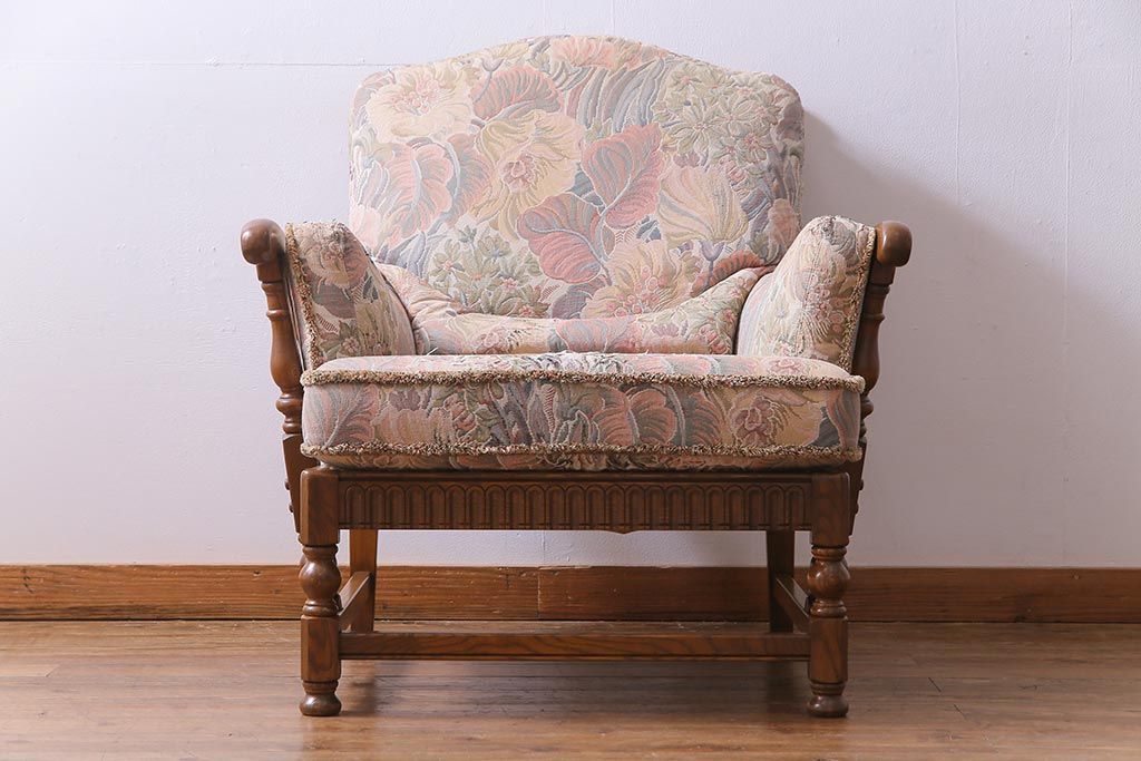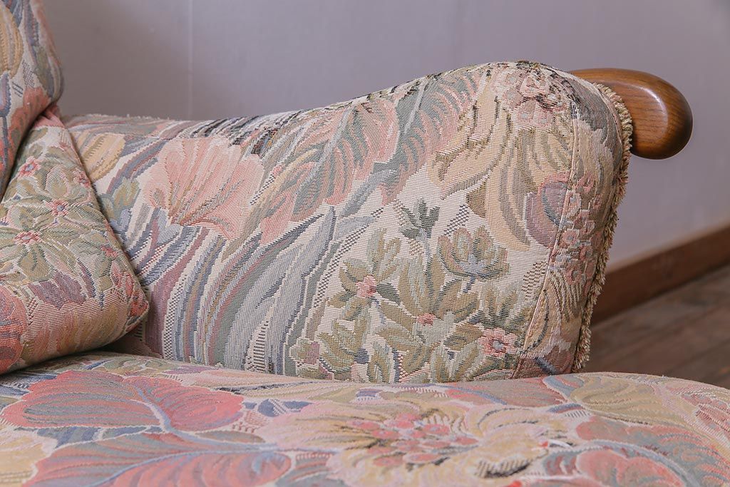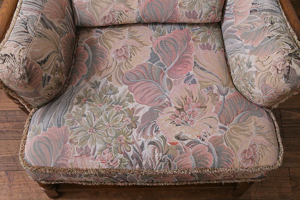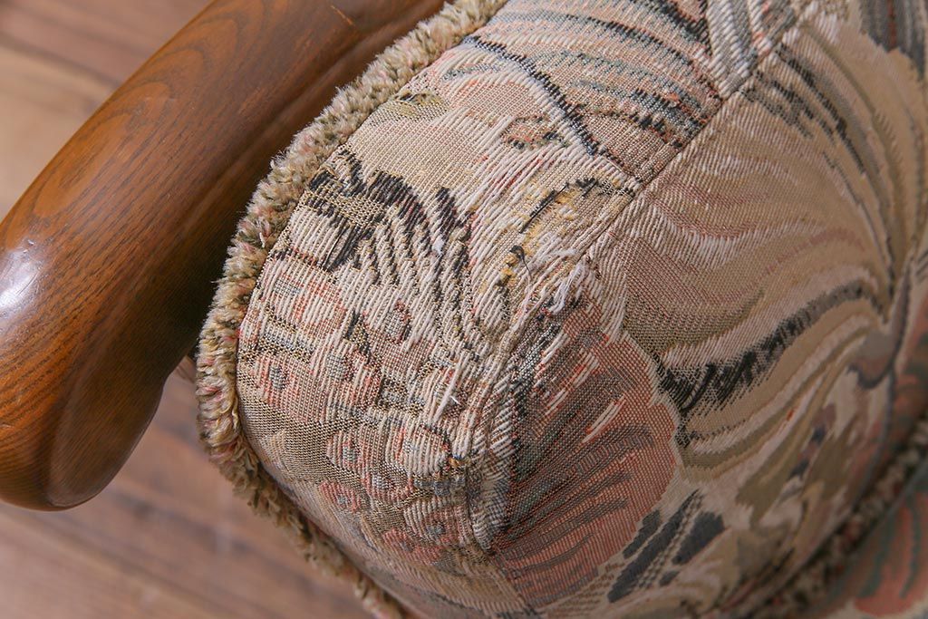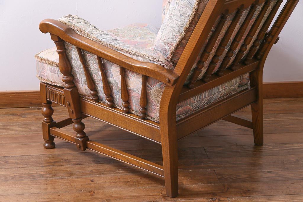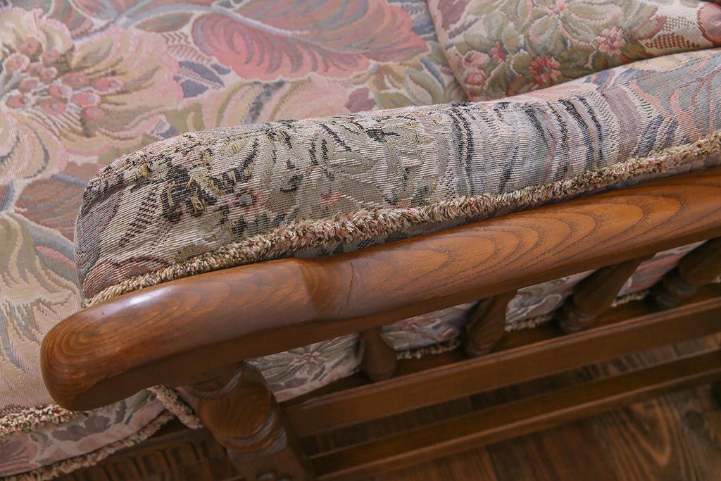 アンティーク家具 ERCOL(アーコール) York Minster 花柄のファブリックと凝った彫刻を楽しめる一人掛けソファ(2)