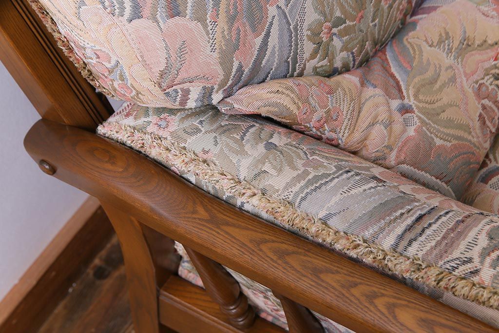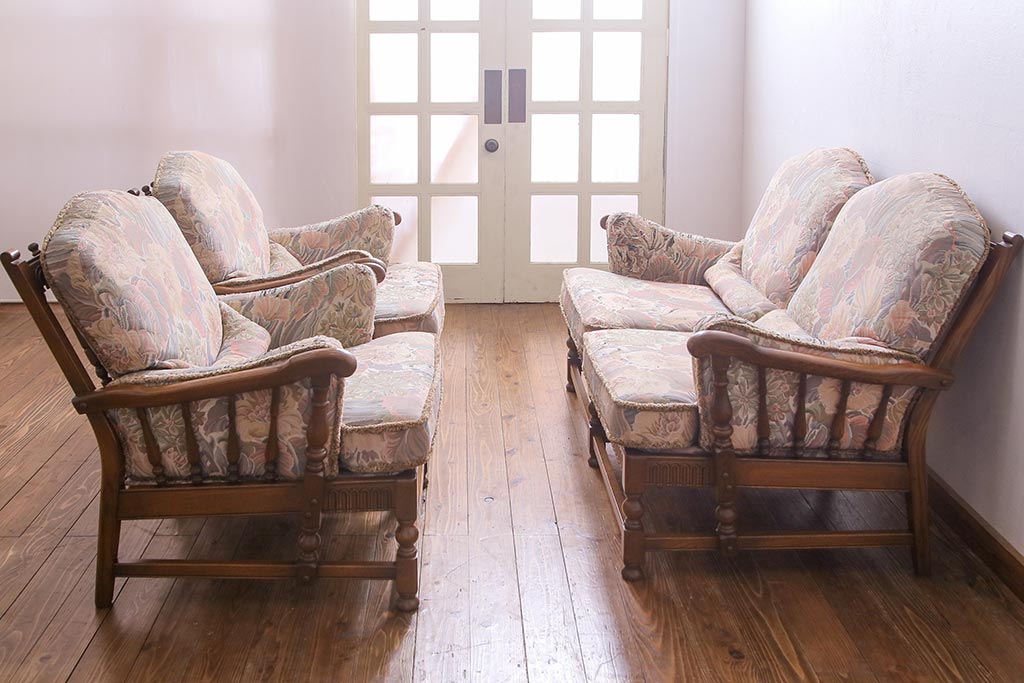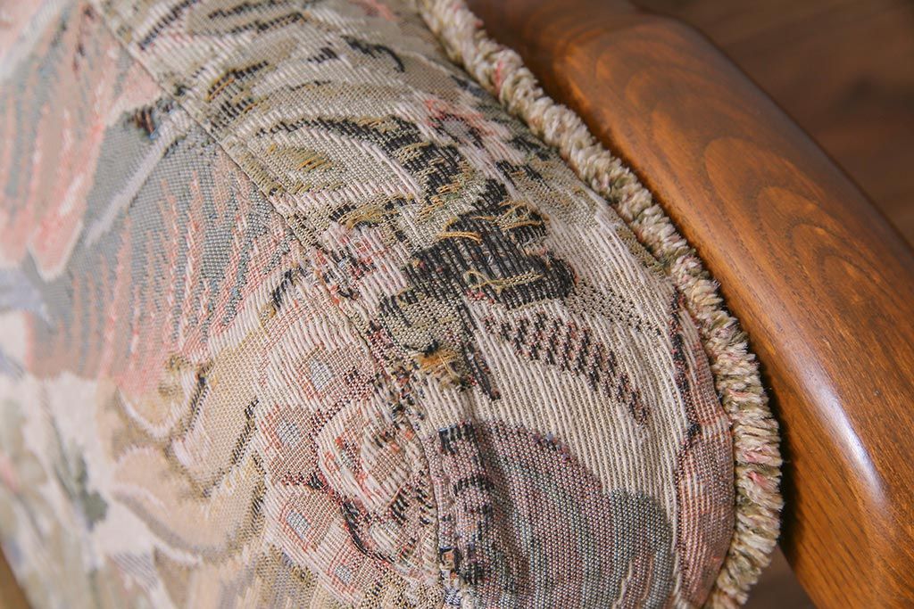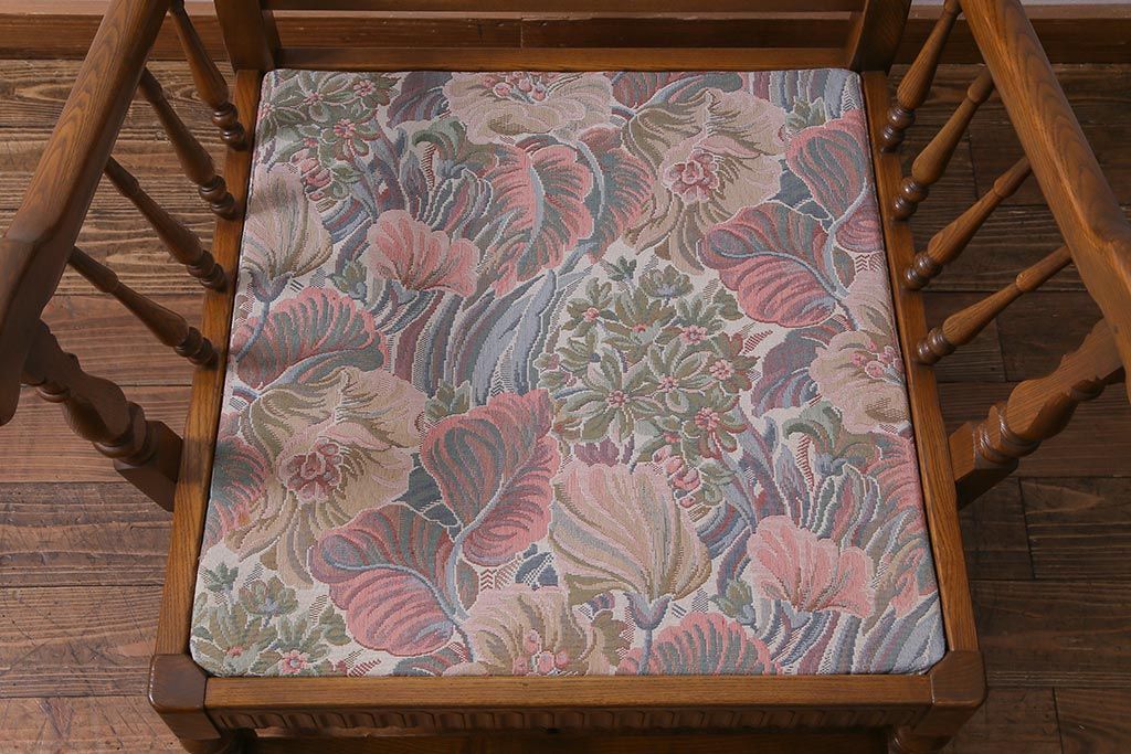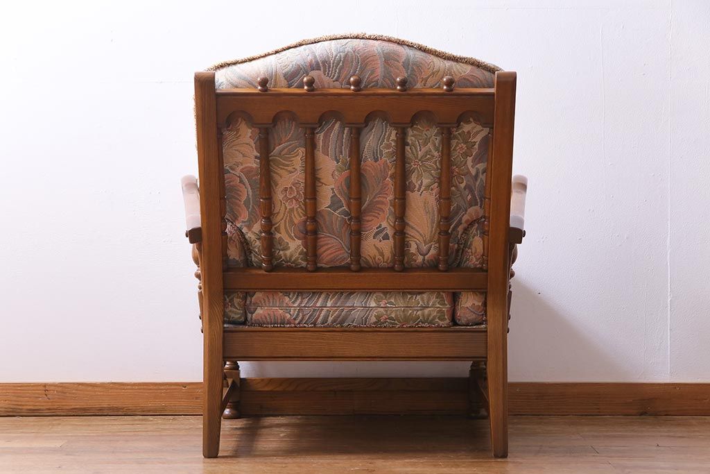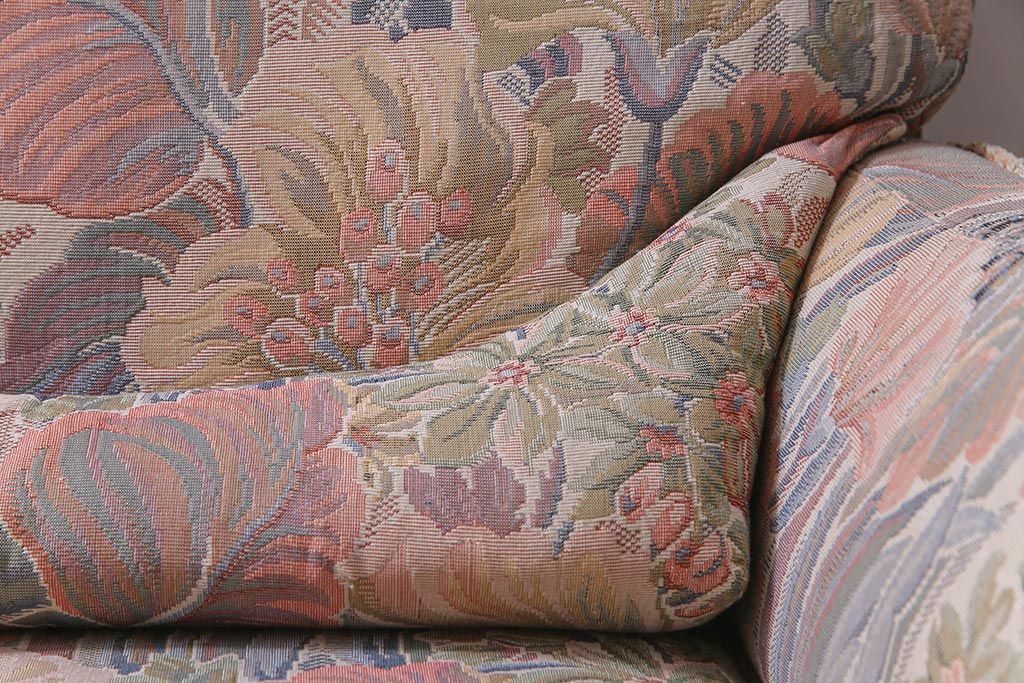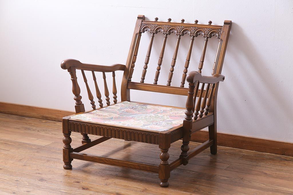 アンティーク家具 ERCOL(アーコール) York Minster 花柄のファブリックと凝った彫刻を楽しめる一人掛けソファ(2)