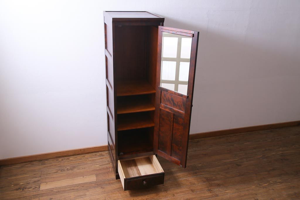 ラフジュ工房> ワードローブ・ロッカー> ワードローブ > 中古 北海道民芸家具 #536 細身で取り入れやすい上品なロッカータンス(収納棚、ワードローブ)