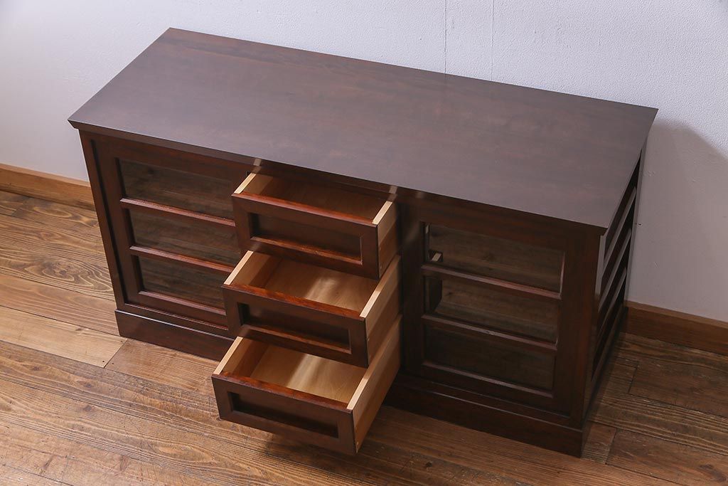 中古 松本民芸家具 特注品 すっきりとしたモダンなリビングボード(収納棚、戸棚)です。