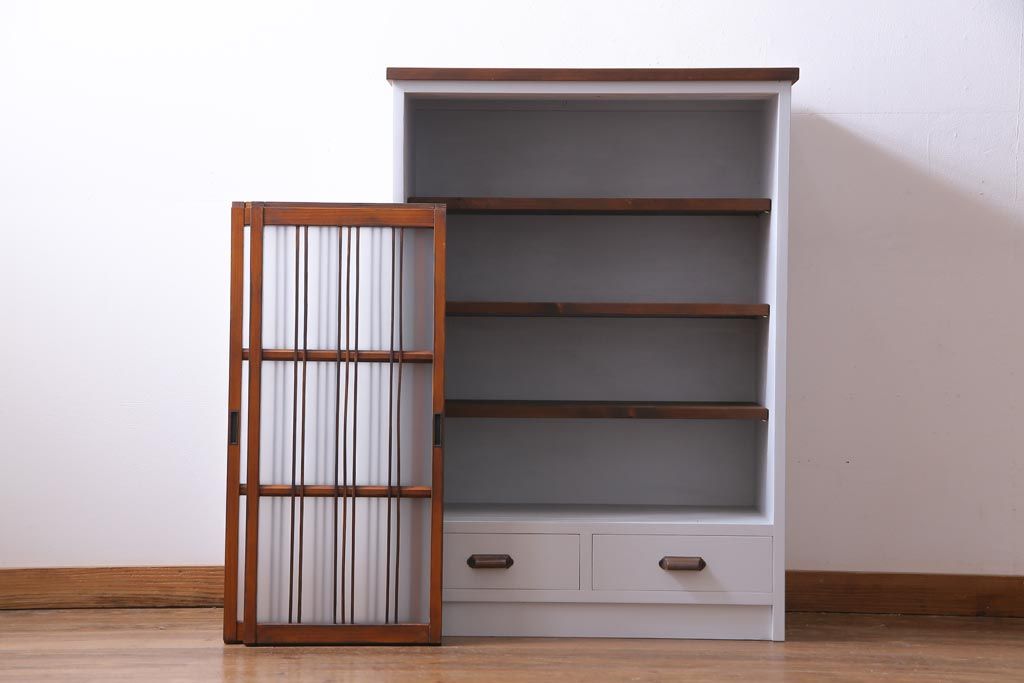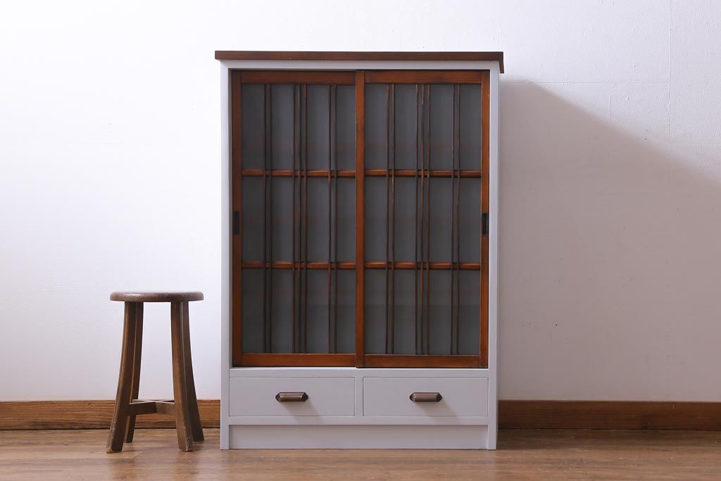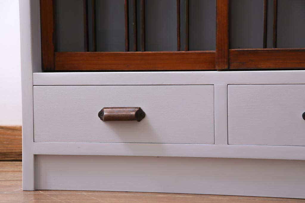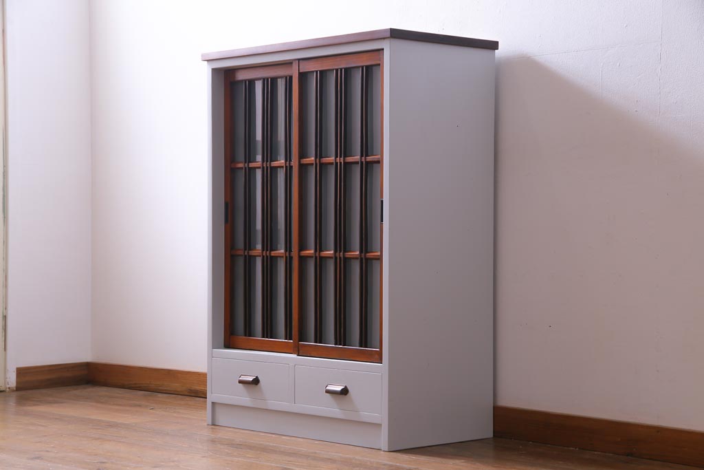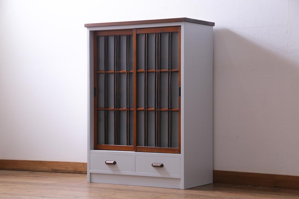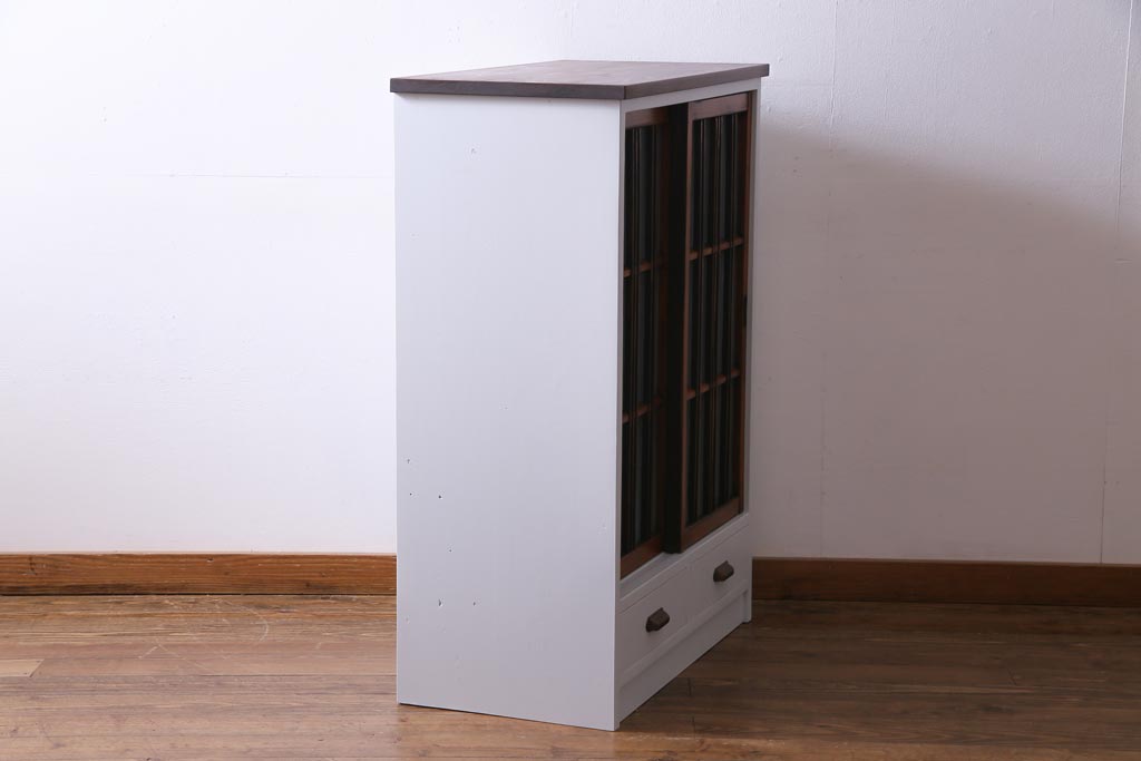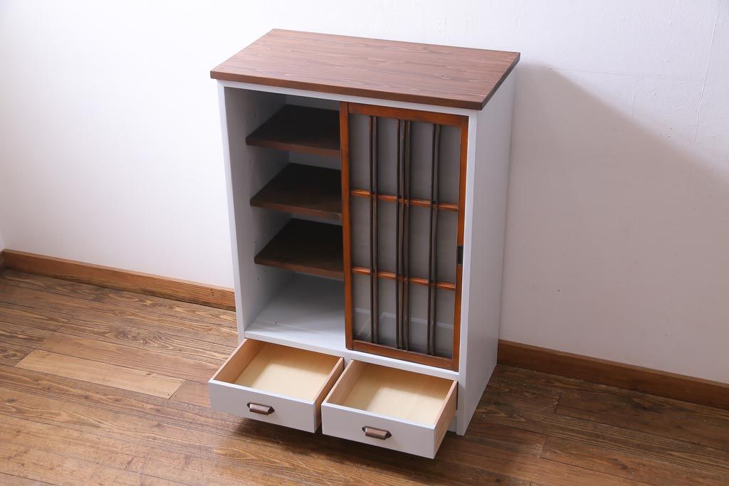 ラフジュ工房オリジナル 古建具リメイク すりガラス 和モダンな雰囲気あふれるペイント収納棚(戸棚)
