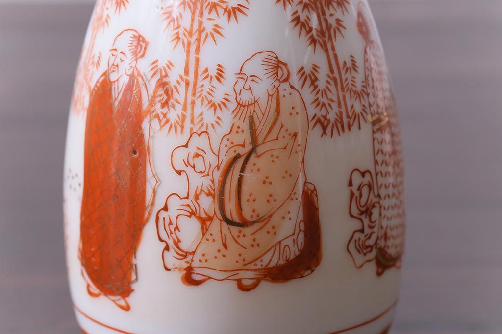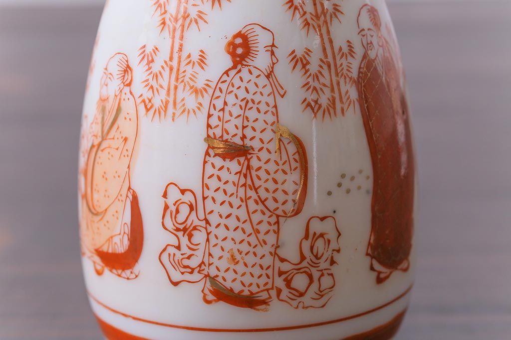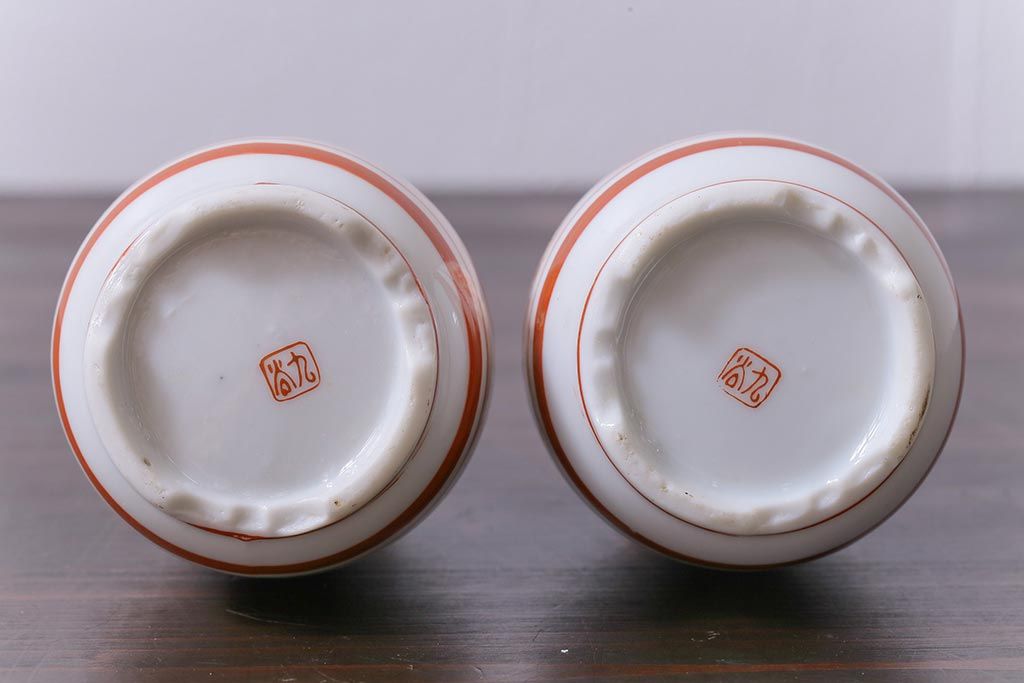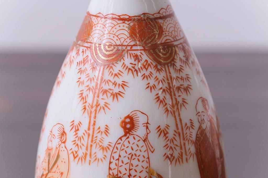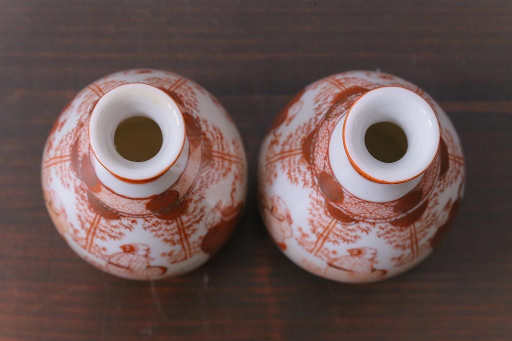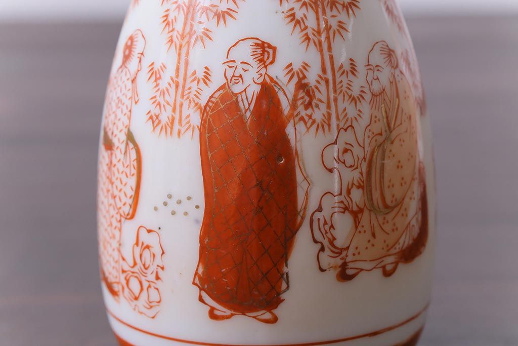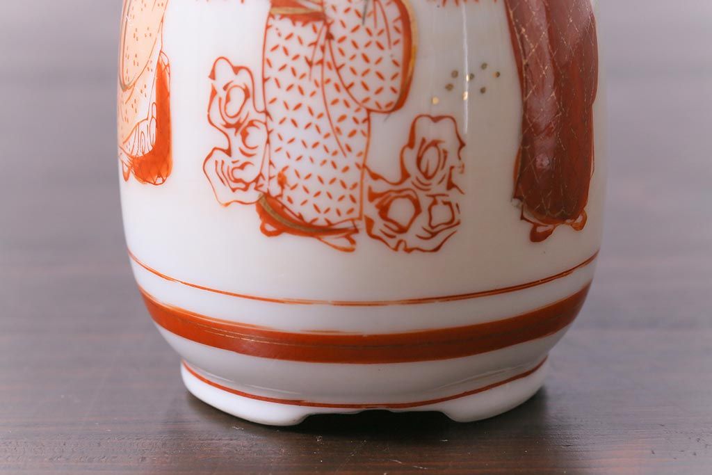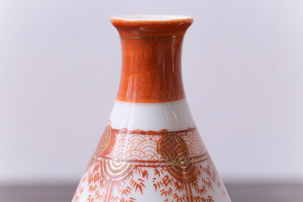 和製アンティーク 九谷焼 赤絵金彩 鮮やかな色と繊細なタッチの徳利(酒入れ、酒器、和食器)2個セット