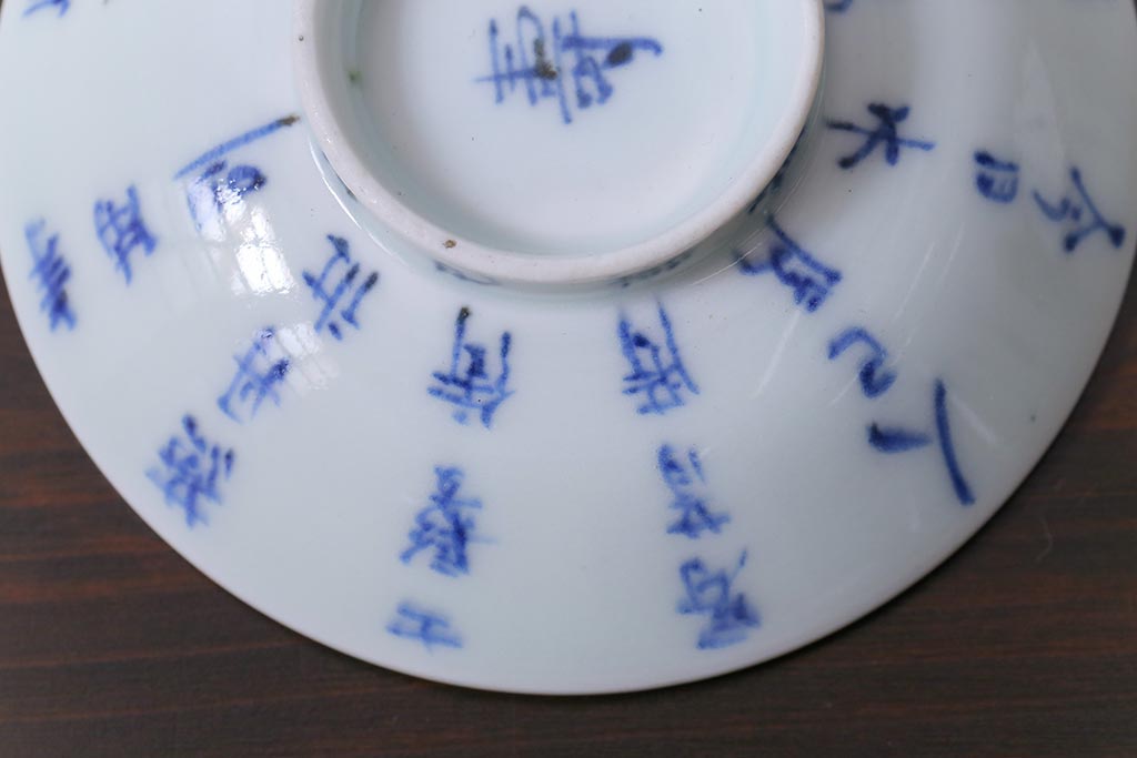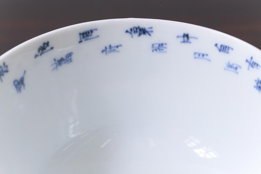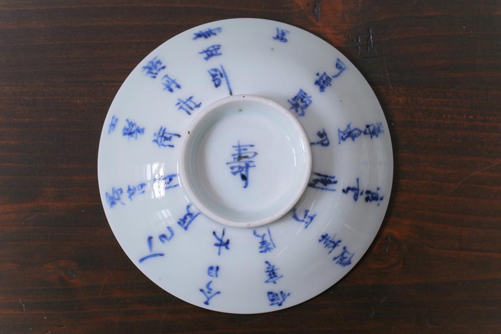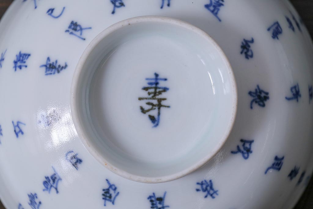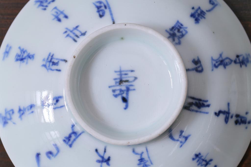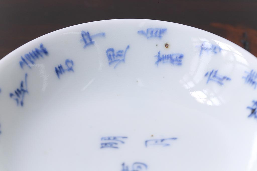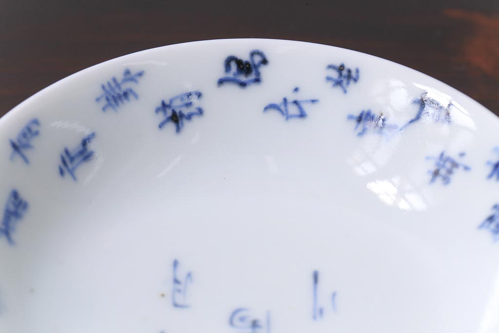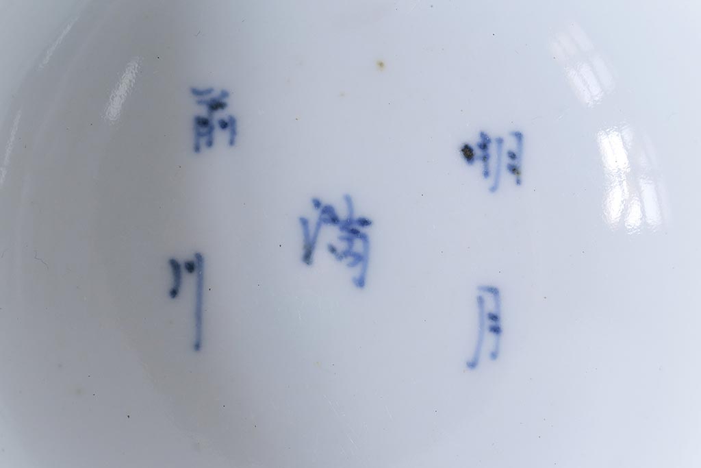 和製アンティーク 江戸期 「明月滿前川」 漢詩文字が書かれた蓋付茶碗(和食器)2客セット