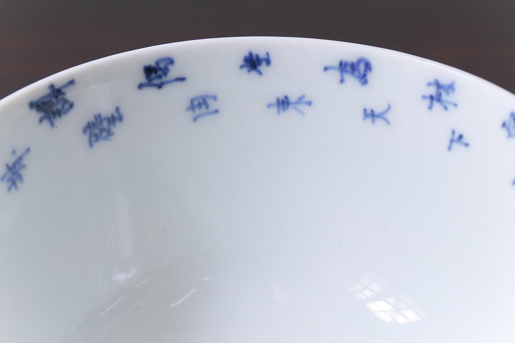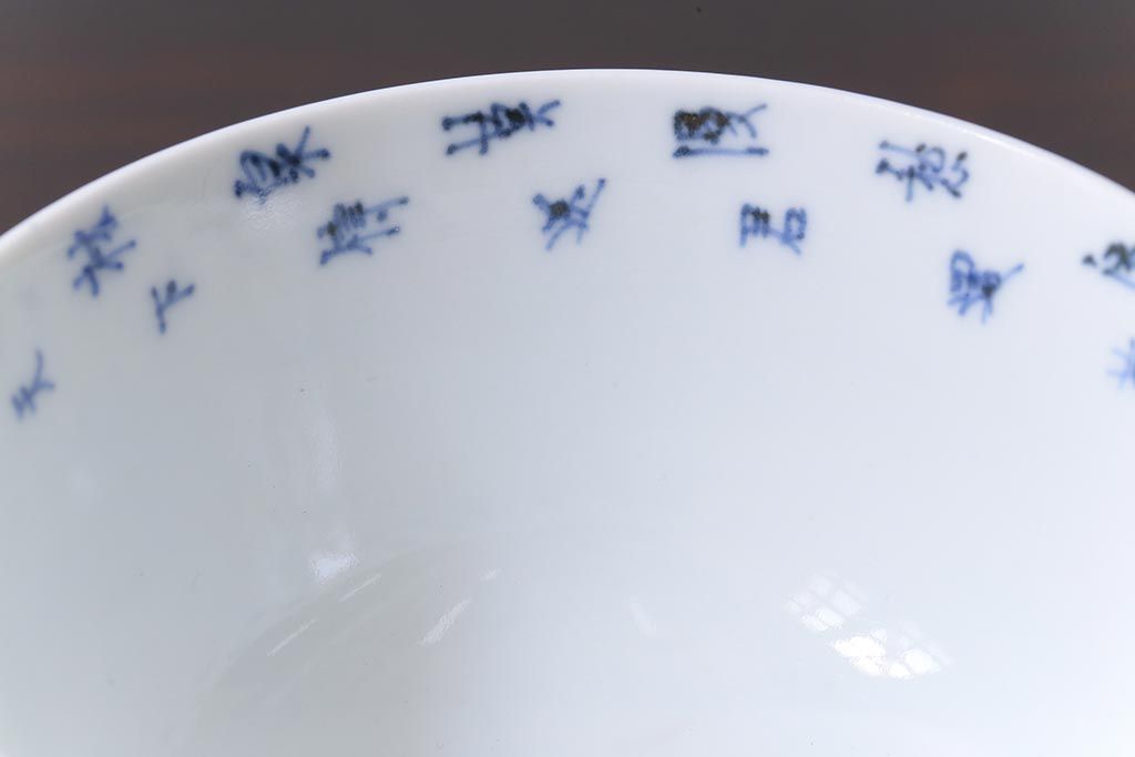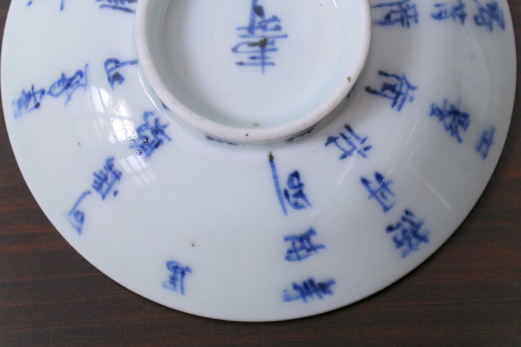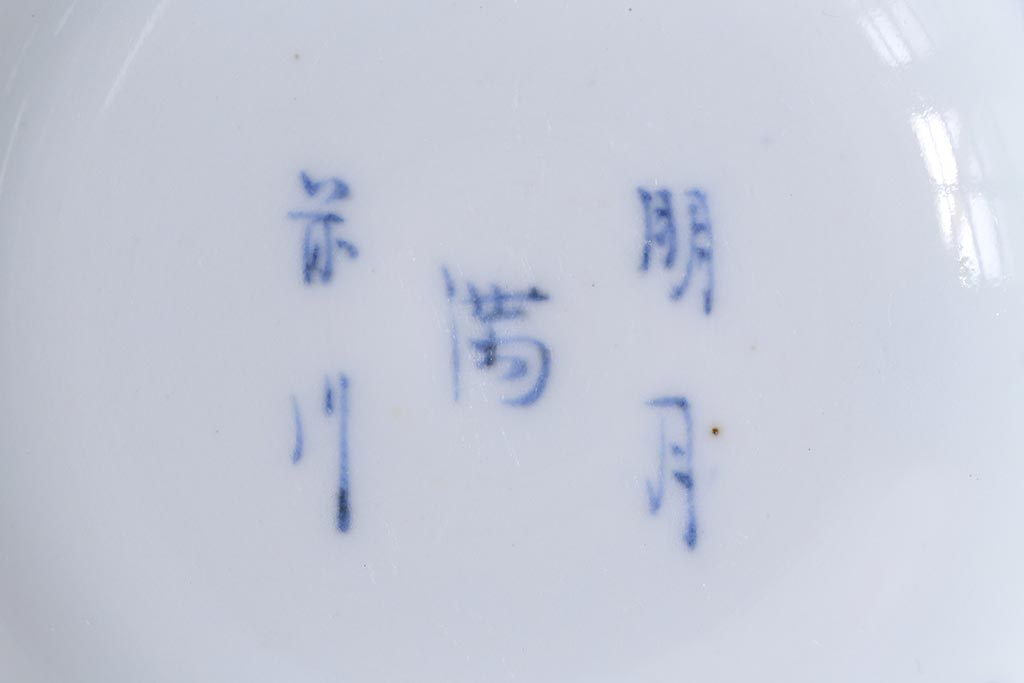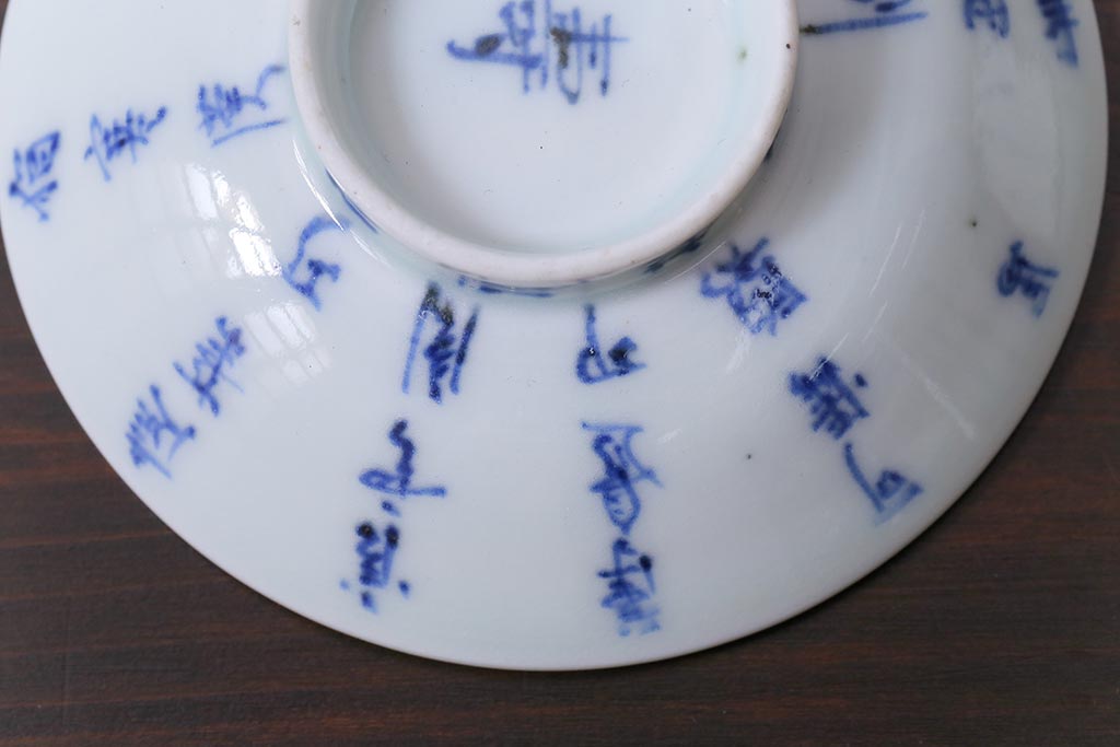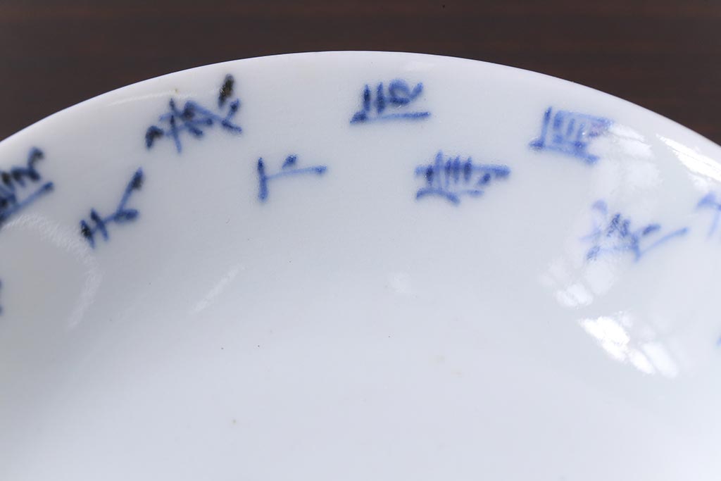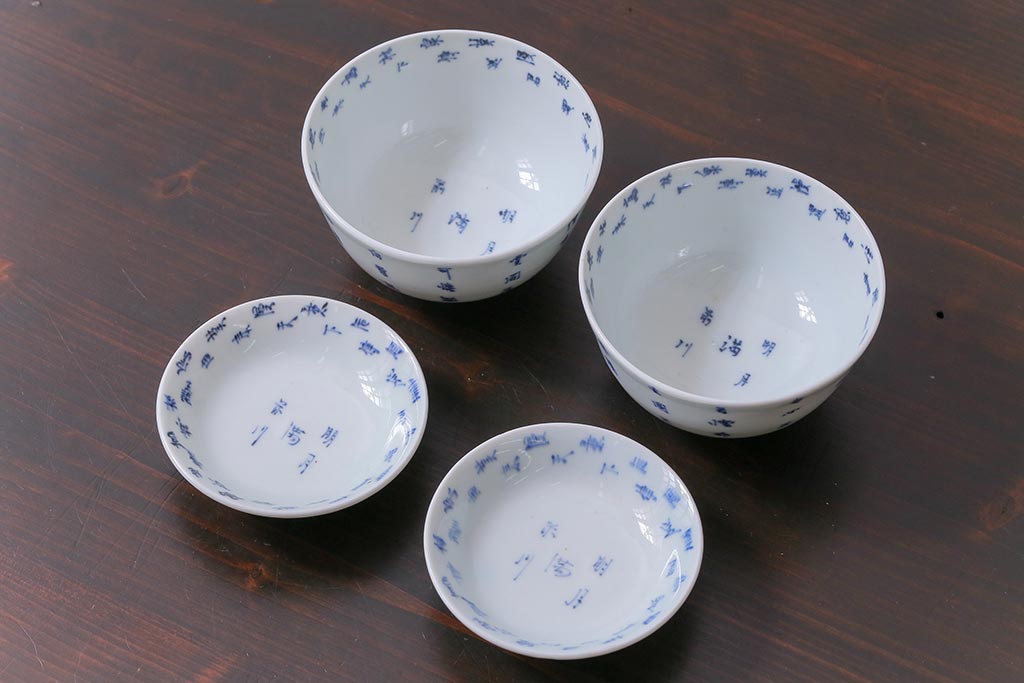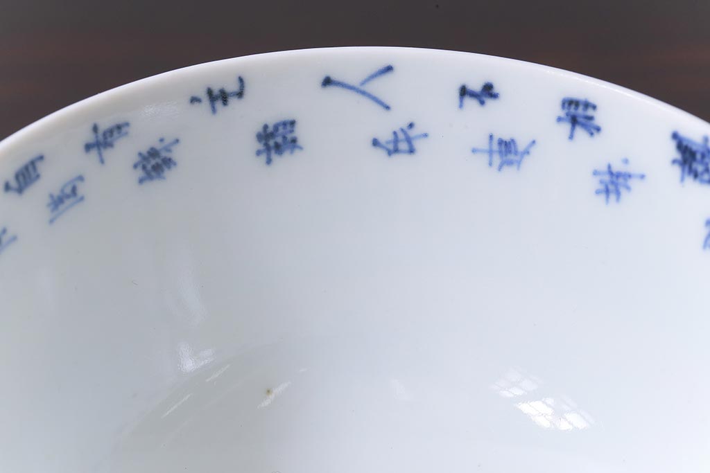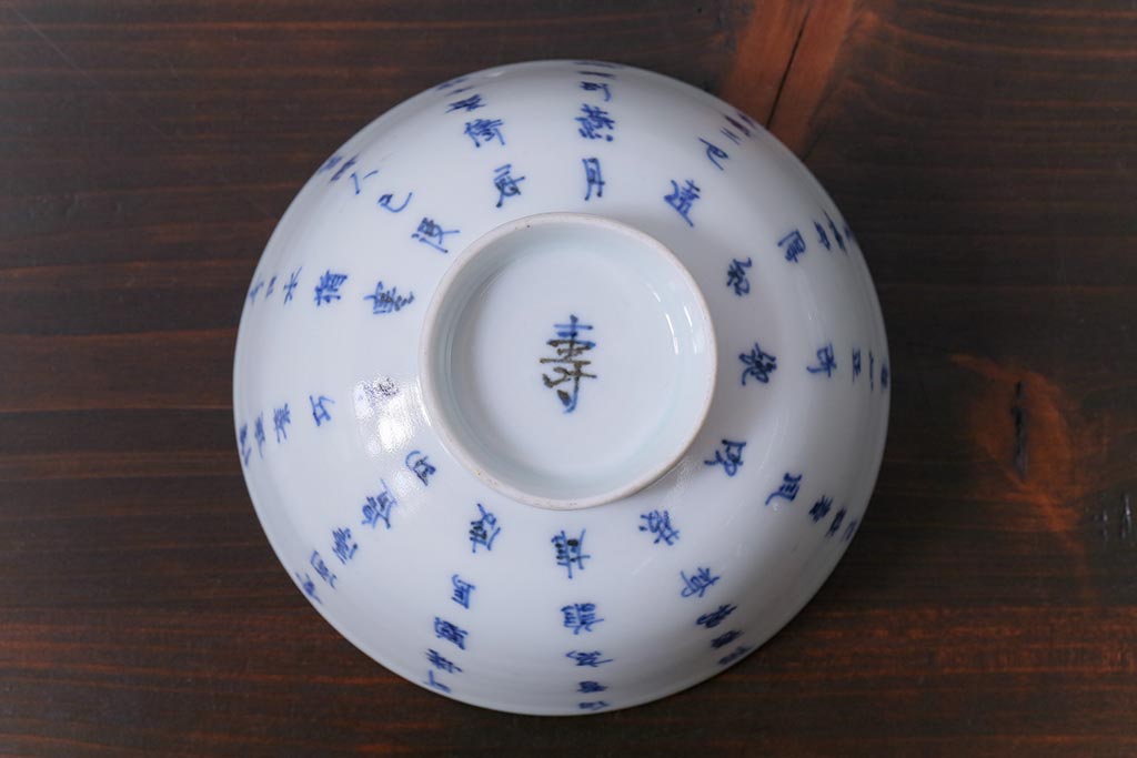 和製アンティーク 江戸期 「明月滿前川」 漢詩文字が書かれた蓋付茶碗(和食器)2客セット