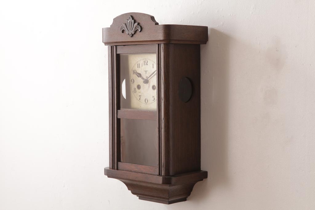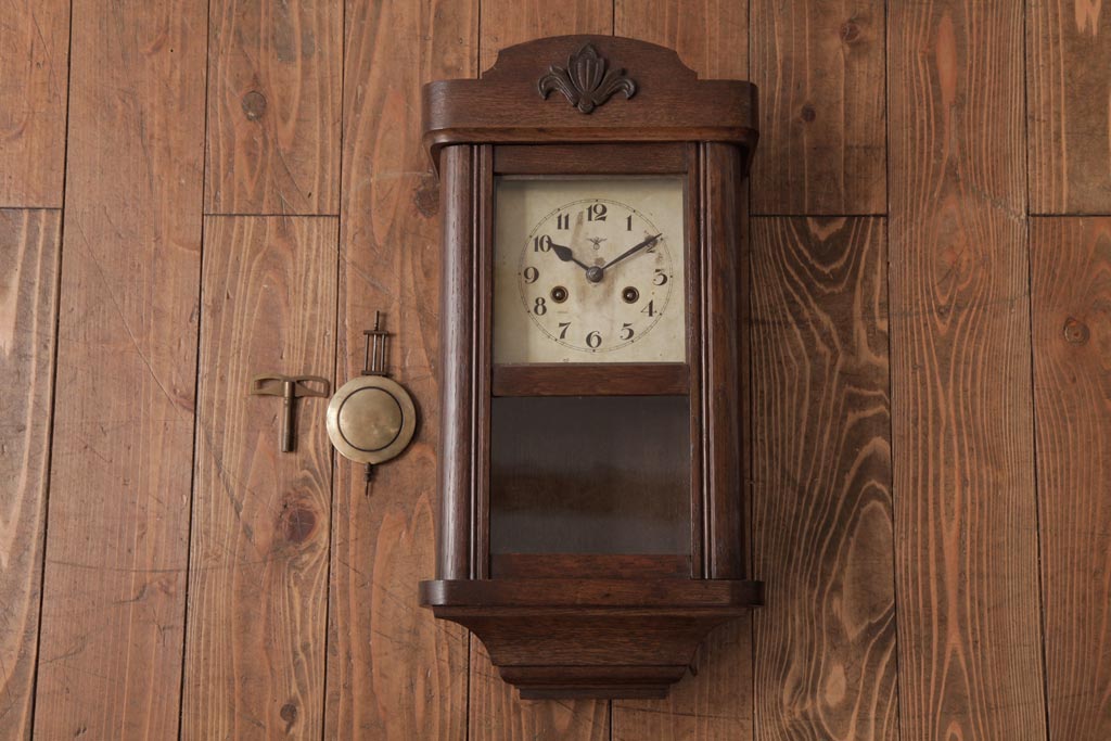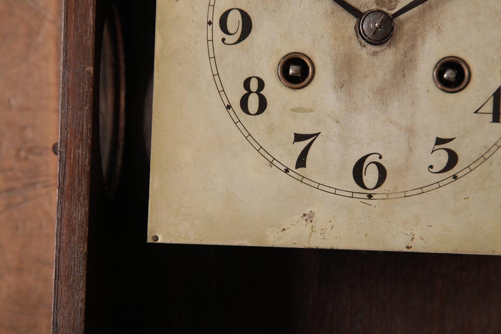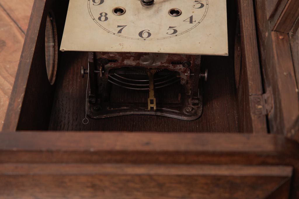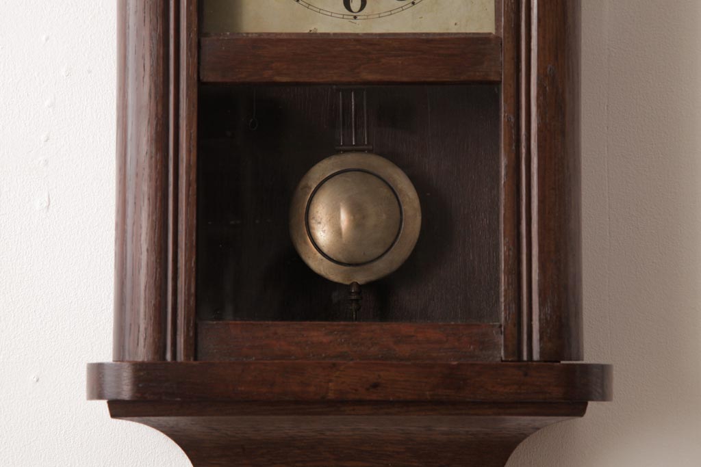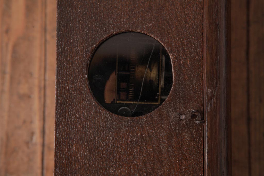 時計> 掛け時計 > アンティーク雑貨 和製アンティーク 大正昭和初期 村木時計店 ゼンマイ式 ナラ材の温かみを感じる振り子時計(柱時計、掛け時計)