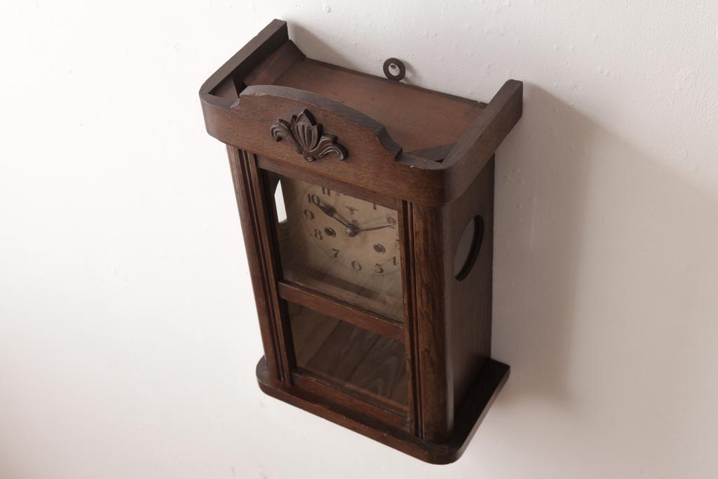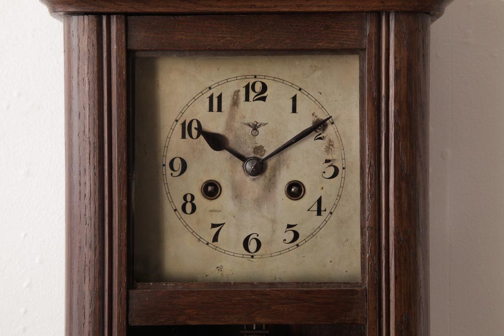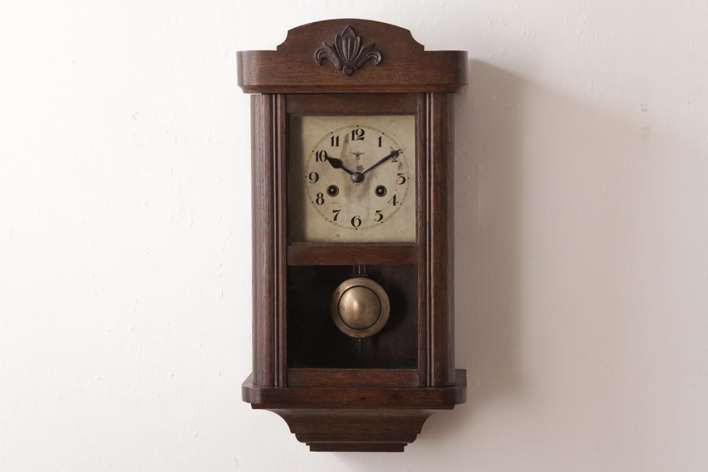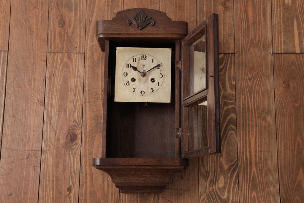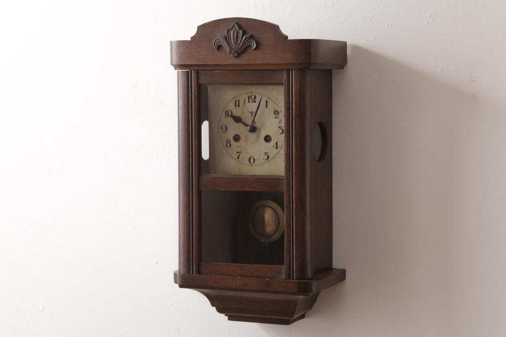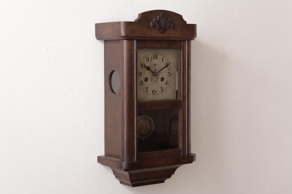 時計> 掛け時計 > アンティーク雑貨 和製アンティーク 大正昭和初期 村木時計店 ゼンマイ式 ナラ材の温かみを感じる振り子時計(柱時計、掛け時計)