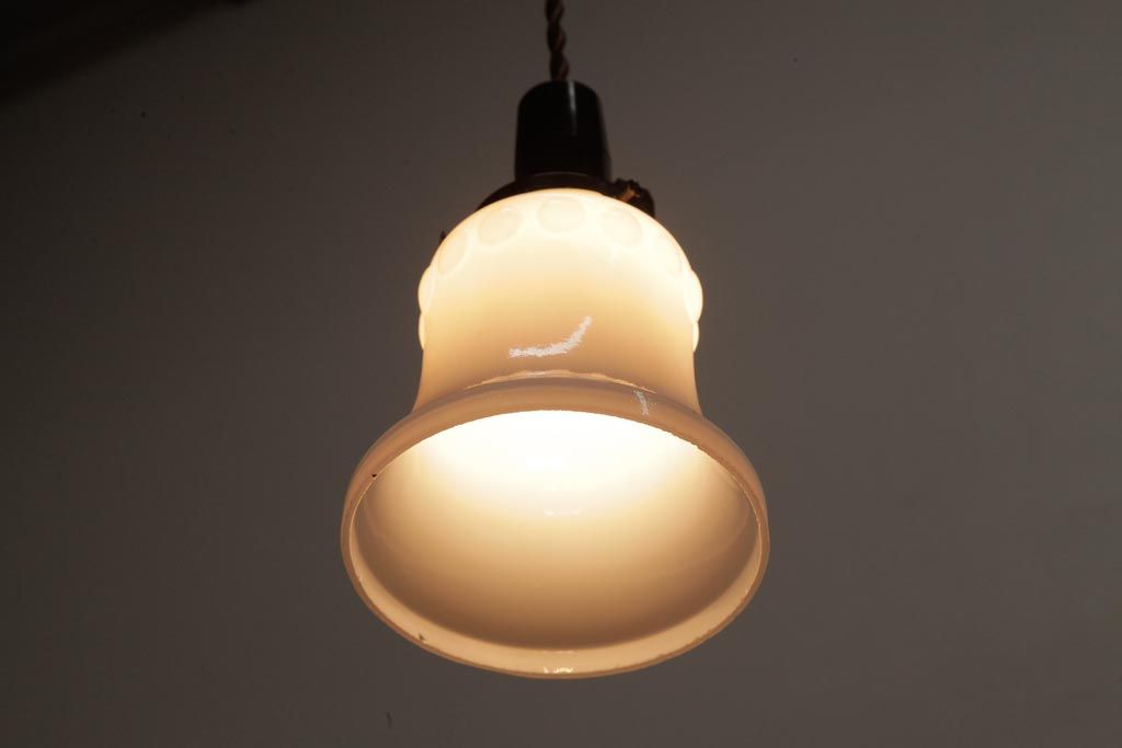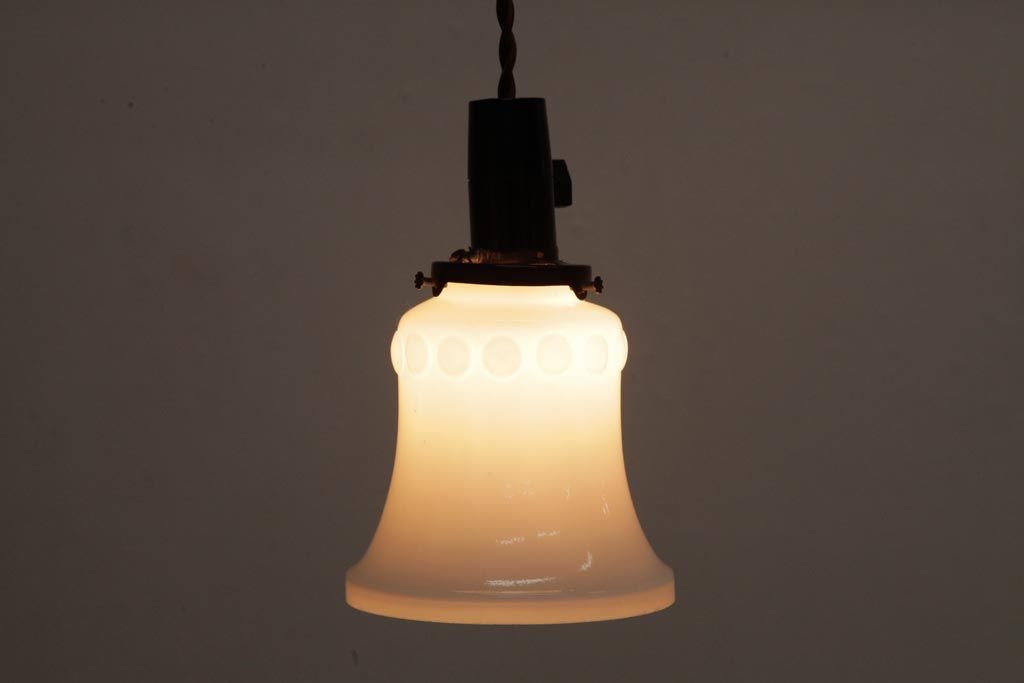 昭和レトロ 丸い模様が可愛らしいプレスガラスの天井照明(吊り下げ照明)