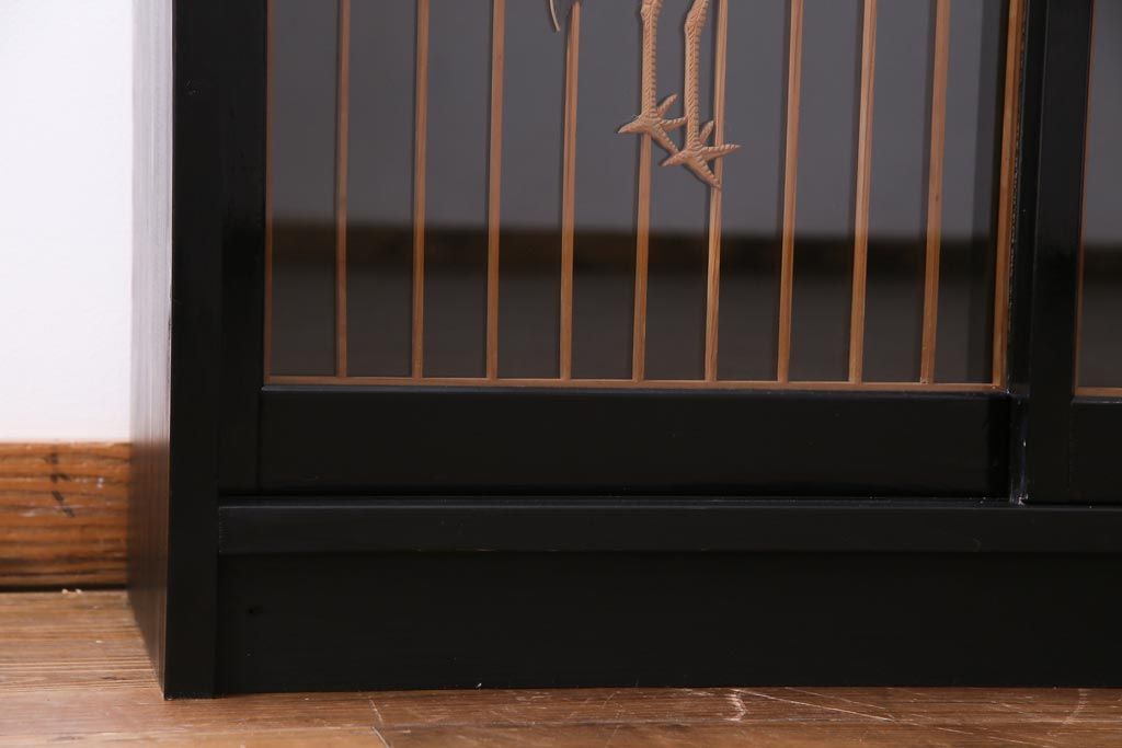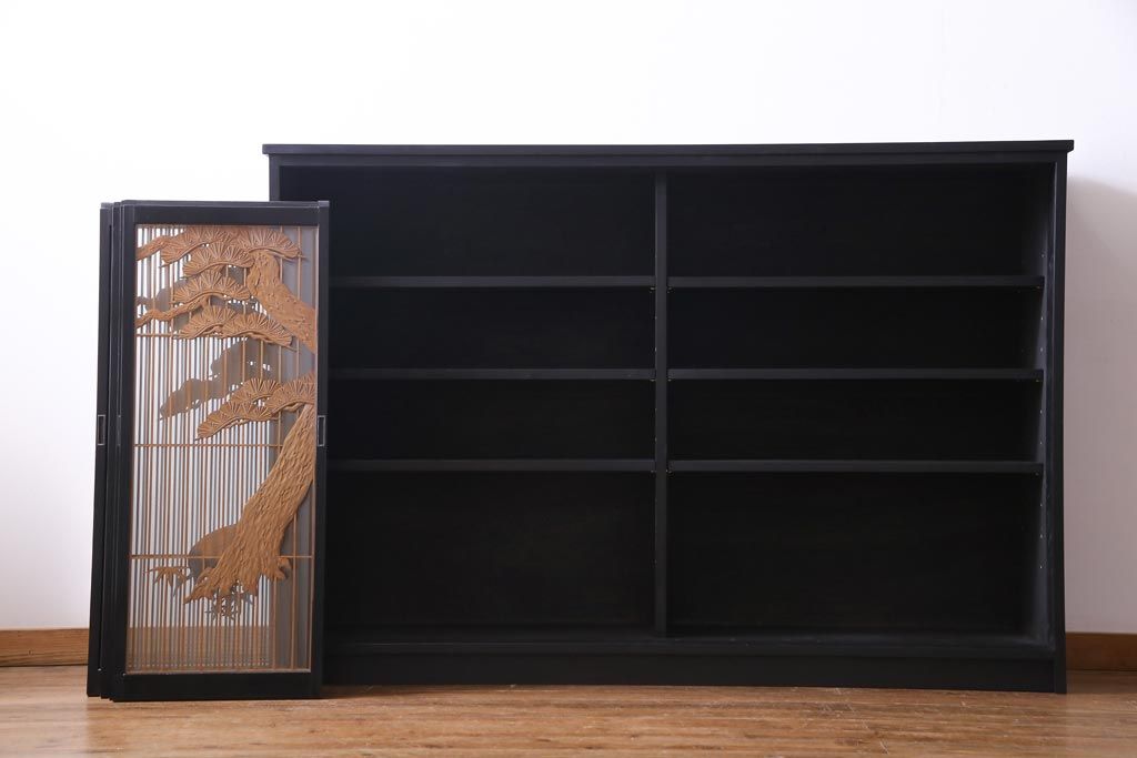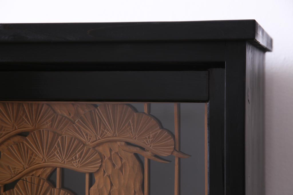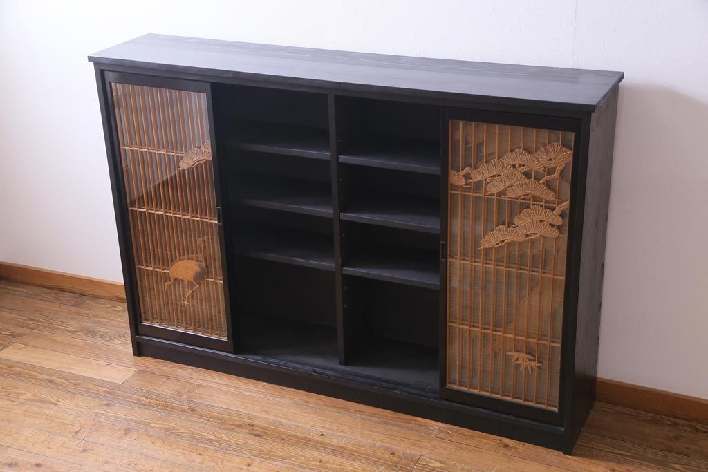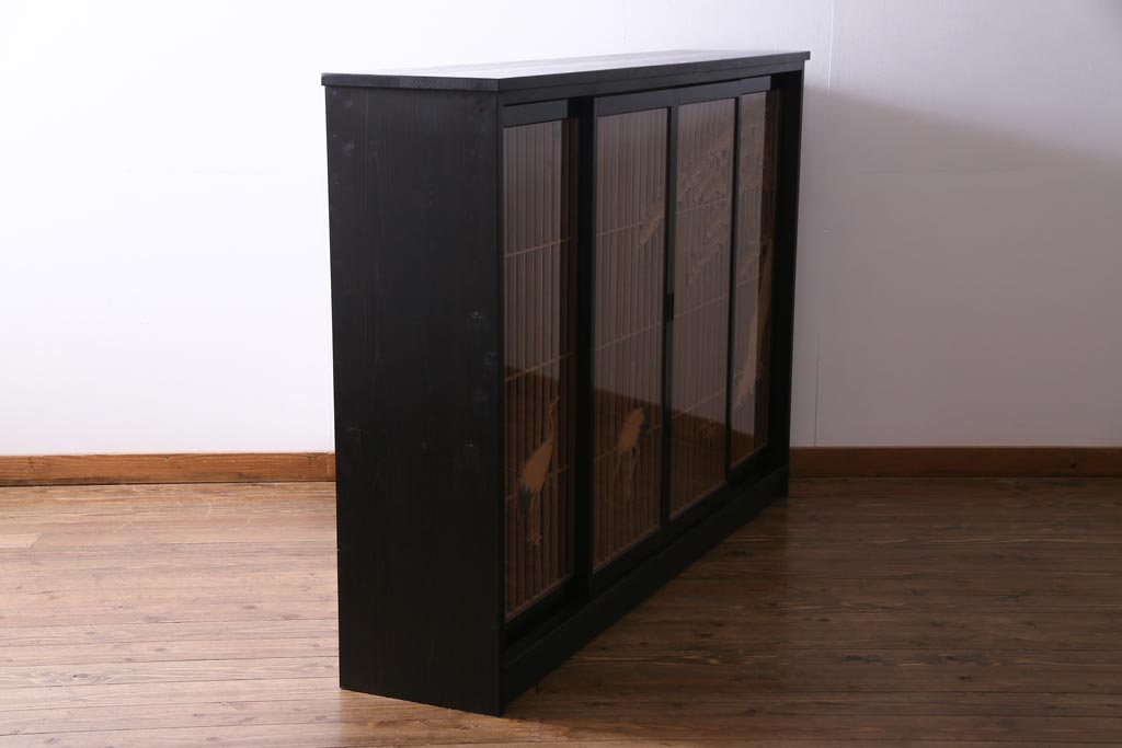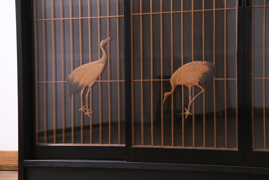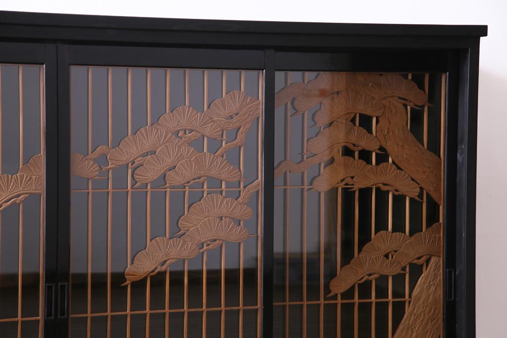 ラフジュ工房オリジナル 古建具リメイク 鶴松の組子が縁起の良いガラス戸棚(書院、収納棚、サイドボード)です。