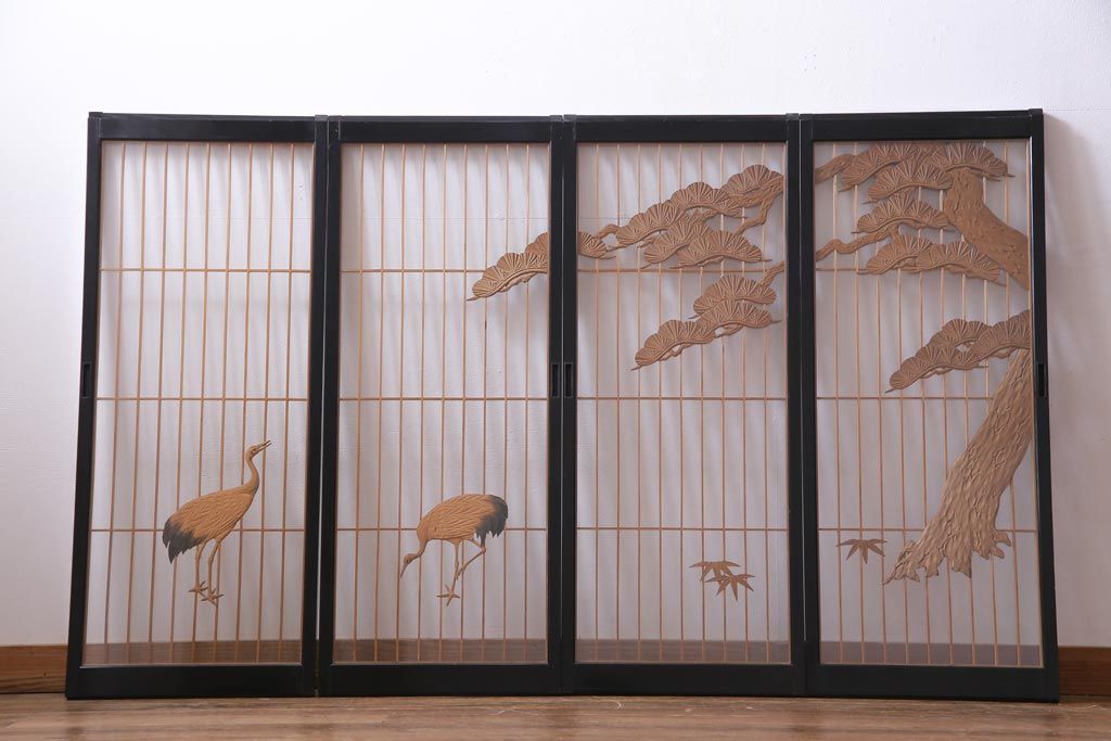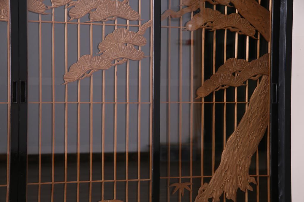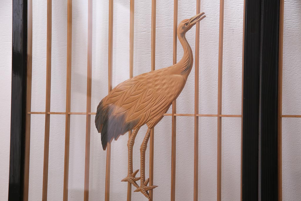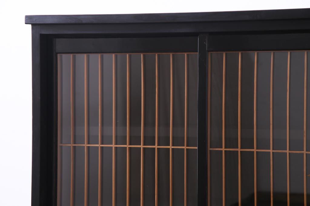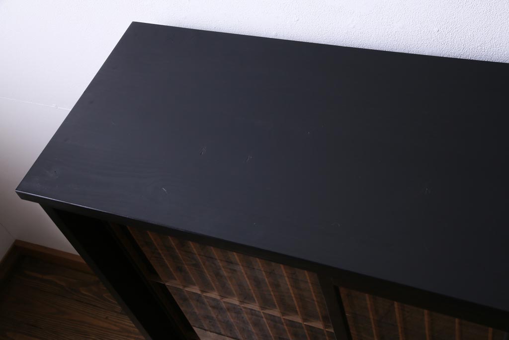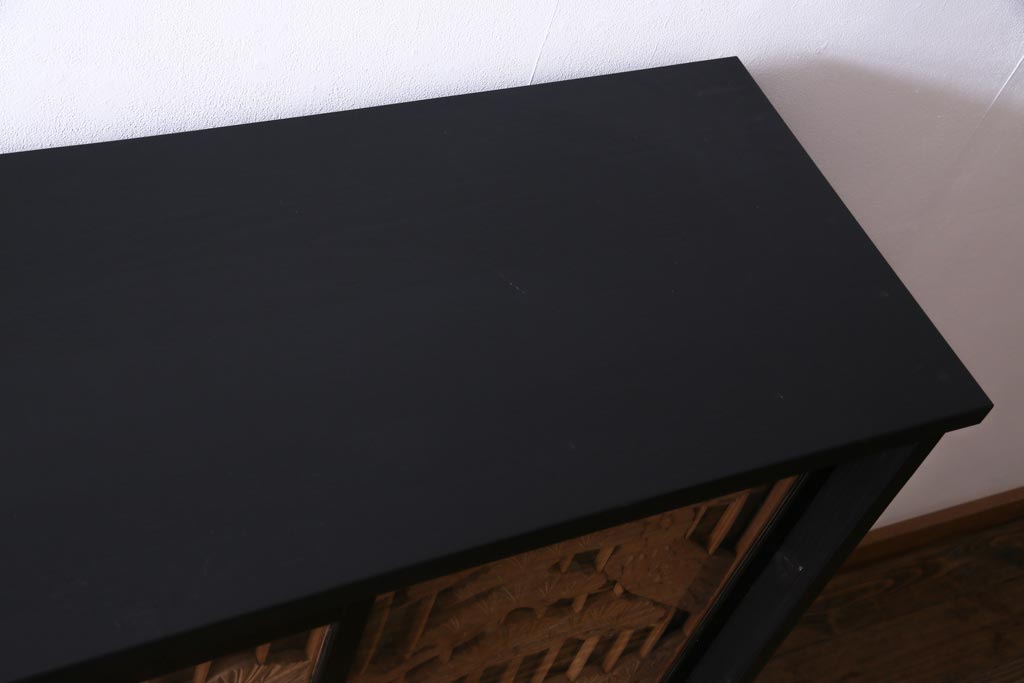 ラフジュ工房オリジナル 古建具リメイク 鶴松の組子が縁起の良いガラス戸棚(書院、収納棚、サイドボード)です。