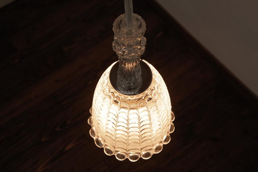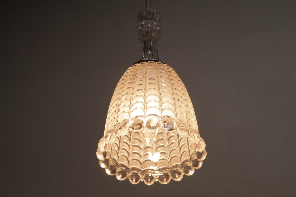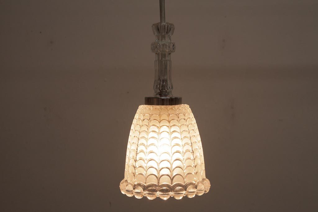 アメリカビンテージ モダンなプレスガラスシェードのペンダントライト(天井照明)