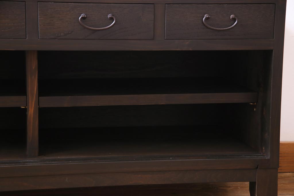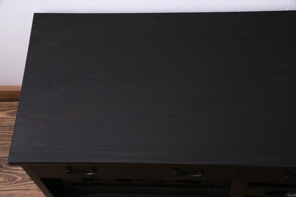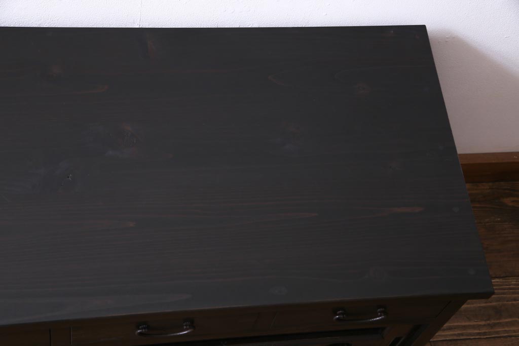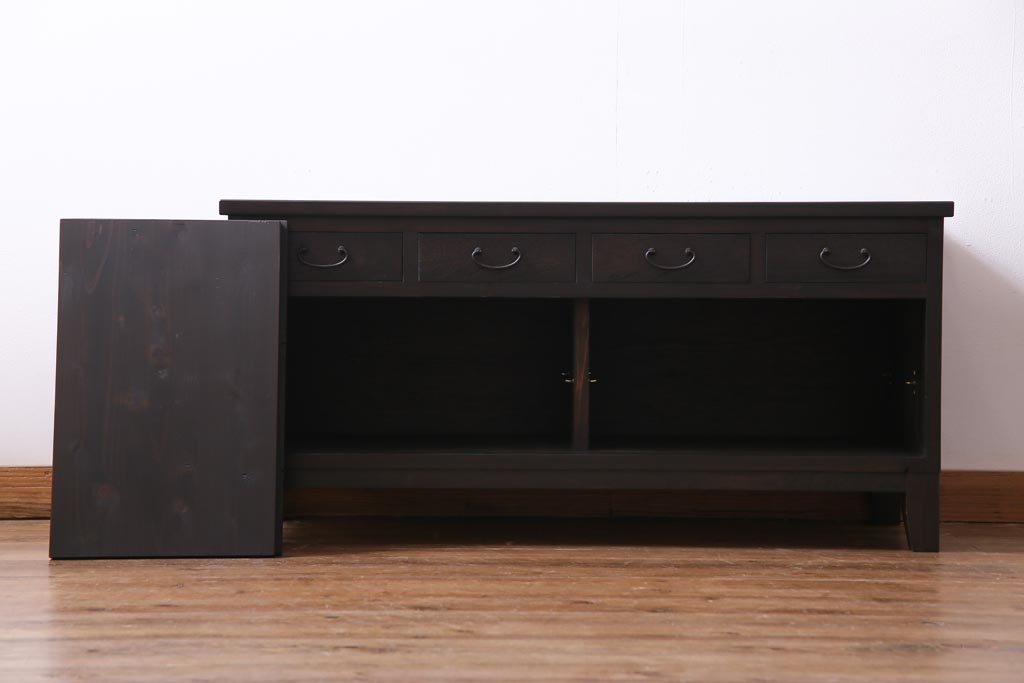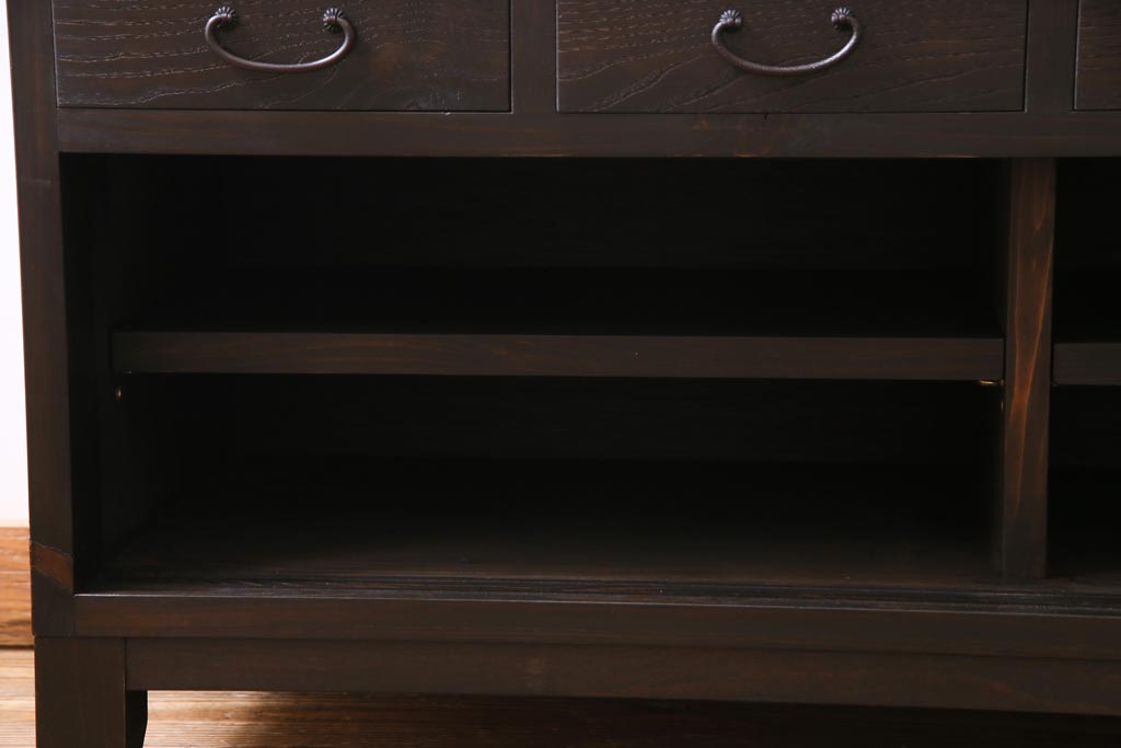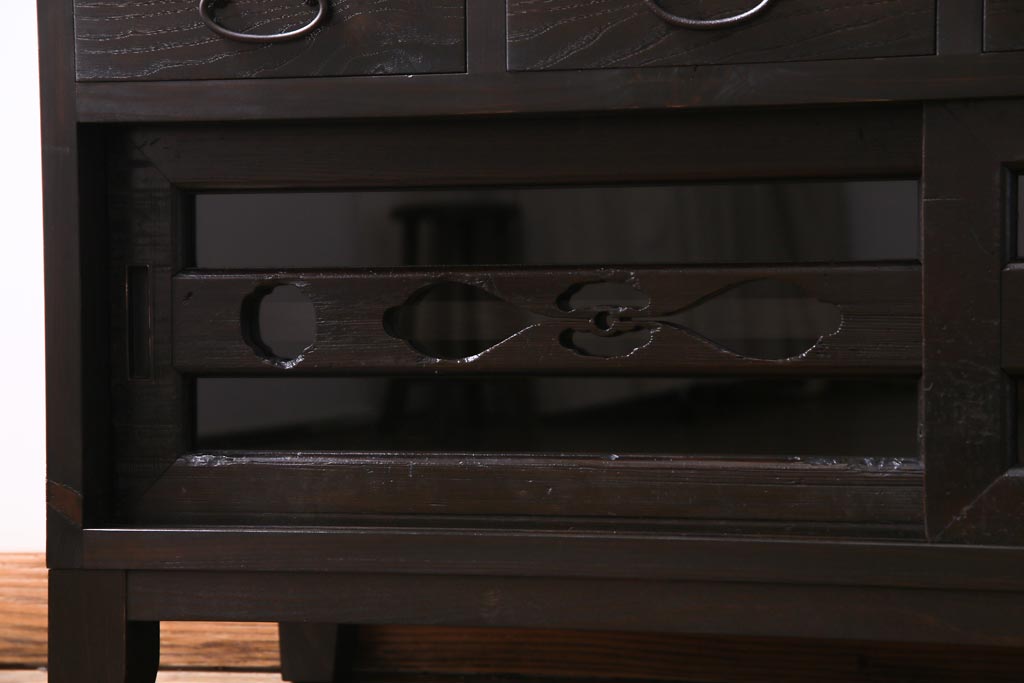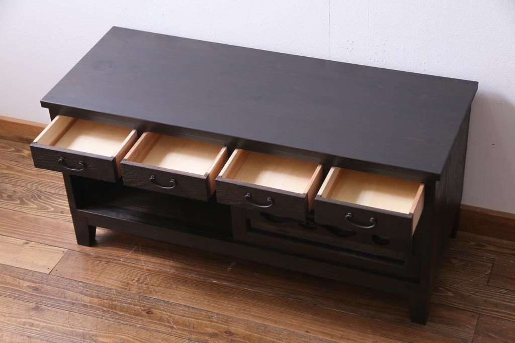 ラフジュ工房オリジナル 古建具リメイク 趣ある透かし彫りが和の風情感じる引き出し付きローボード(戸棚、収納棚、テレビボード)です。