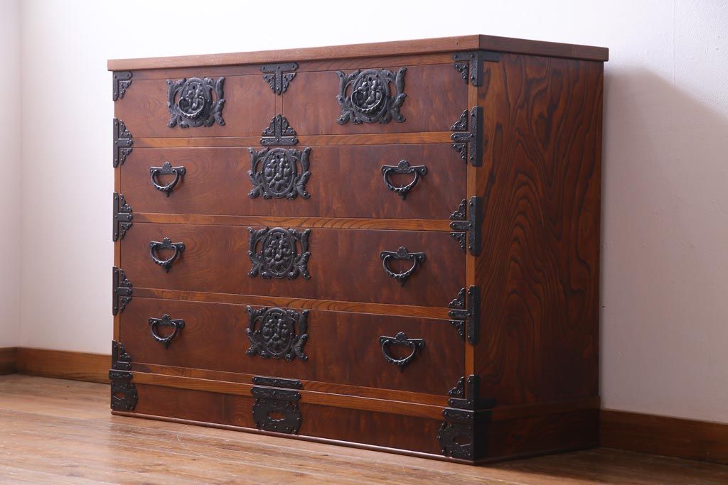 ラフジュ工房> 民芸家具 > 中古 岩谷堂箪笥 天板リメイク 威厳のある和の空間づくりに活躍する衣装箪笥(チェスト、整理ダンス、和タンス)