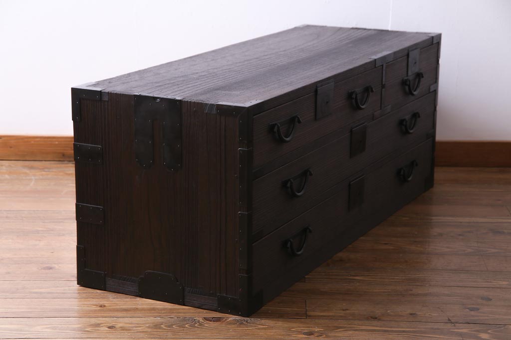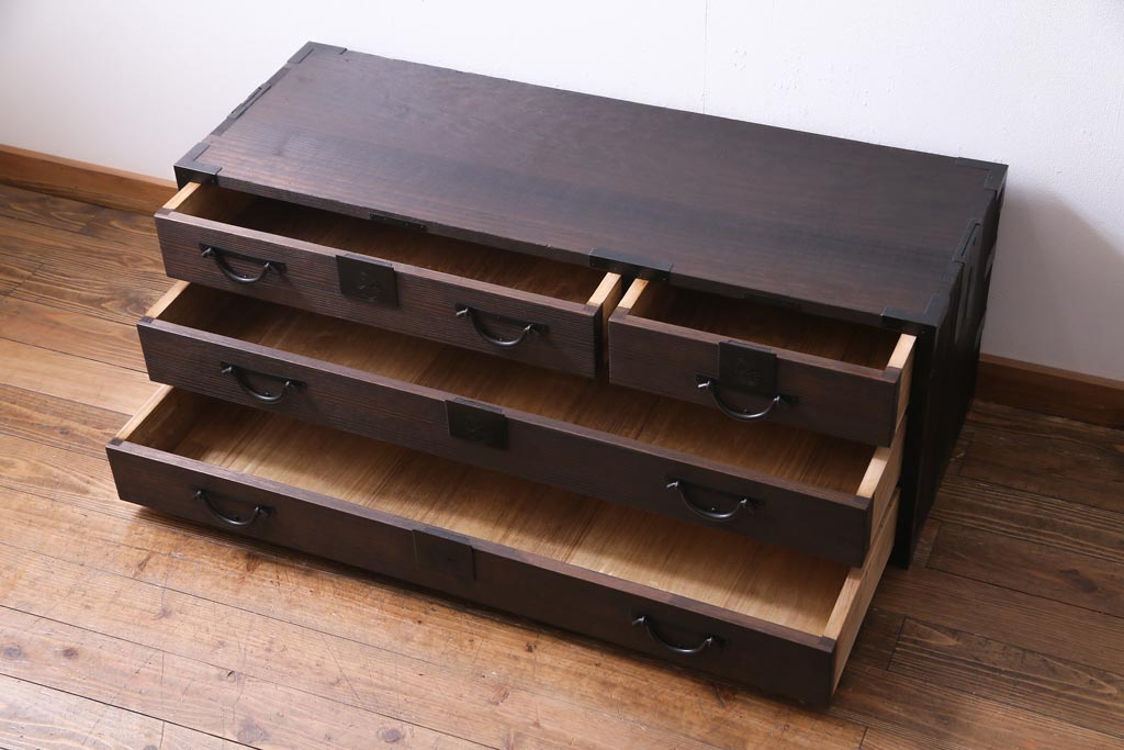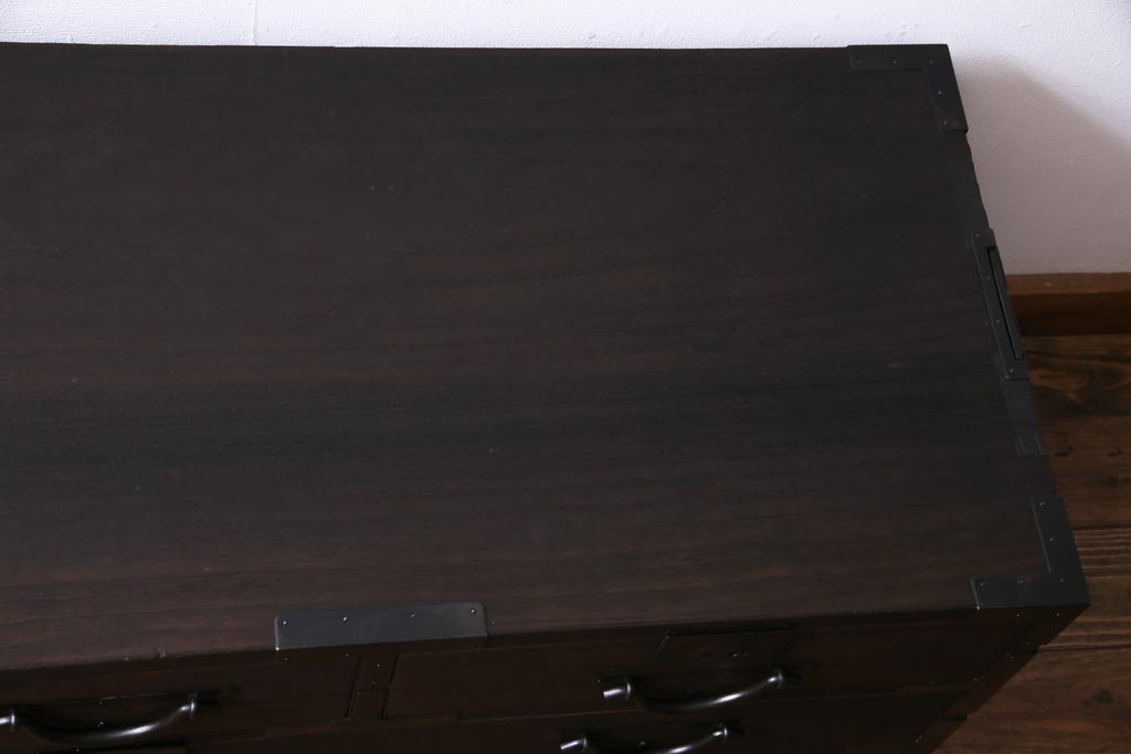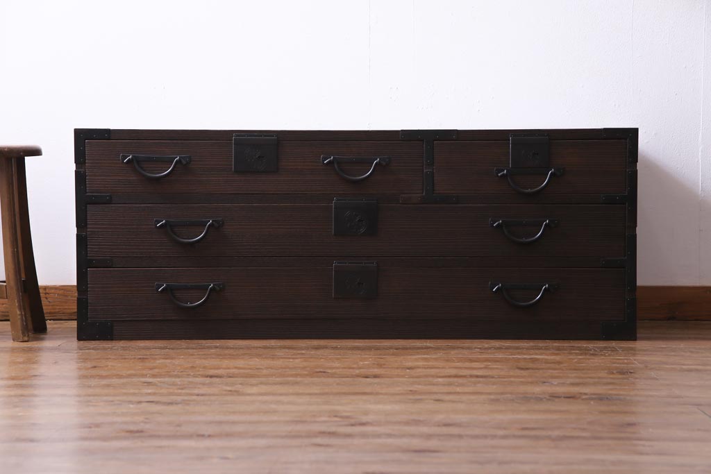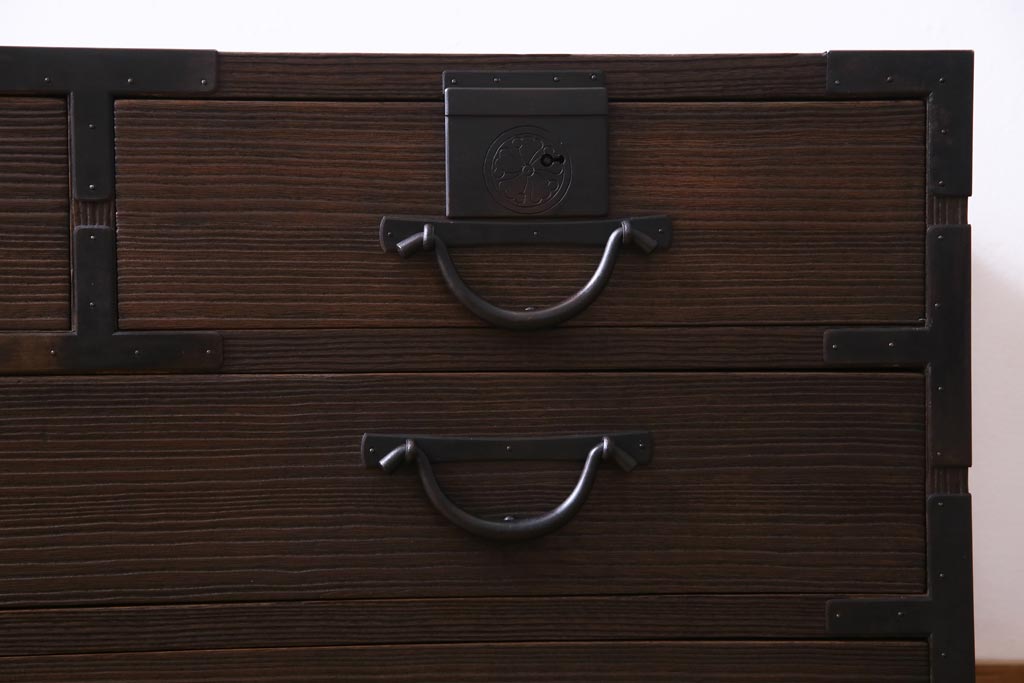 アンティーク家具 和製アンティーク 総桐材 浮造り仕上げ 渋さが漂う刀箪笥ローボード・3段(チェスト、和タンス、桐箪笥、桐たんす)