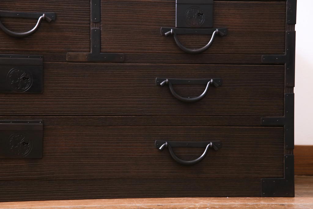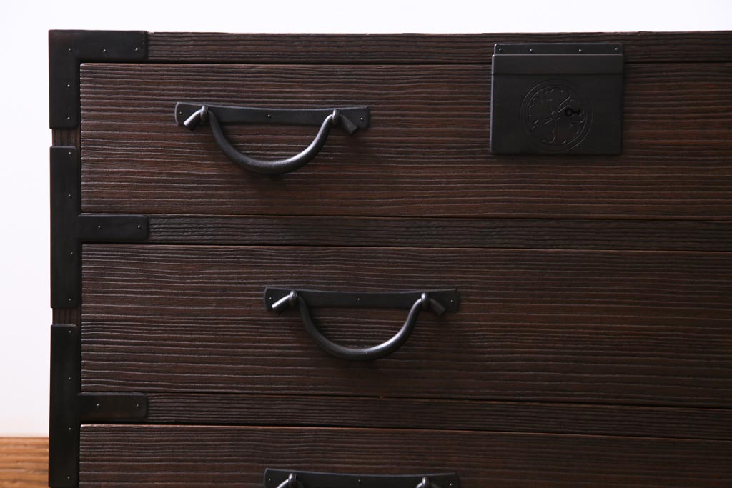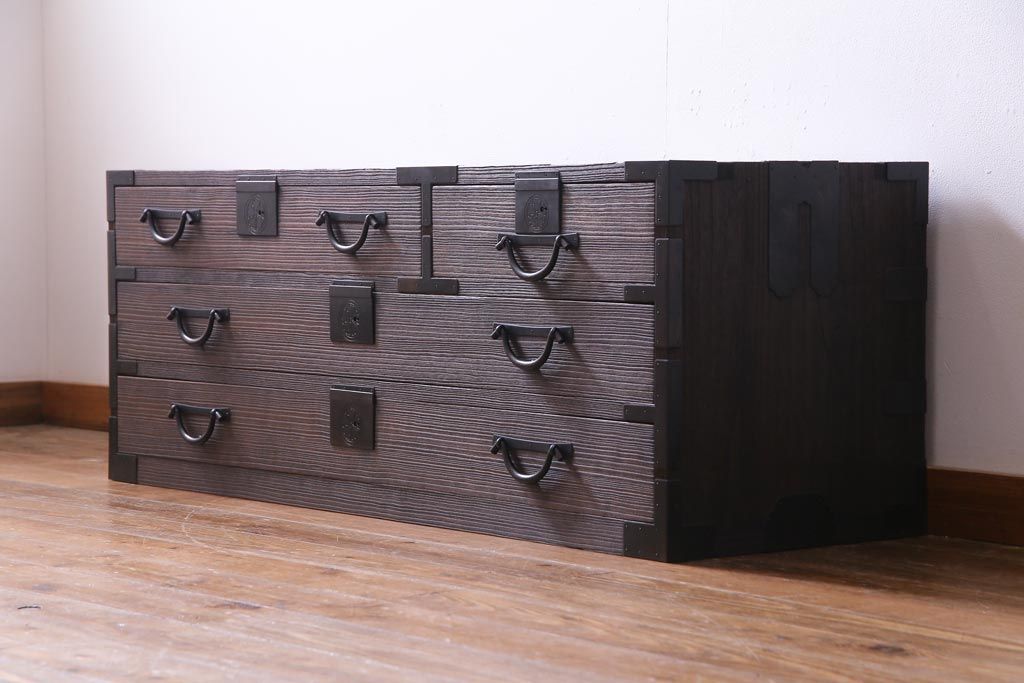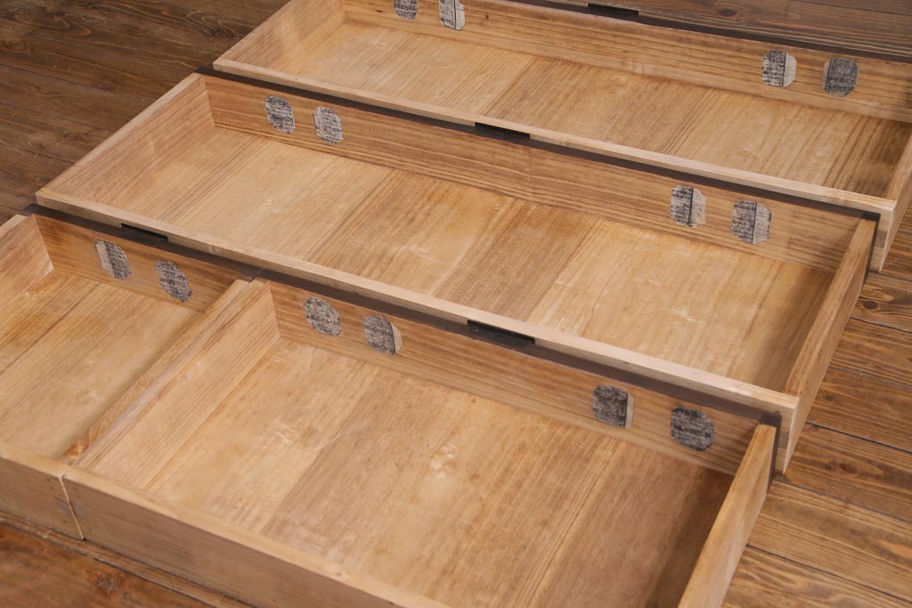 ラフジュ工房> 和箪笥 > アンティーク家具 和製アンティーク 総桐材 浮造り仕上げ 渋さが漂う刀箪笥ローボード・3段(チェスト、和タンス、桐箪笥、桐たんす)